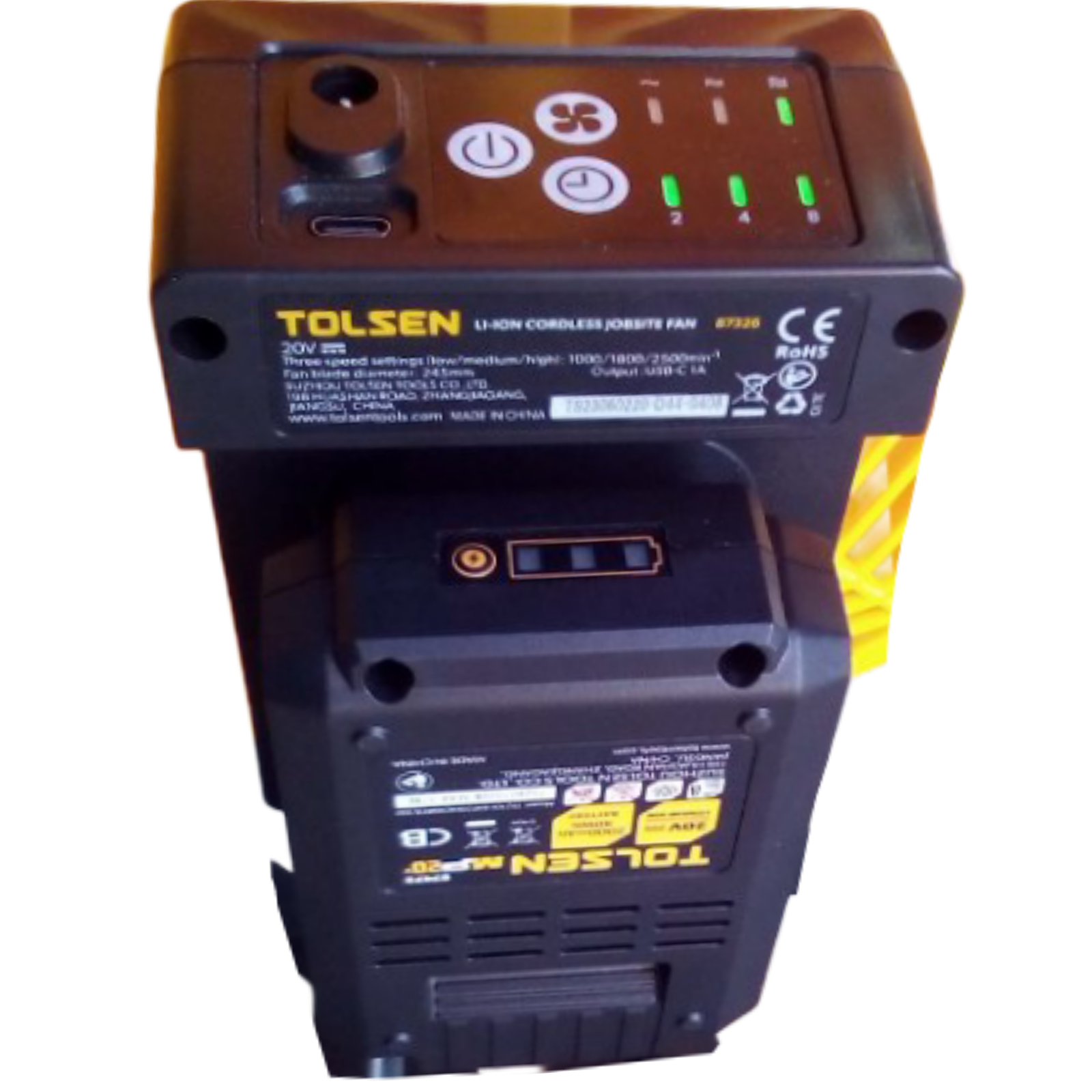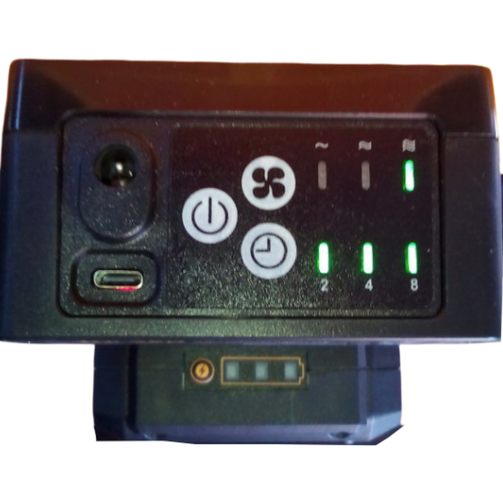 Abanico inalámbrico, con 3 niveles de velocidad, entrada para montar batería recargable (no incluida) y para recargar con Puerto USB entrada tipo C , temporizador de apagado, tomacorriente adaptador para conectar, recargar y función del abanico