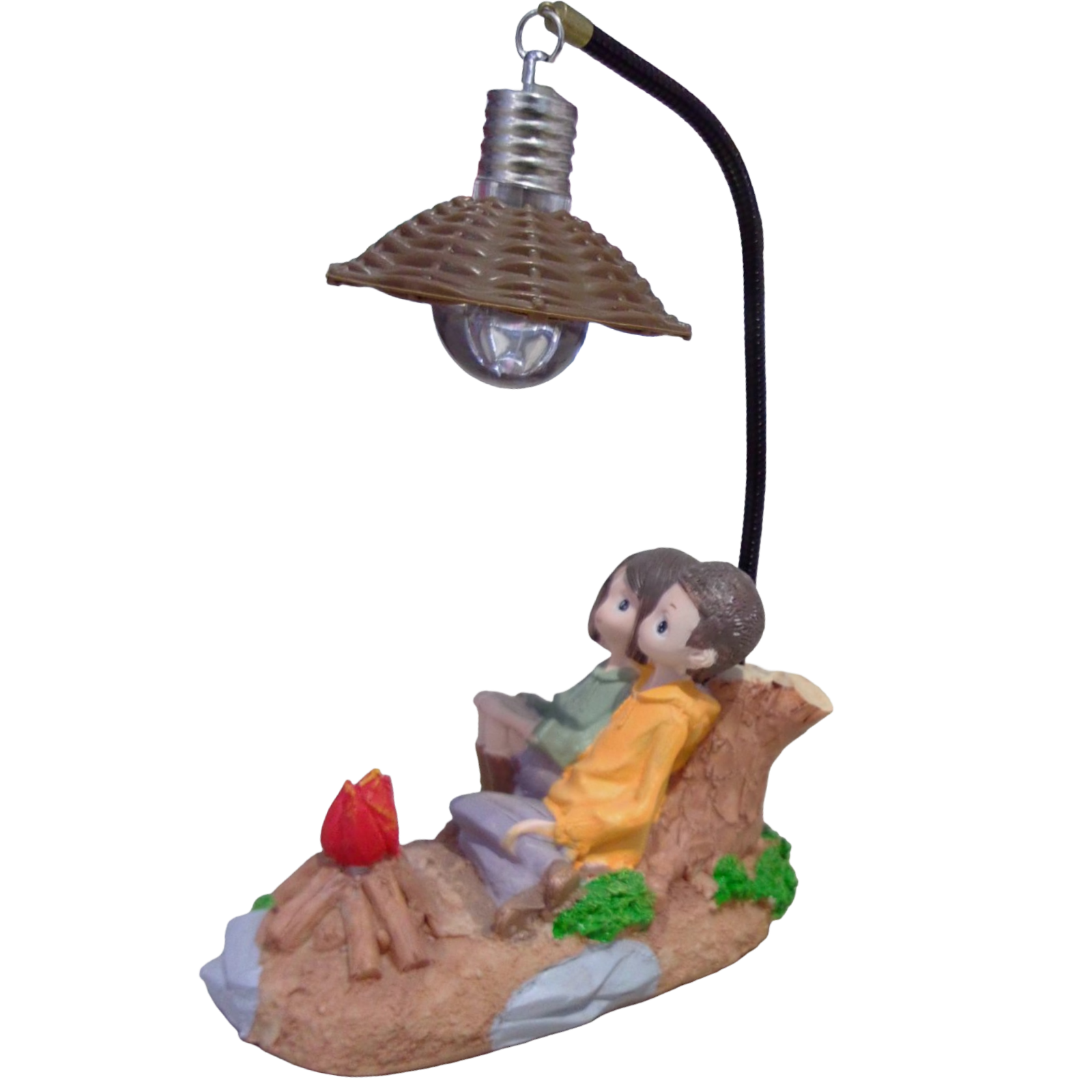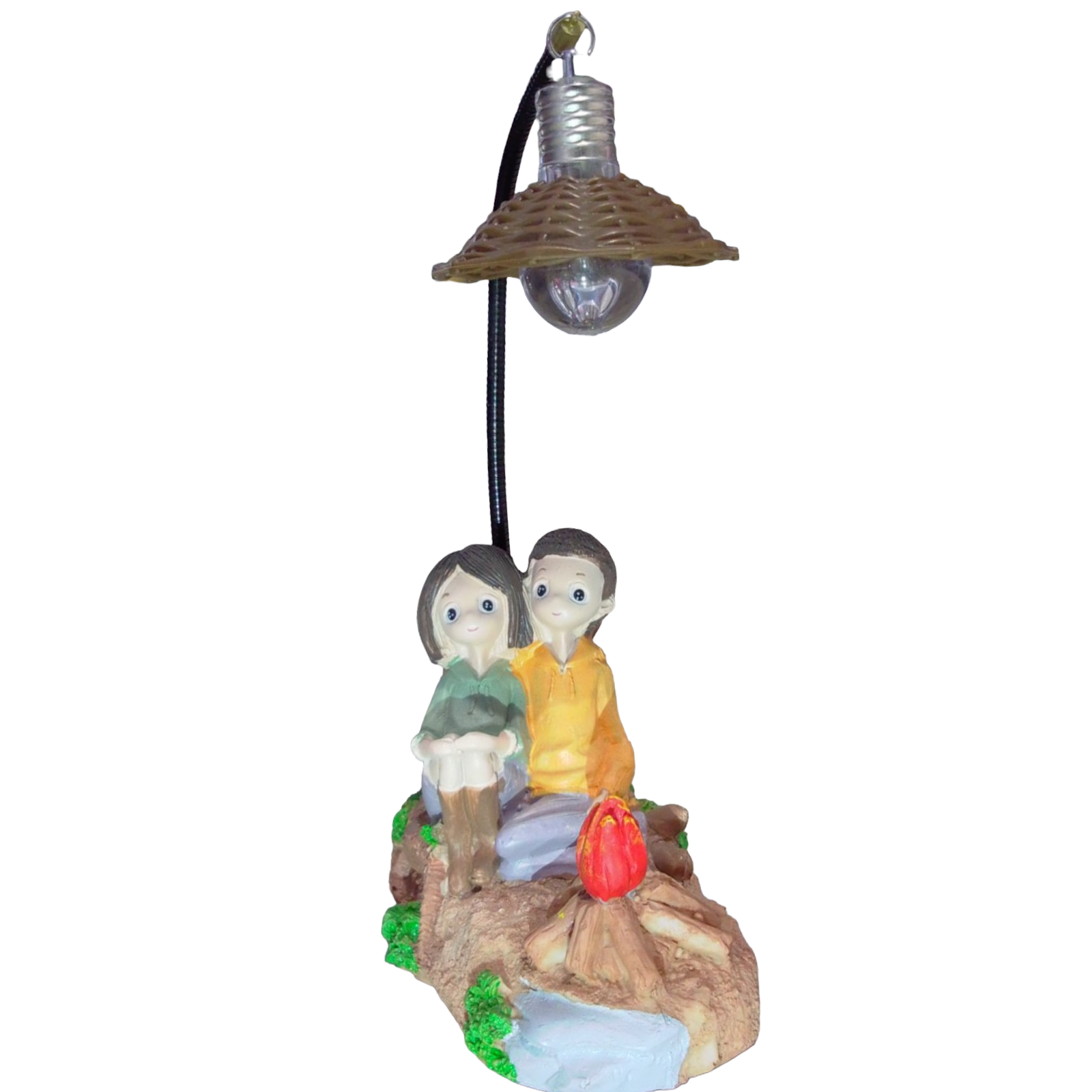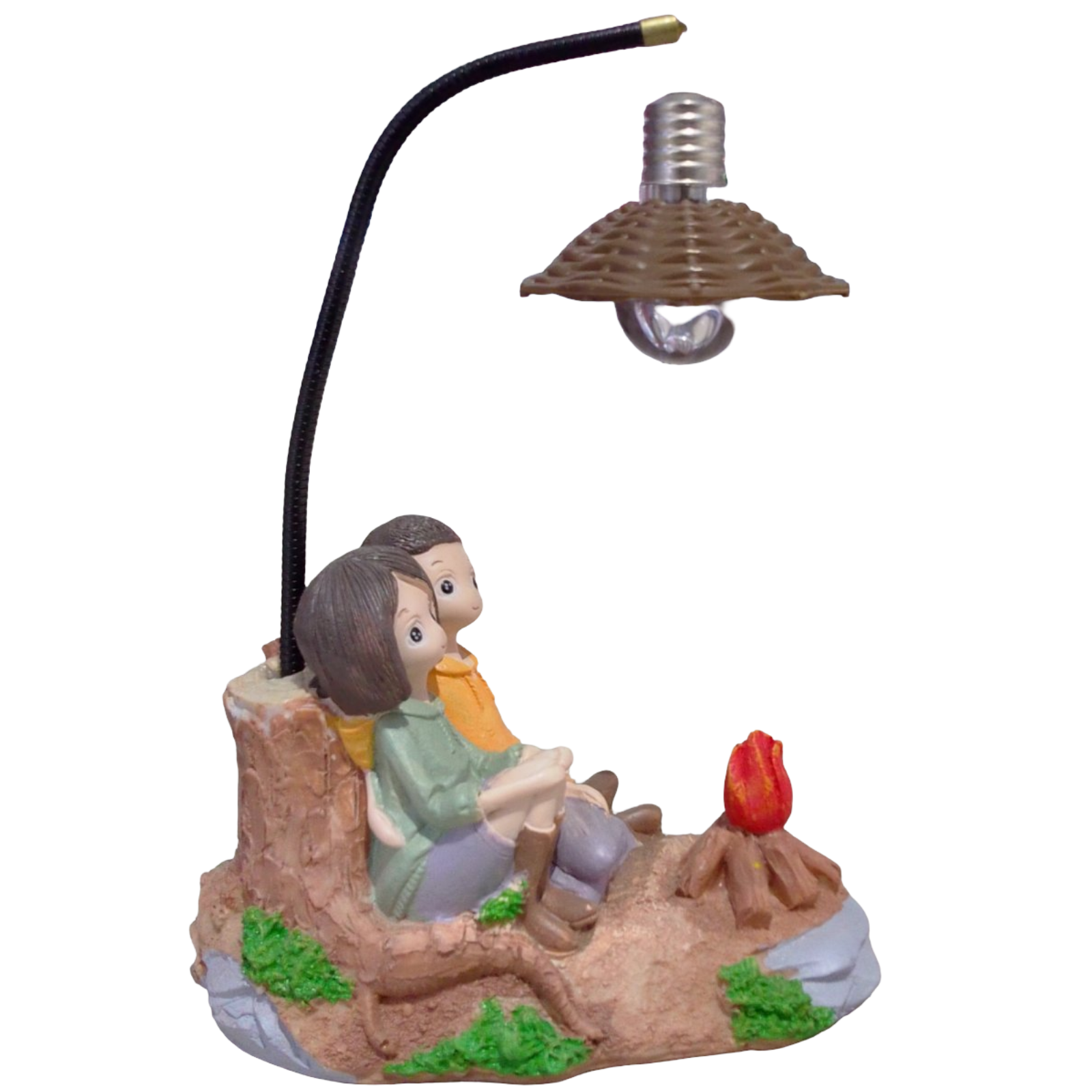 Adorno de porcelana, pareja de novios en la fogata arrecostados a un árbol, alumbrado con un farol, regalo especial para esa persona especial, para este día del amor y la amistad.