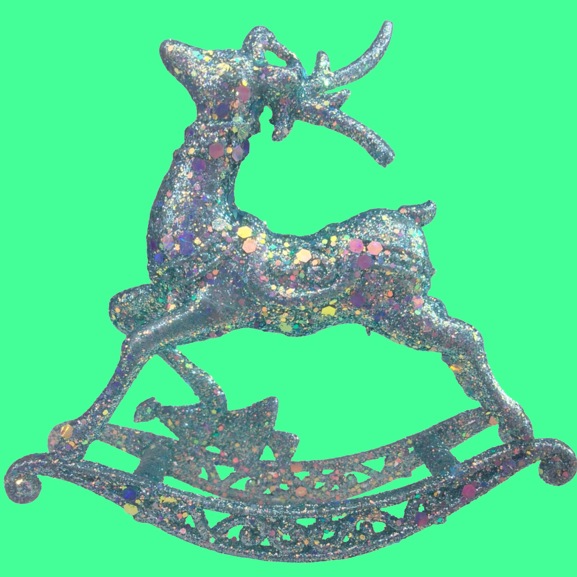 ADORNOS NAVIDEÑOS DECORATIVOS, RENO ESCARCHADO, COLOR VERDE.