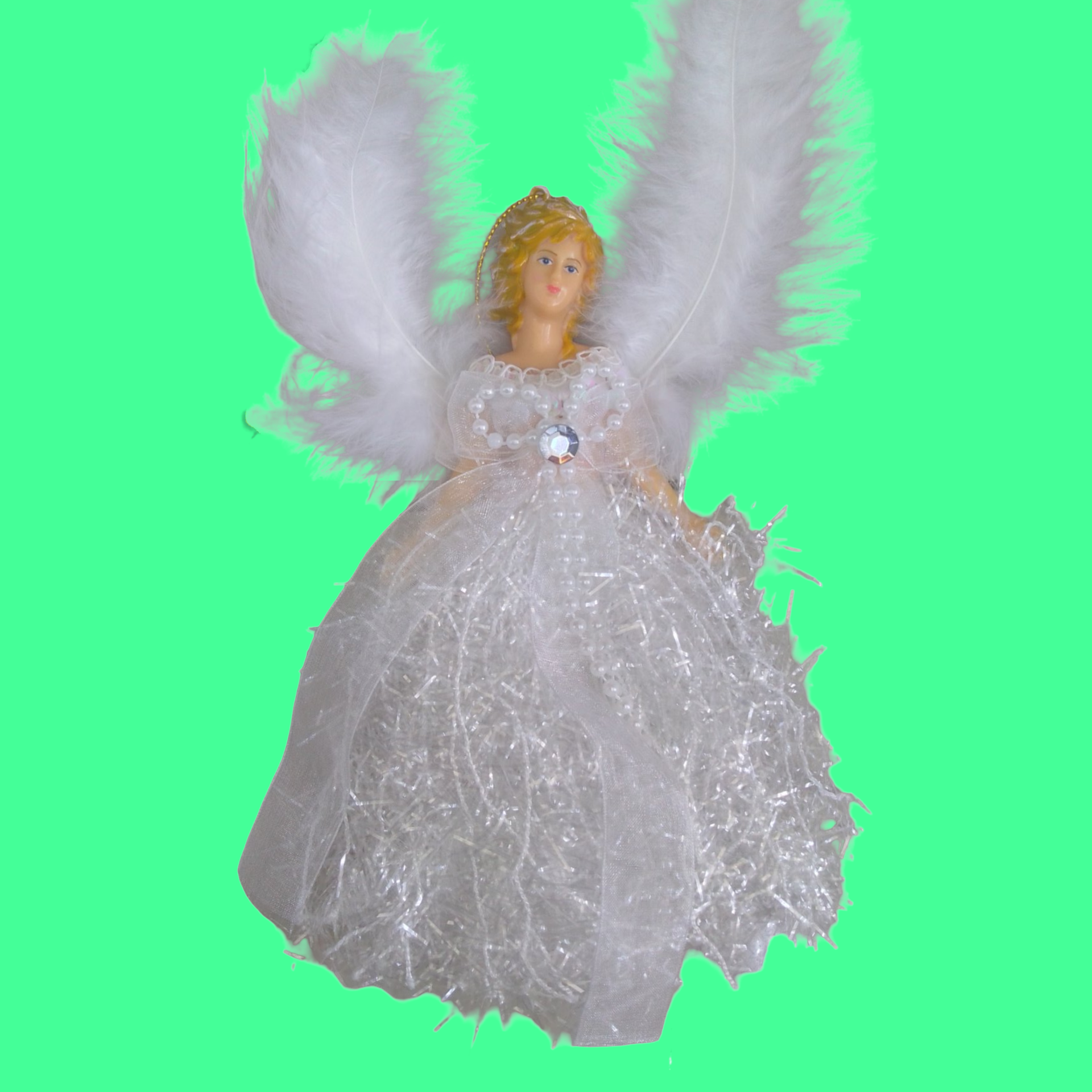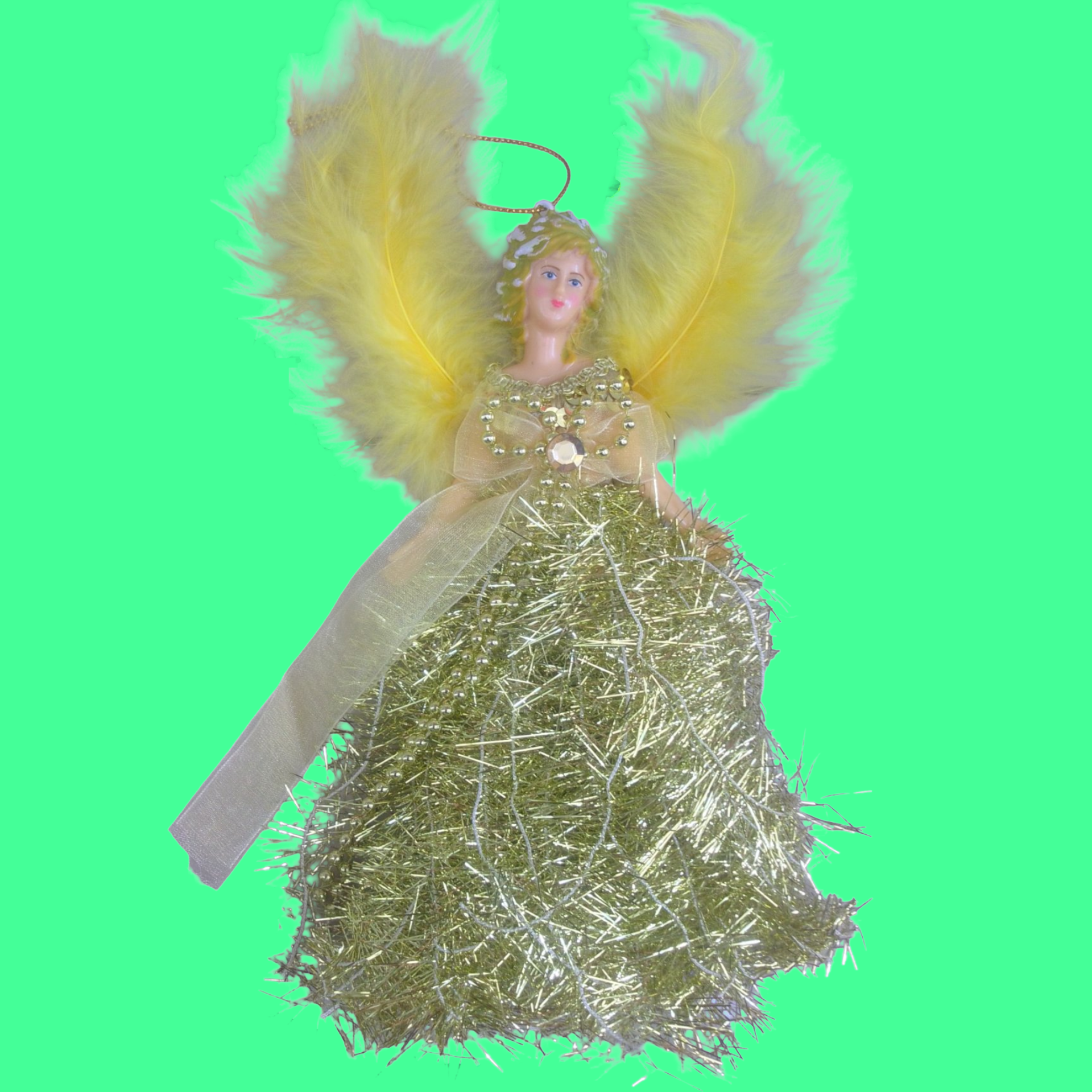 ADORNOS NAVIDEÑOS DECORATIVOS, ANGEL NAVIDEÑO EN COLORES BLANCO Y AMARILLO. PARA COLGAR.