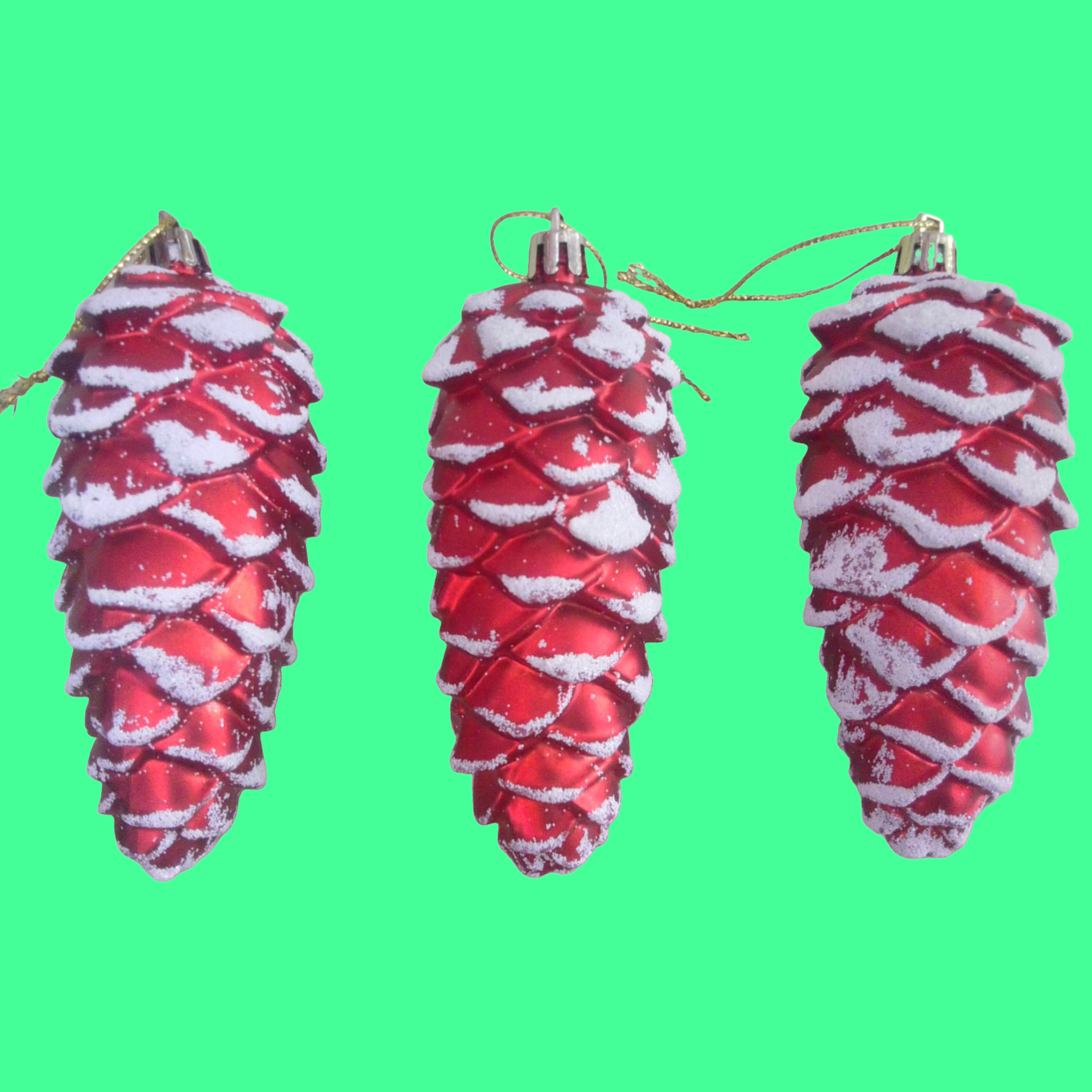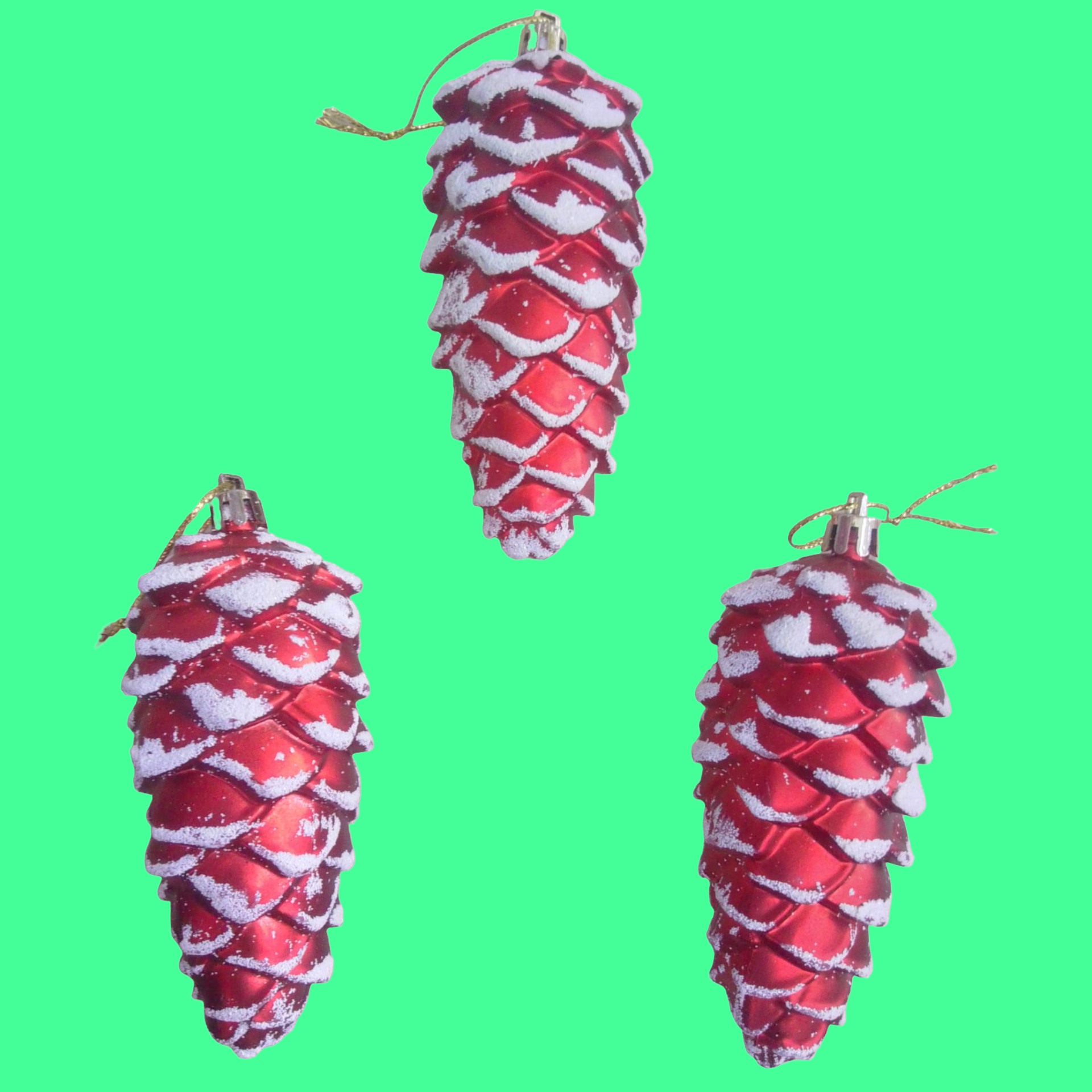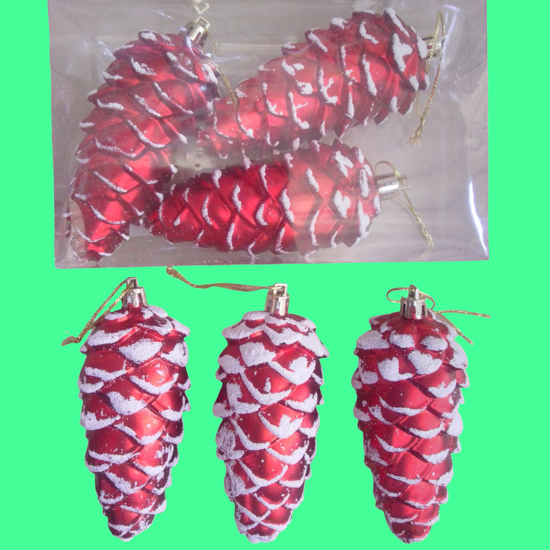SET DE 3 ADORNOS DECORATIVOS NAVIDEÑOS DE FORMA DE BELLOTAS, COLOR ROJO CON BLANCO.
