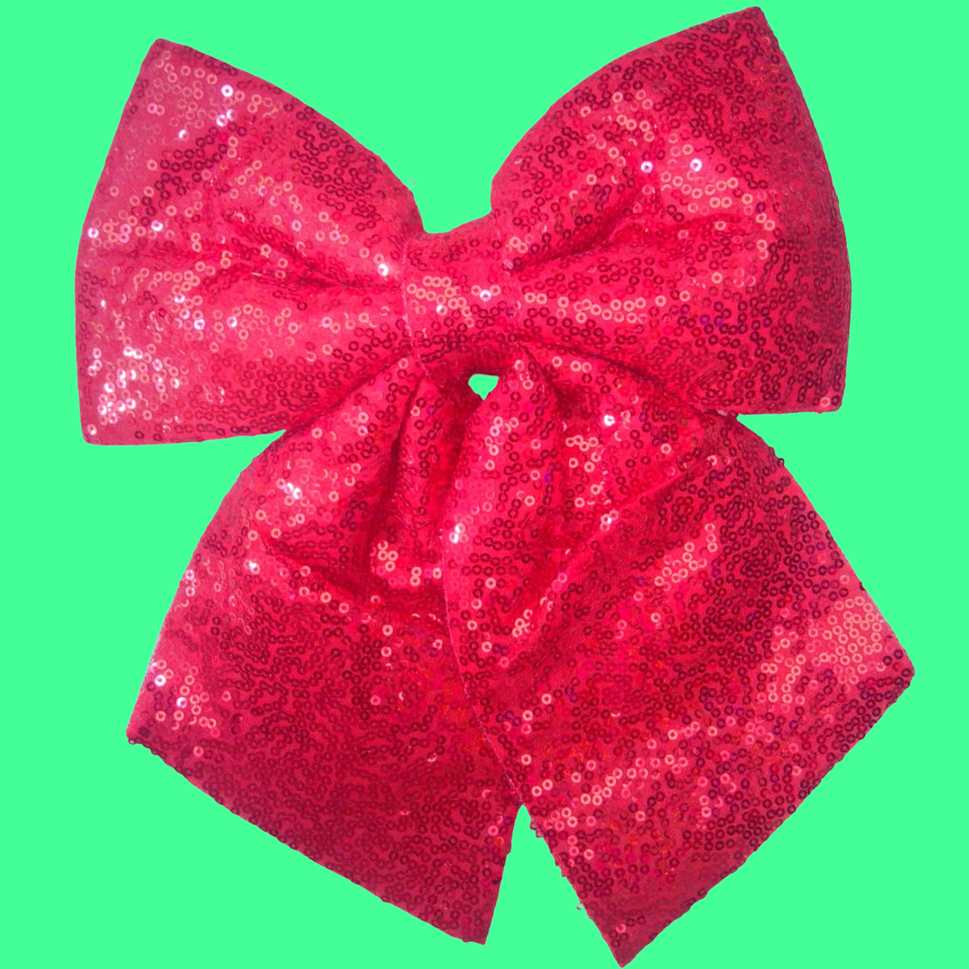 ADORNO DECORATIVO LAZO GRANDE, COLOR ROJO ESCARCHADO.