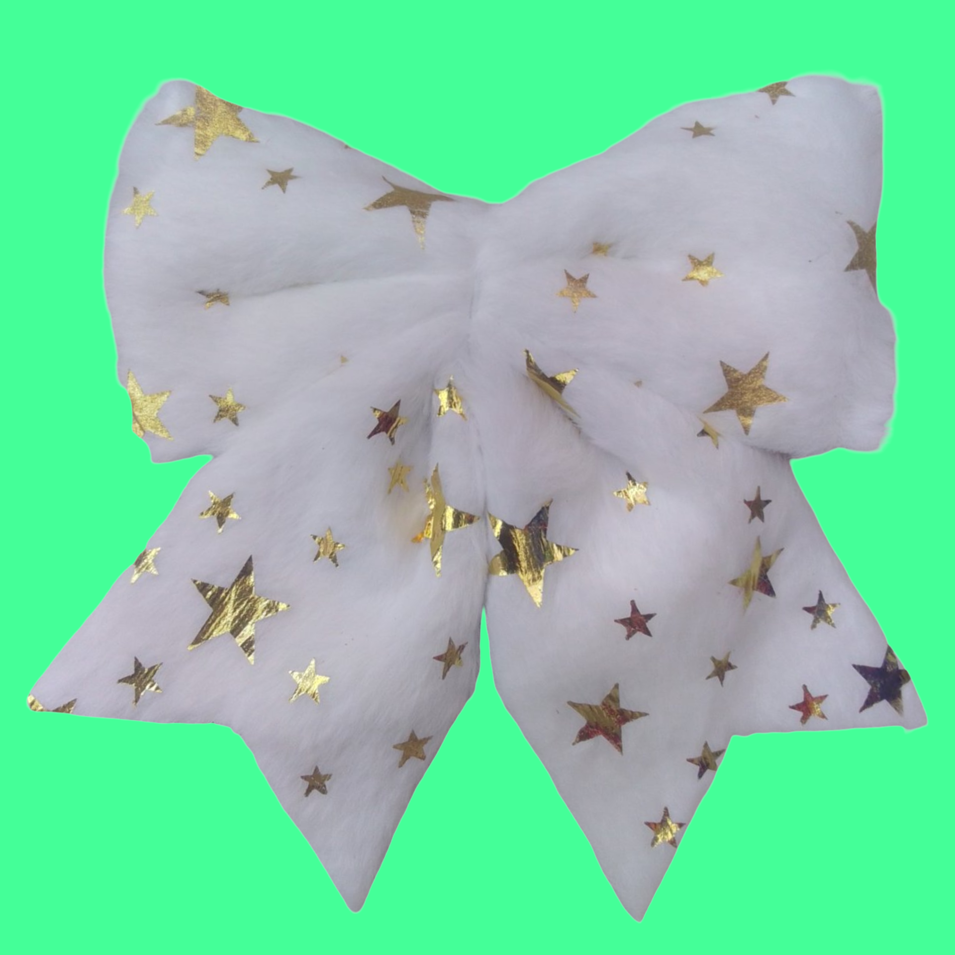 ADORNOS NAVIDEÑOS LAZOS, COLOR BLANCO CON ESTRELLAS DORADAS
