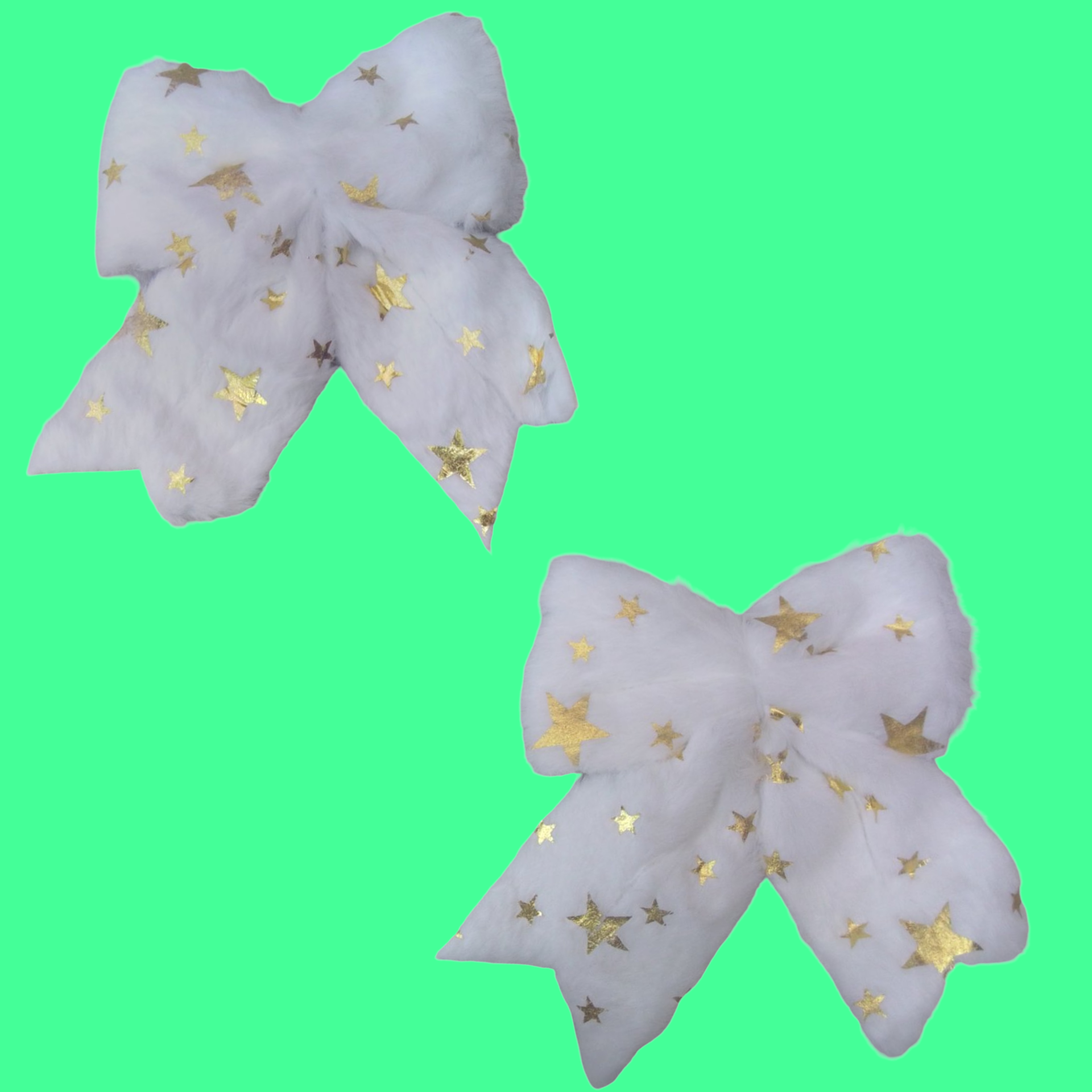 ADORNOS DECORATIVOS, PAR DE LAZOS MEDIANOS. COLOR BLANCO CON ESTRELLAS DORADAS.