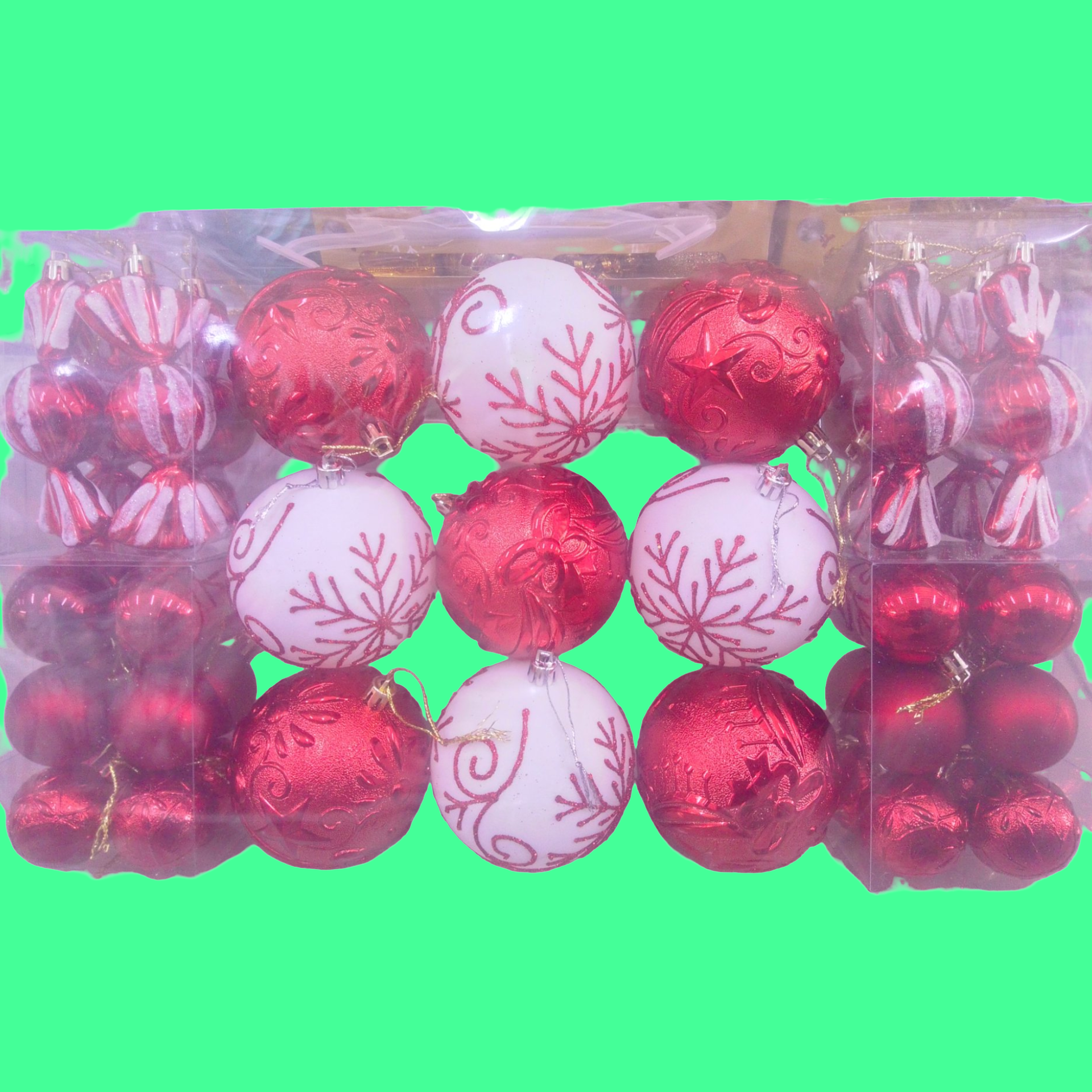 ESFERAS NAVIDEÑAS. SET DE 41 PCS. COLOR ROJO Y BLANCO. PARA DECORACIÓN DE ÁRBOL NAVIDEÑO.