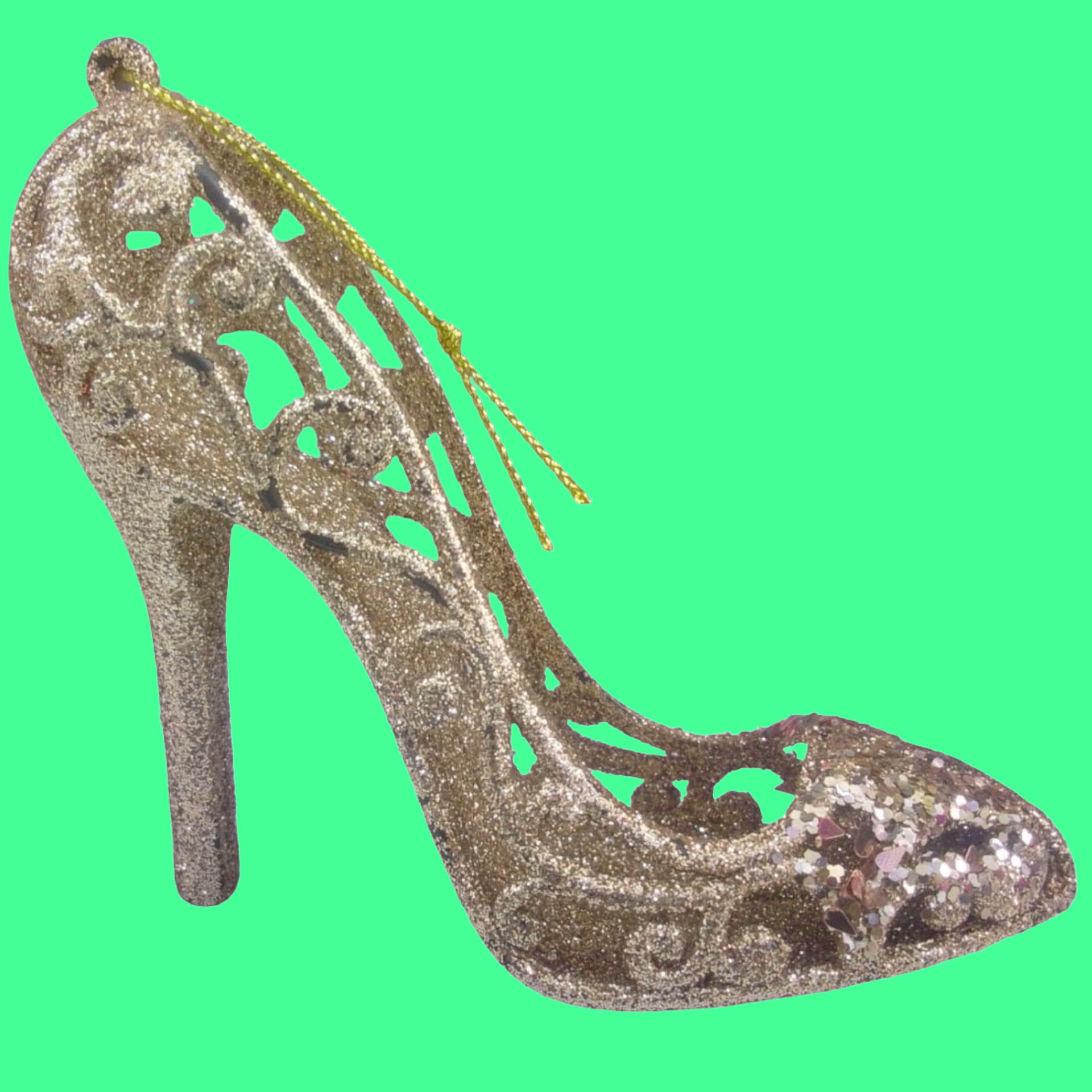 ADORNOS NAVIDEÑOS DECORATIVOS, ZAPATILLA DE MUJER ESCARCHADO EN DORADO