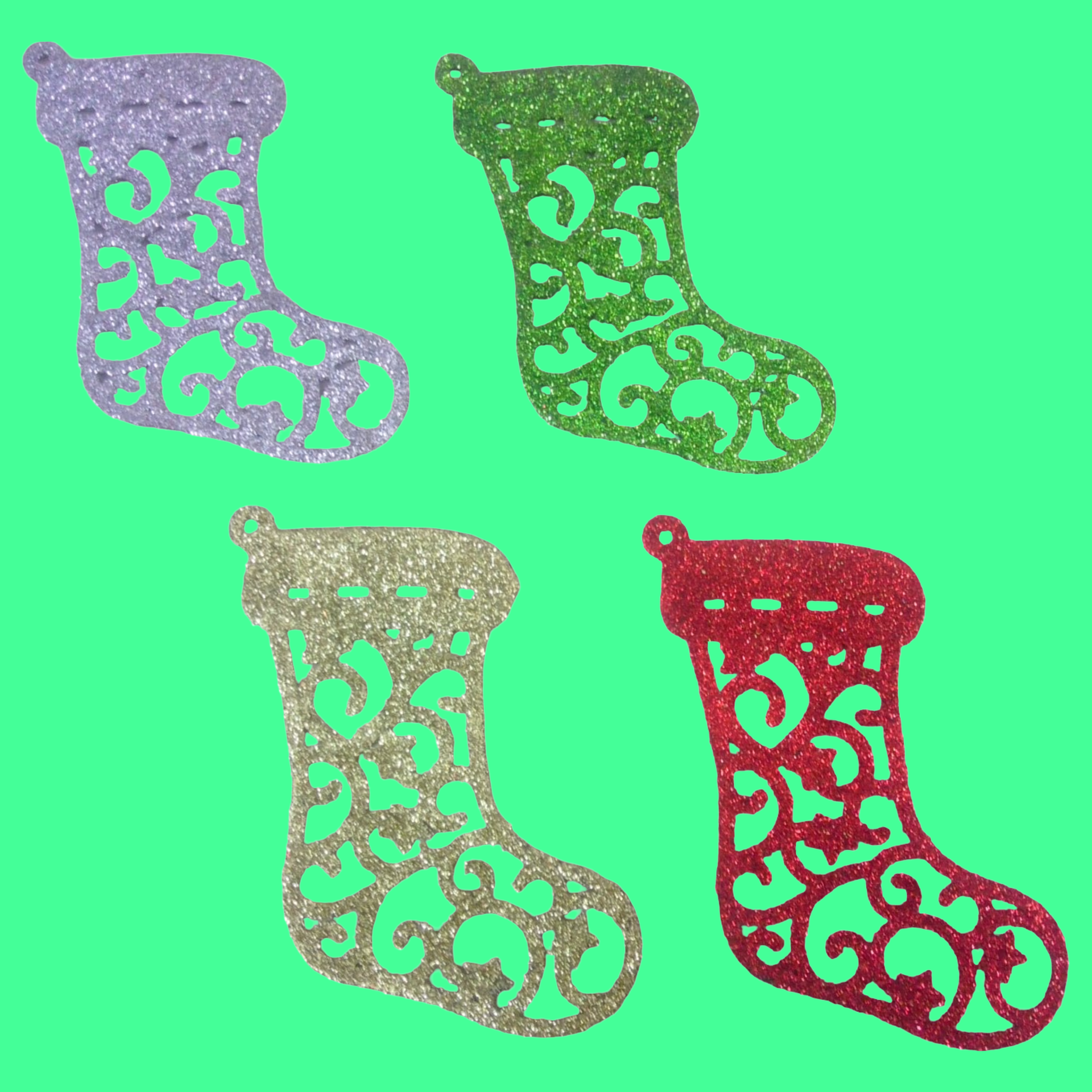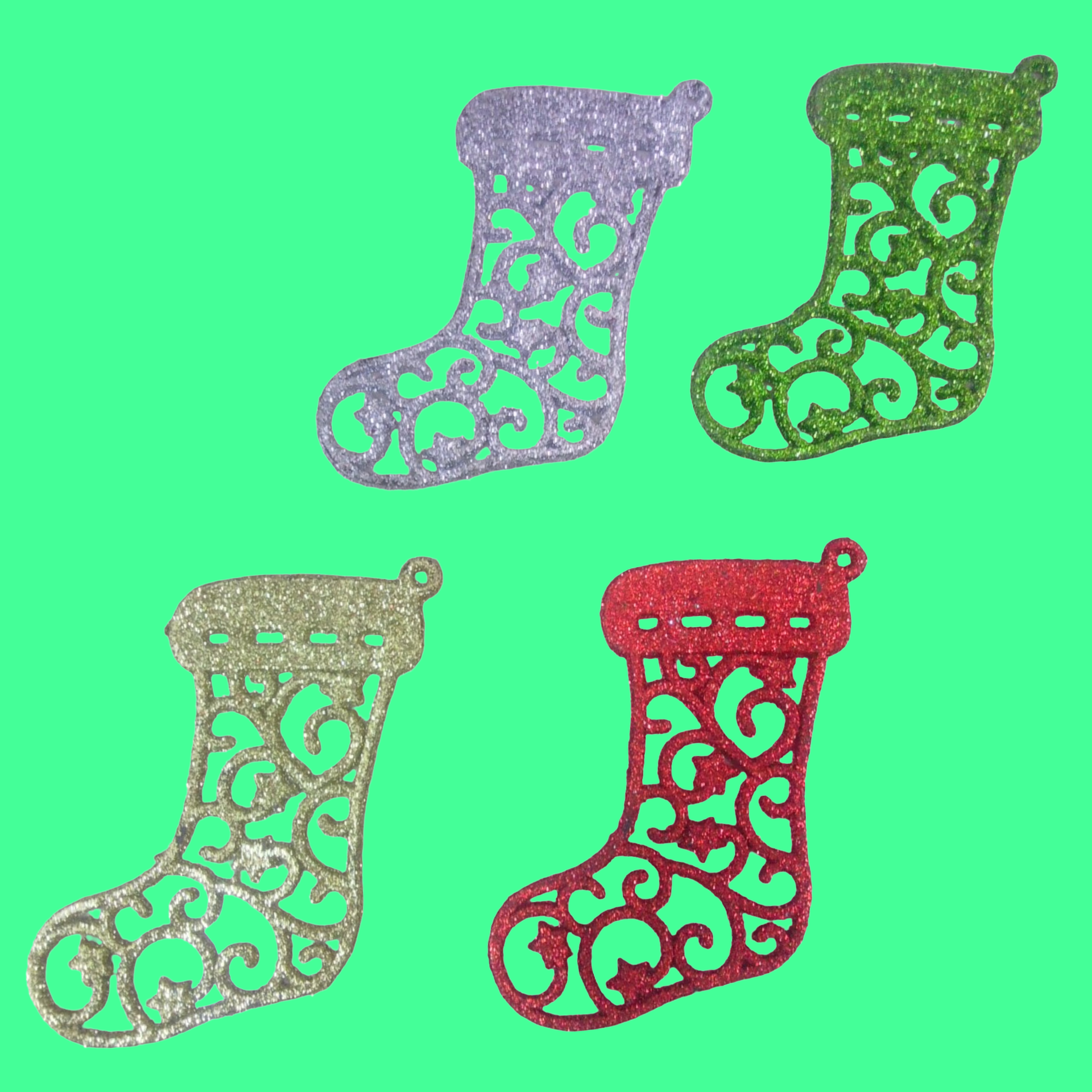 ADORNOS NAVIDEÑOS DECORATIVOS, BOTAS ESCARCHADAS NAVIDEÑAS SURTIDAS COLORES EN PAQUETE