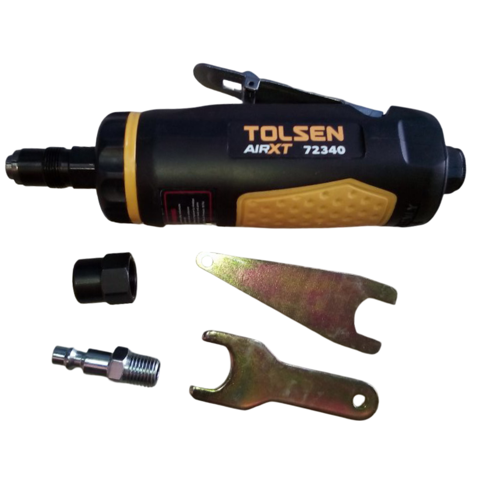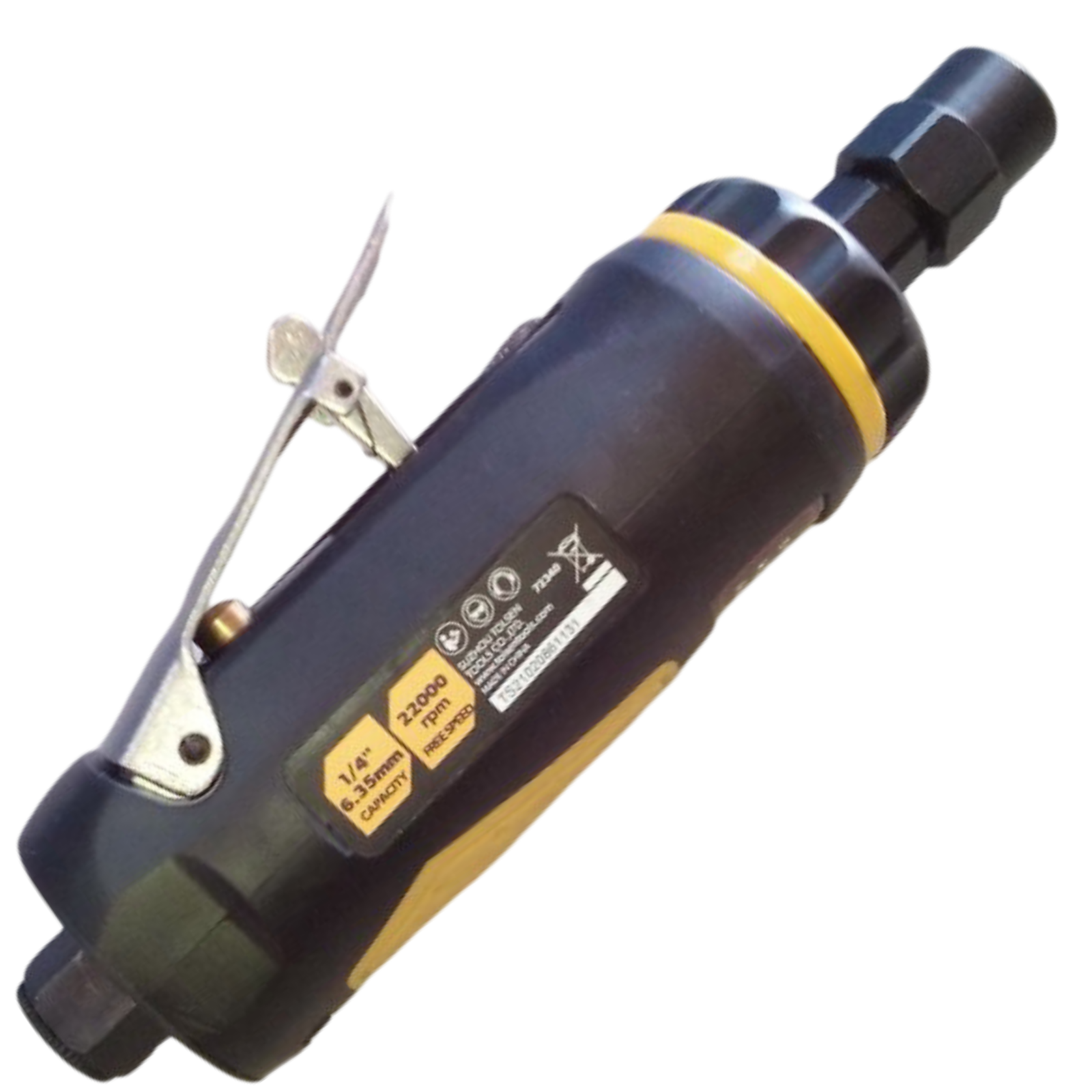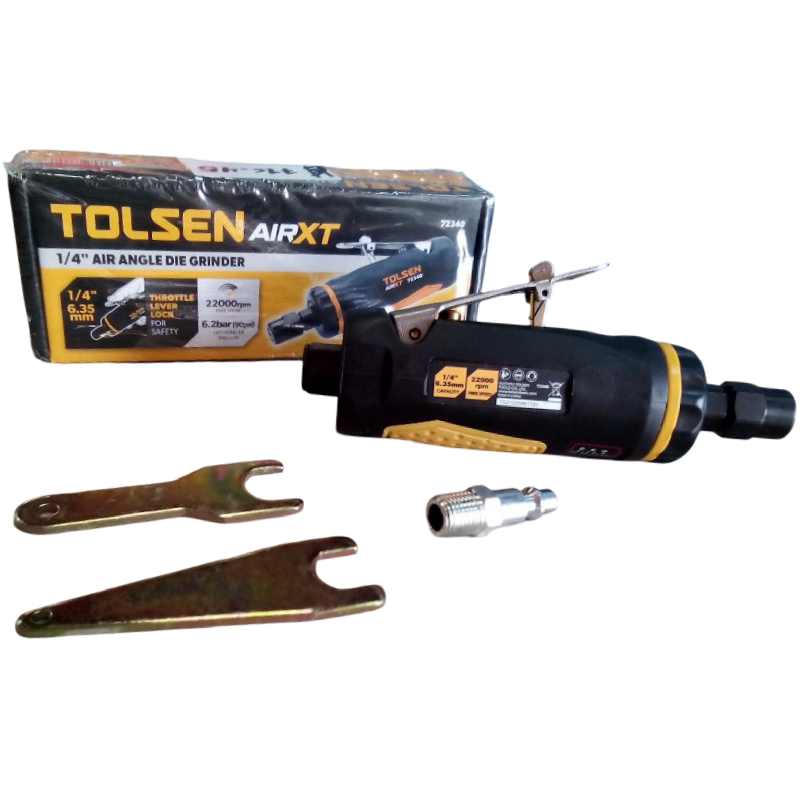 Amoladora de aire con bloqueo de palanca, neumática de 1/4, accesorios 2 llaves y enchufe de acero macho de un 1/4.