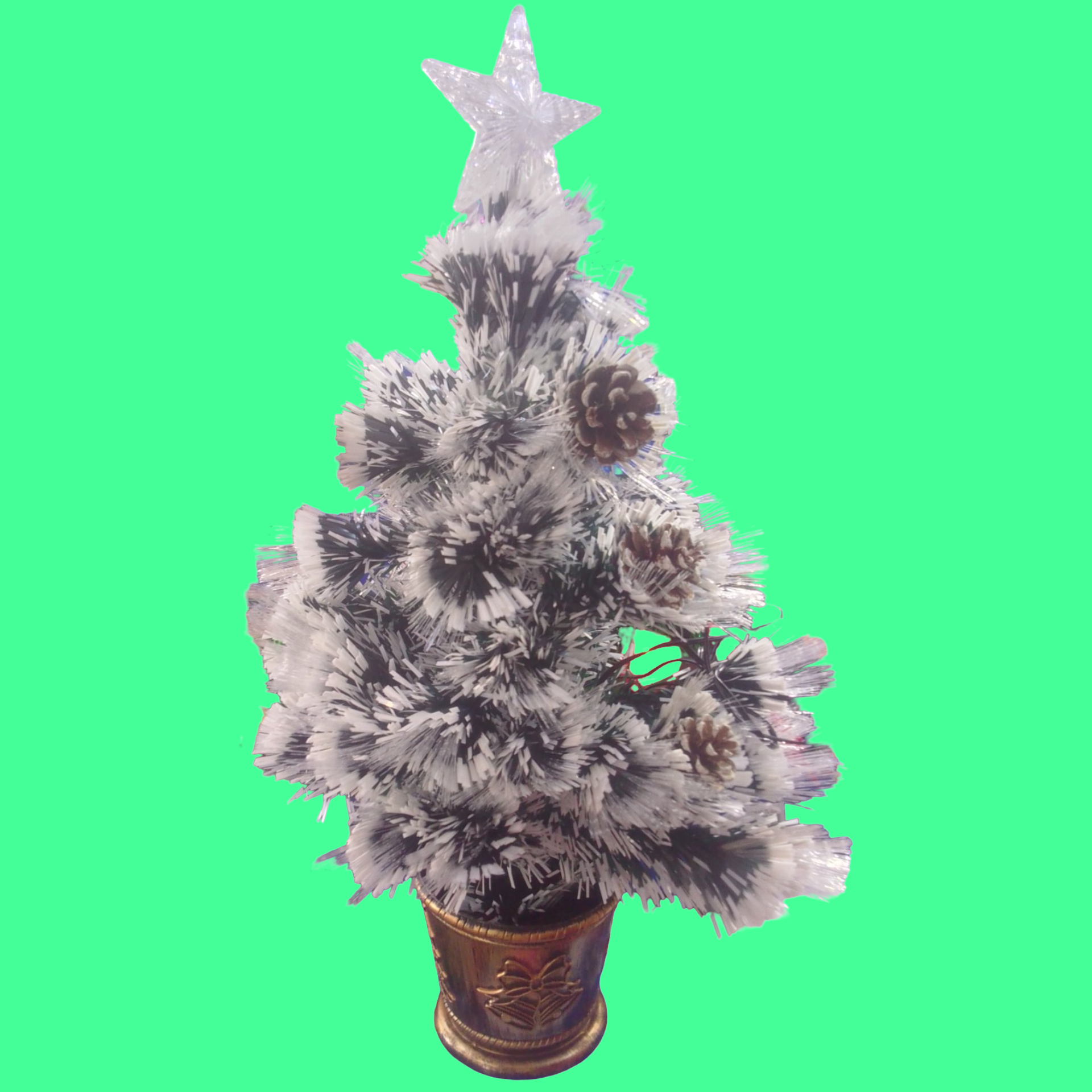 COLOR VERDE CON BLANCO CON ESTRELLA. CON LUCES DE COLORES. CON ADORNOS DECORATIVOS. 60 cm DE ALTO. POR LA COMPRA TENDRÁ UN 15 % DE DESCUENTO.