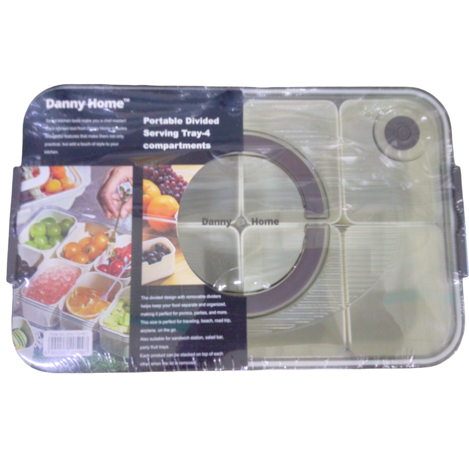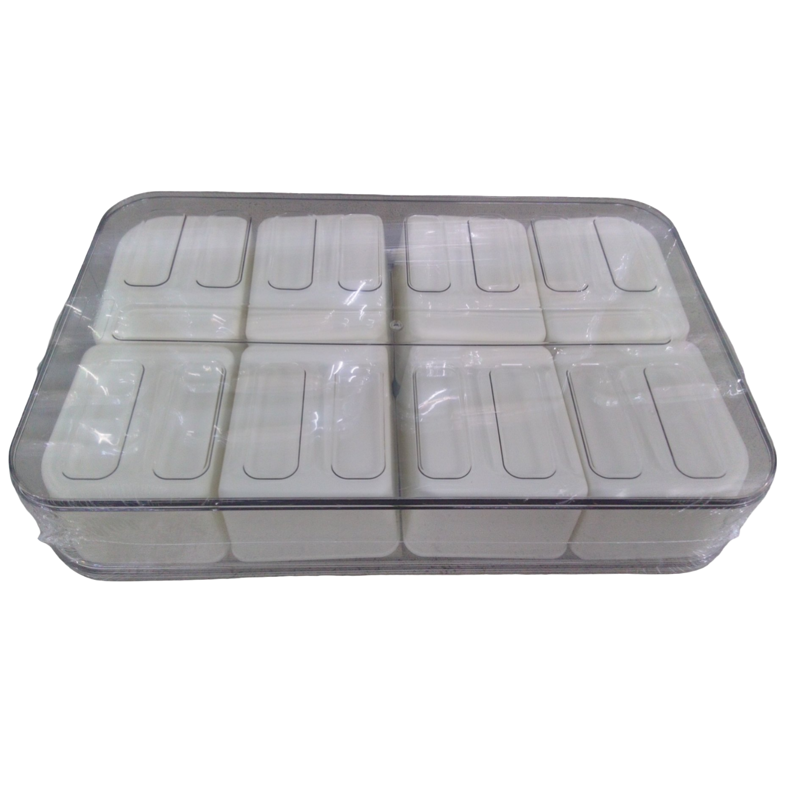 Bandeja de alimentos y bocadillos, tiene 8 compartimiento para guardar bocadillos y refrigerar. Medida: 34 x 22 x 6.3 cm, bandeja de color café y cobertor transparente.