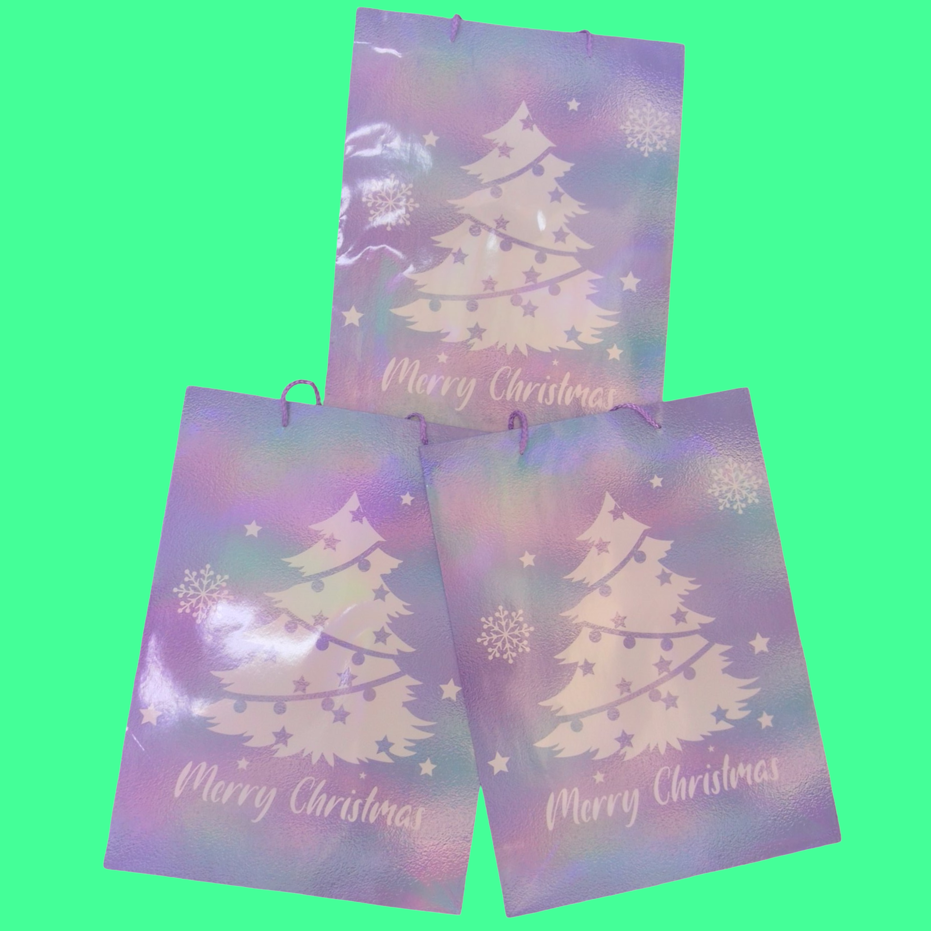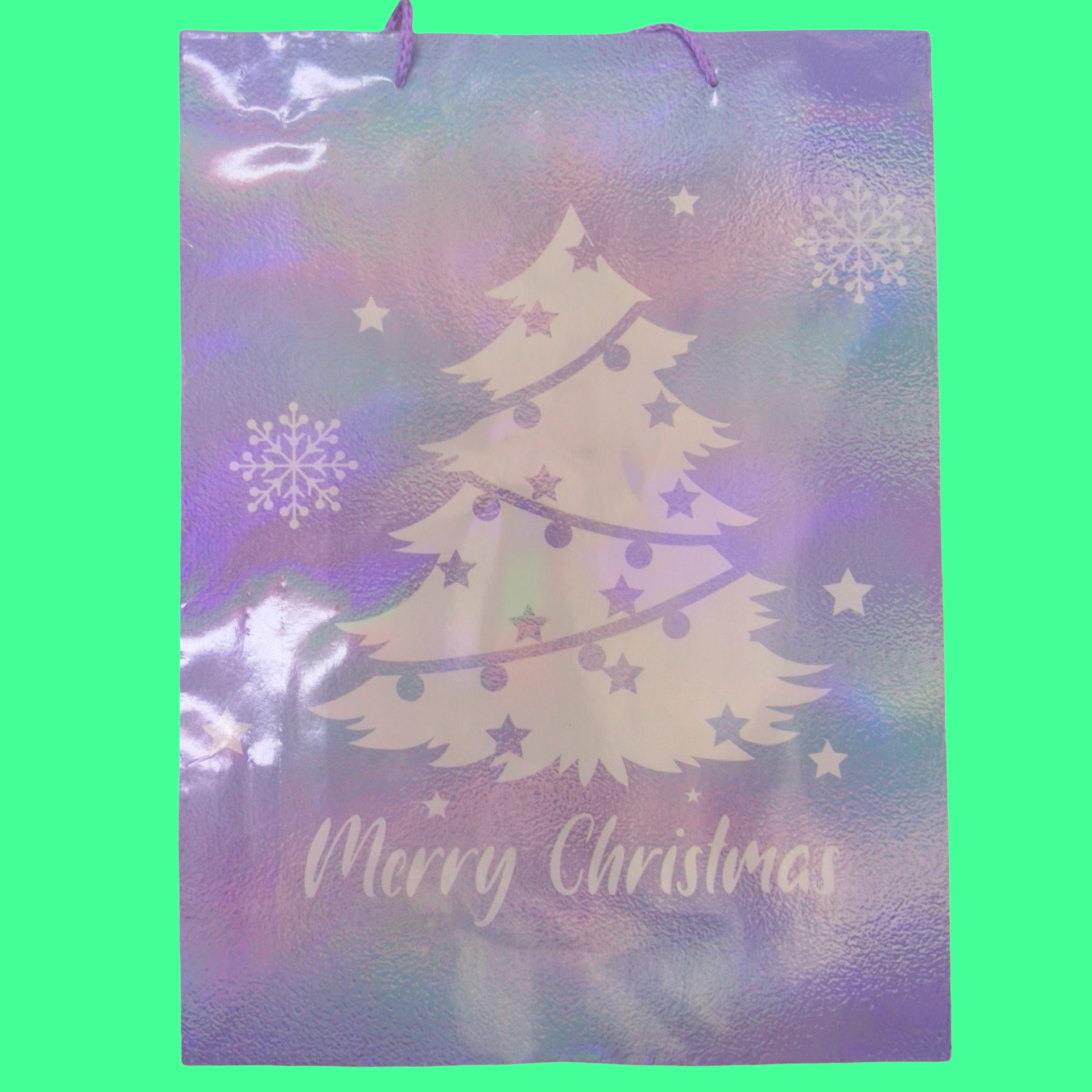 BOLSA DE REGALOS NAVIDEÑA, COLOR MORADO. TAMAÑO GRANDE.