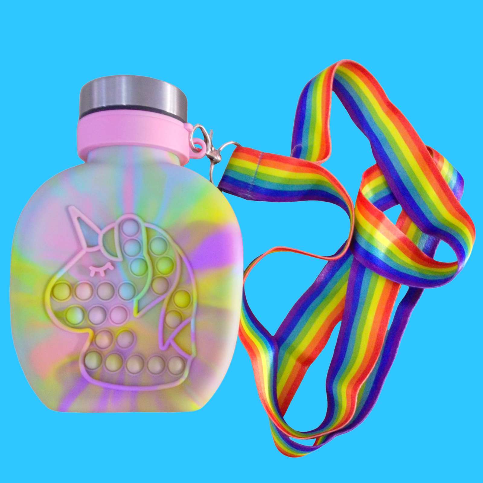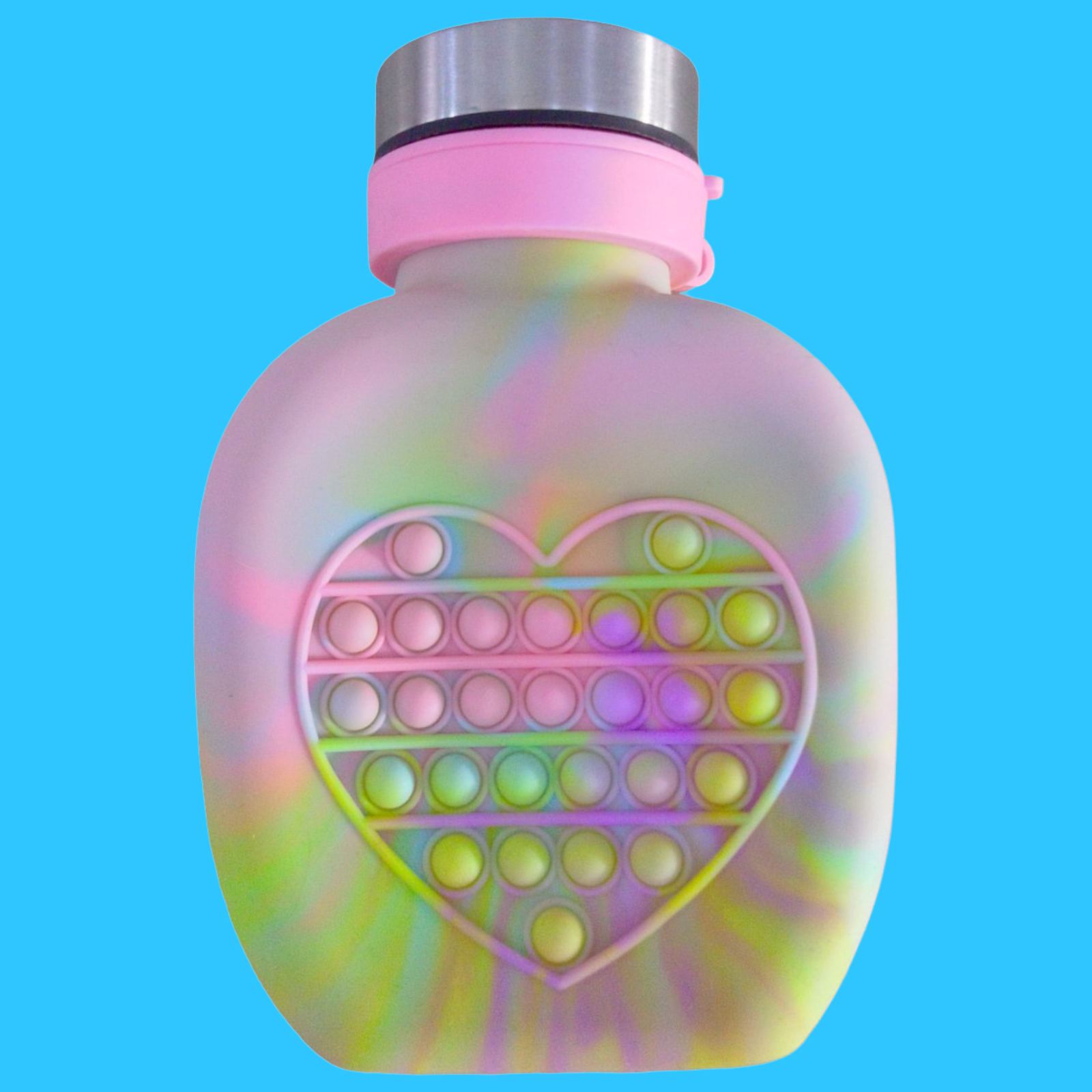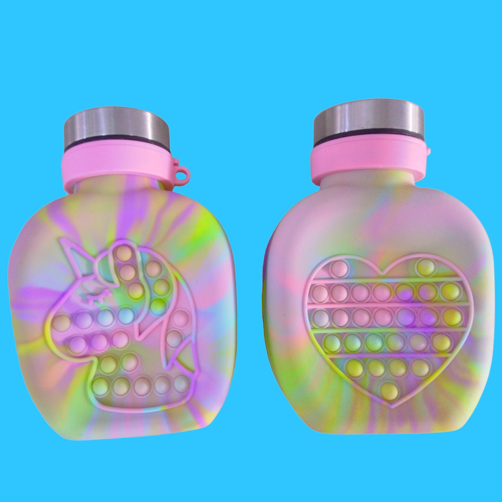 BOTELLA PARA AGUA DE GOMA ANTIESTRÉS . CAP DE 350 ML. DISEÑOS EN ENVASE.