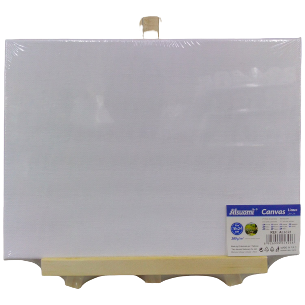 Caballete con lienzo blanco pequeño, mide 18 x 24 cm.