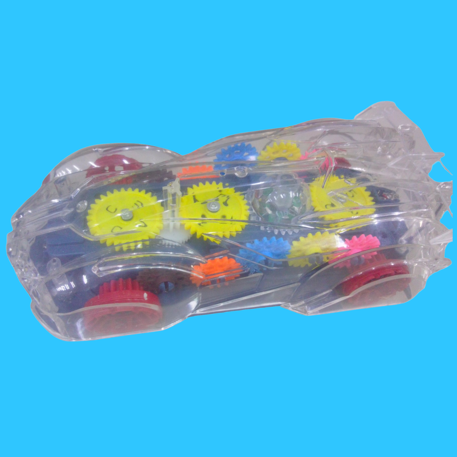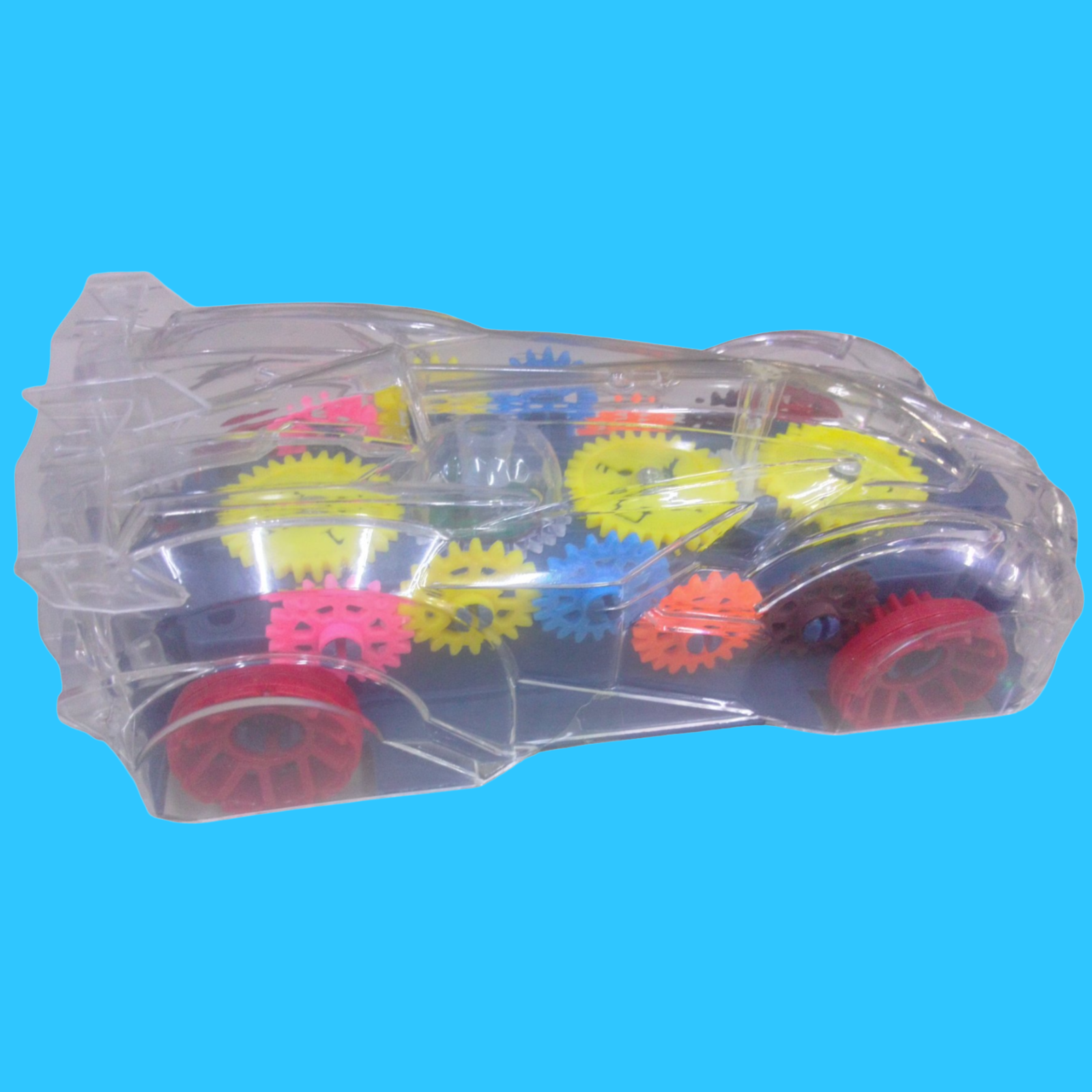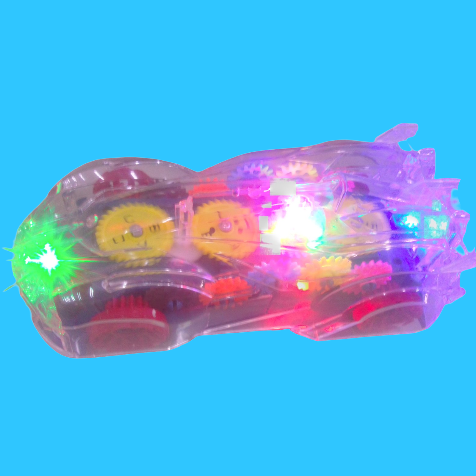 CARRITO MÚSICAL. CON LUCES MULTICOLORES. TRANSPARENTE. FUNCIÓNA CON 3 BATERÍAS 2 A