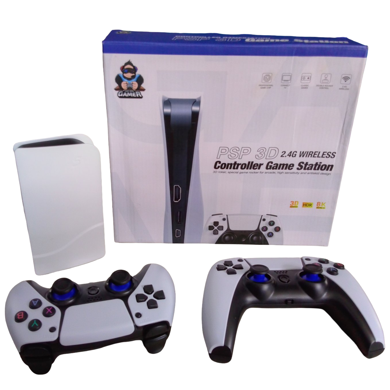 Centro de entretenimiento familiar para el hogar, tipo play station CPU delgado, mando inalámbrico 2 controles, juegos incorporados rápido juegos en 3D, Inalámbrico 2.4G, juega hora sin precedentes.