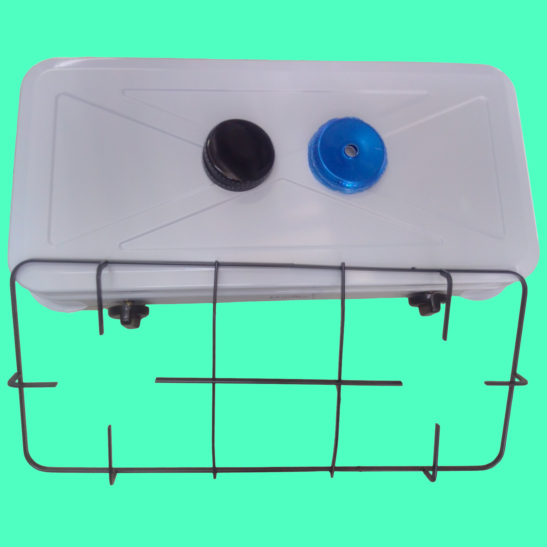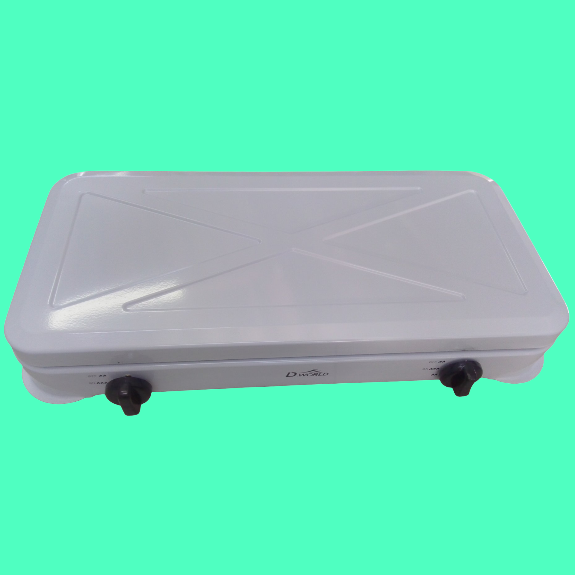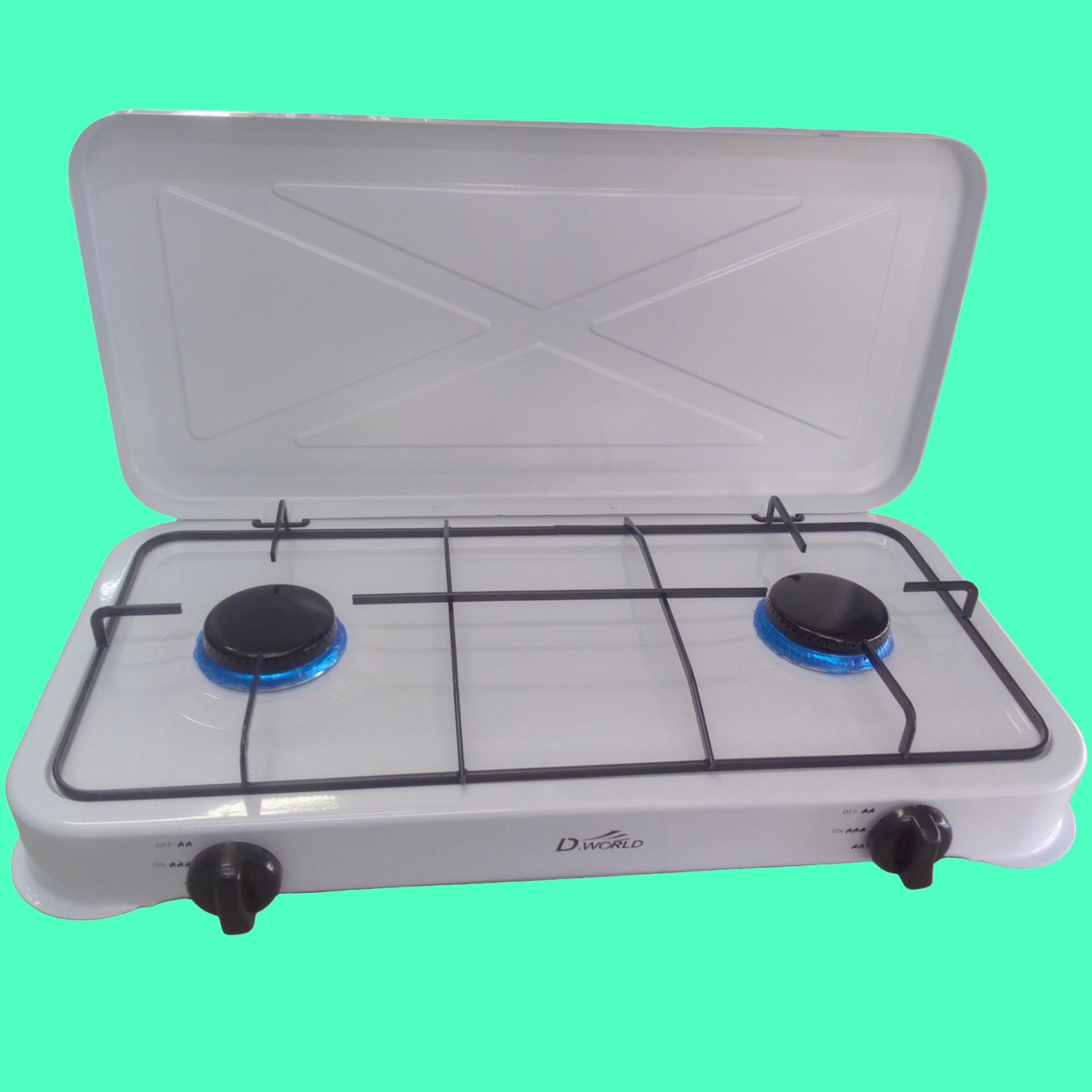 DE METAL PORCELANIZADA, COLOR BLANCO, 2 QUEMADORES, USA GAS LICUADO DE PETRÓLEO Y TIENE TAPA DE PROTECCIÓN.