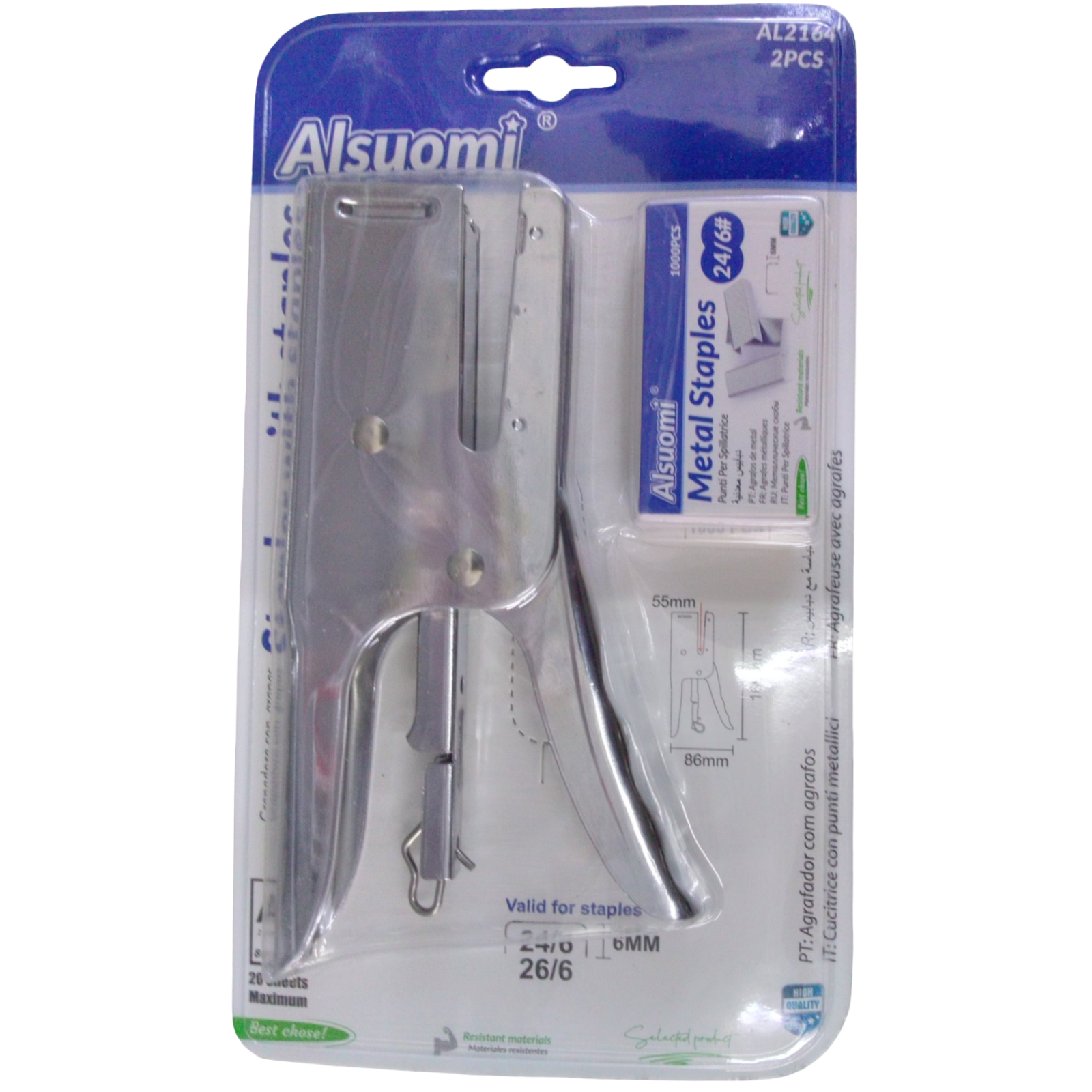 ENGRAPADORA MANUAL DE METAL. CON REPUESTOS DE GRAPAS. MEDIDAS DE ENGRAPADORA: 86 X 169 X 55 MM.