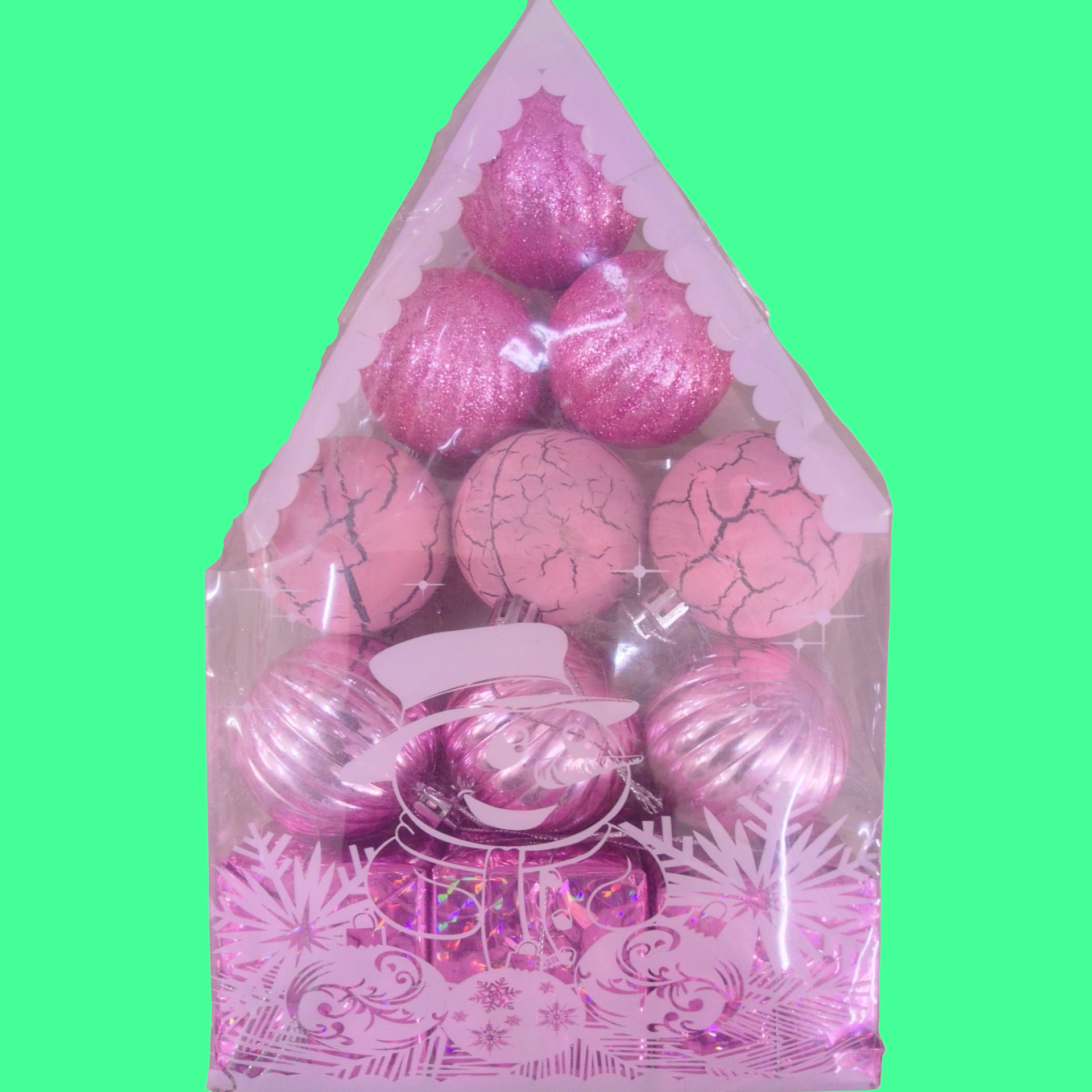SET DE 12 ESFERAS. ADORNOS NAVIDEÑOS PARA DECORACIÓN DE ÁRBOL NAVIDEÑO. COLOR ROSADO.