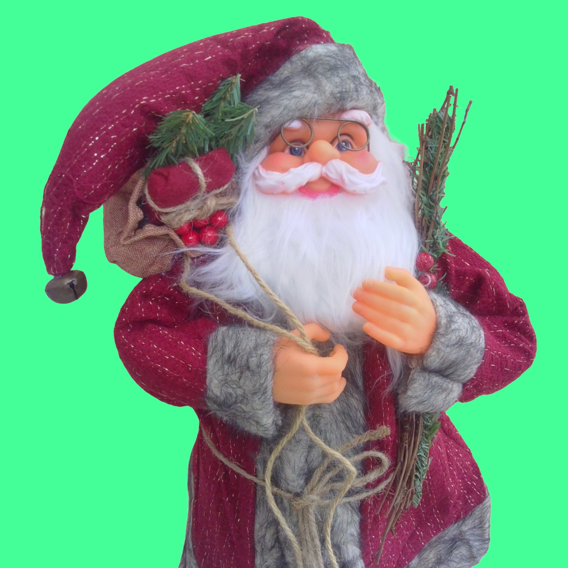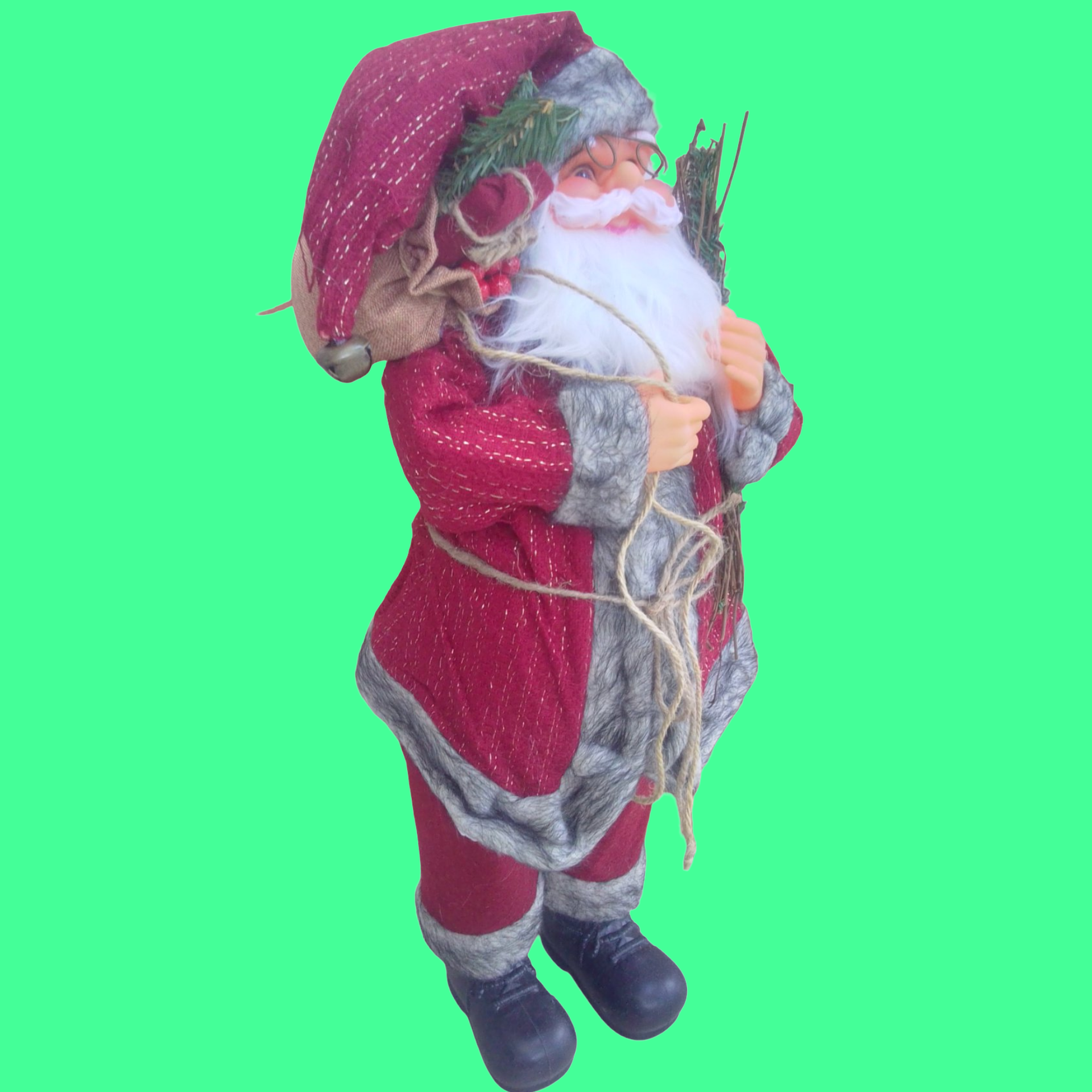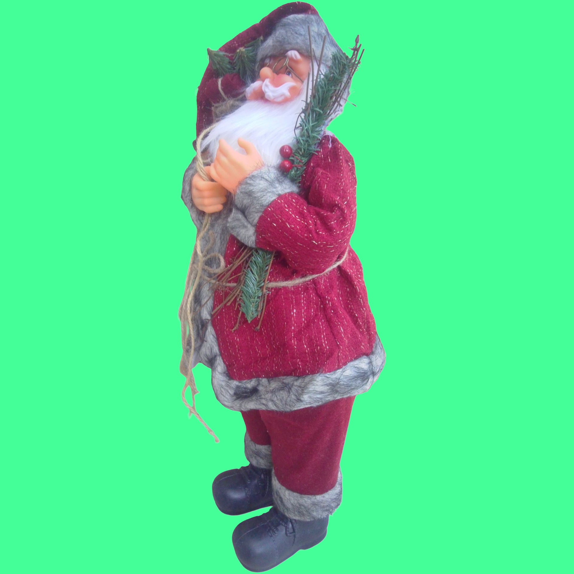 FIGURA DE PAPÁ NOEL. TRAJE ROJO CON GRIS. COSTALITO CON REGALOS. ALTURA DE 64 CM.