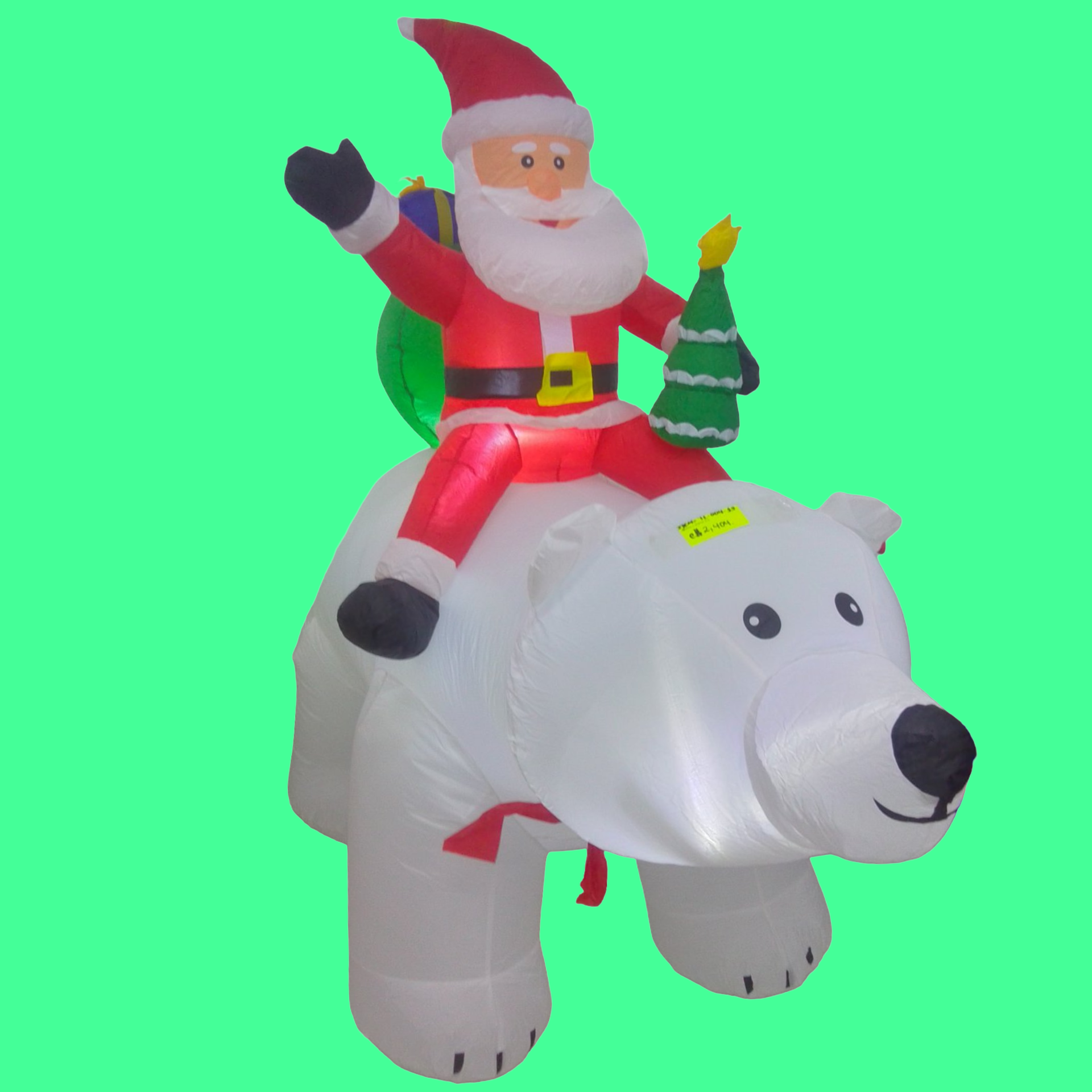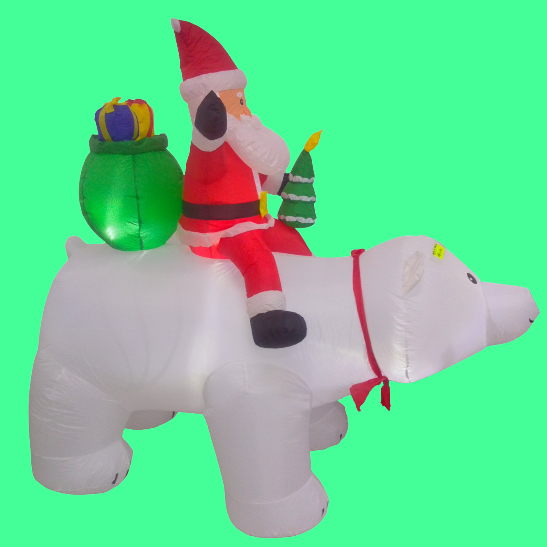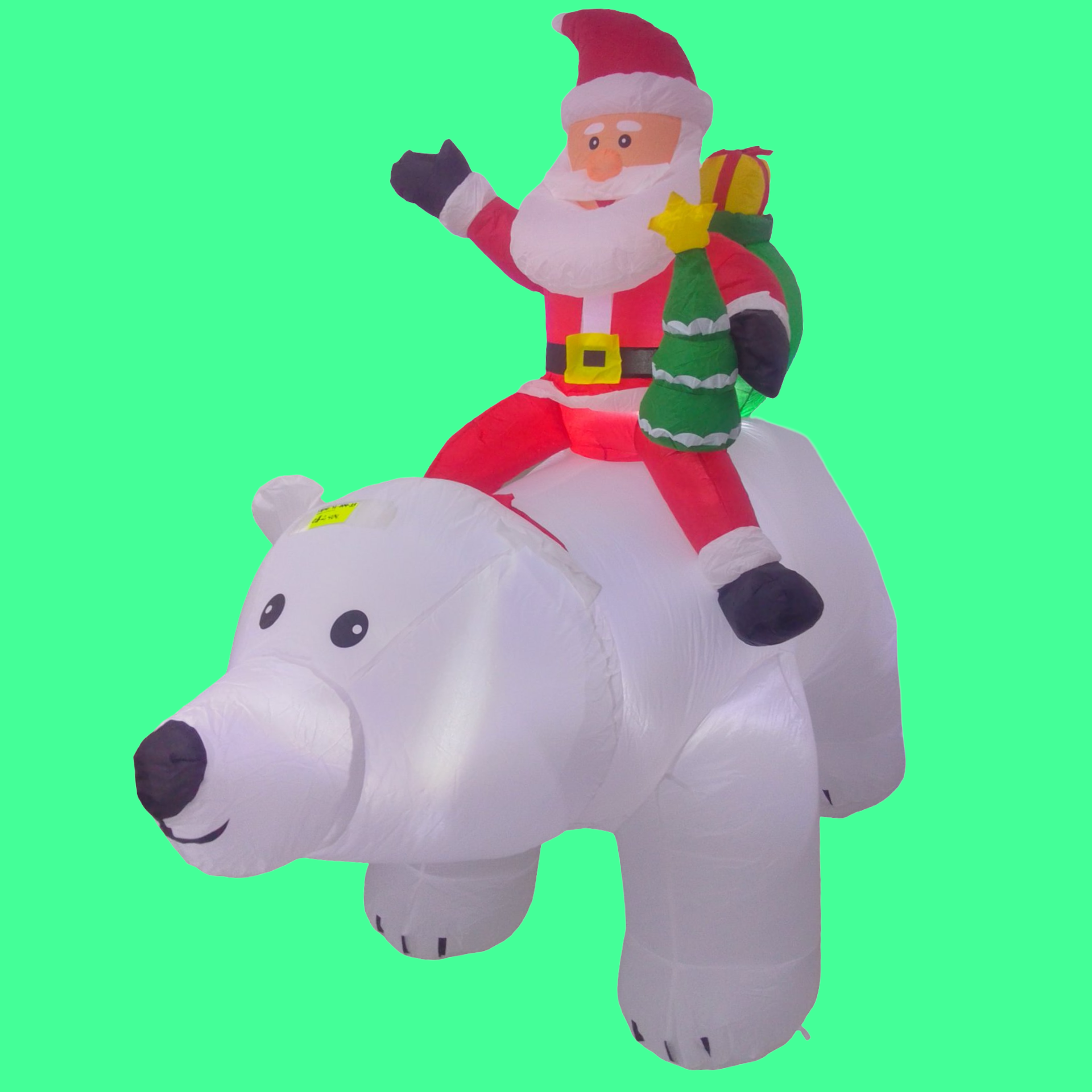 OSO POLAR CON PAPÁ NOEL CON REGALOS. INFLABLES CON LUZ. ALTURA 1.85 MTS.