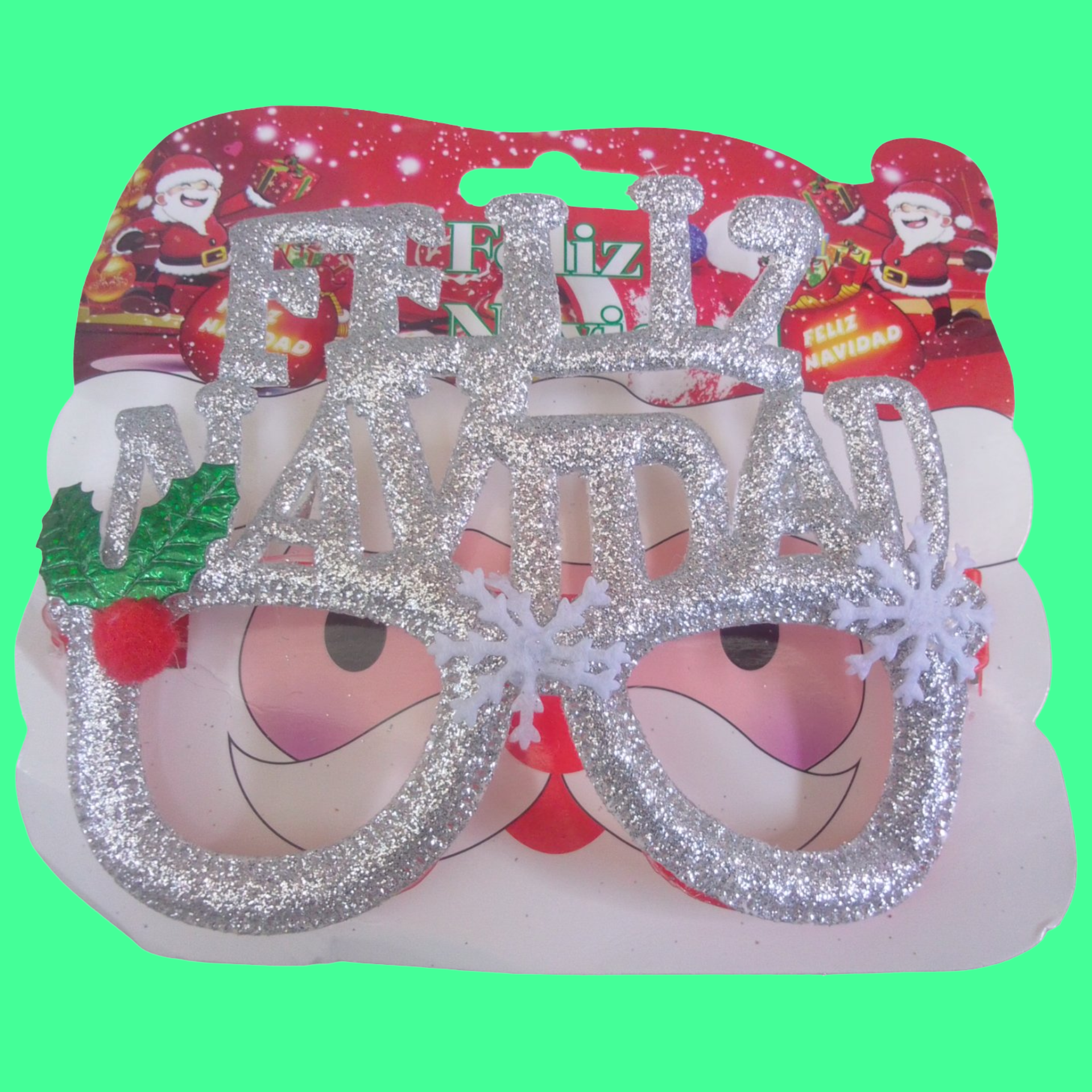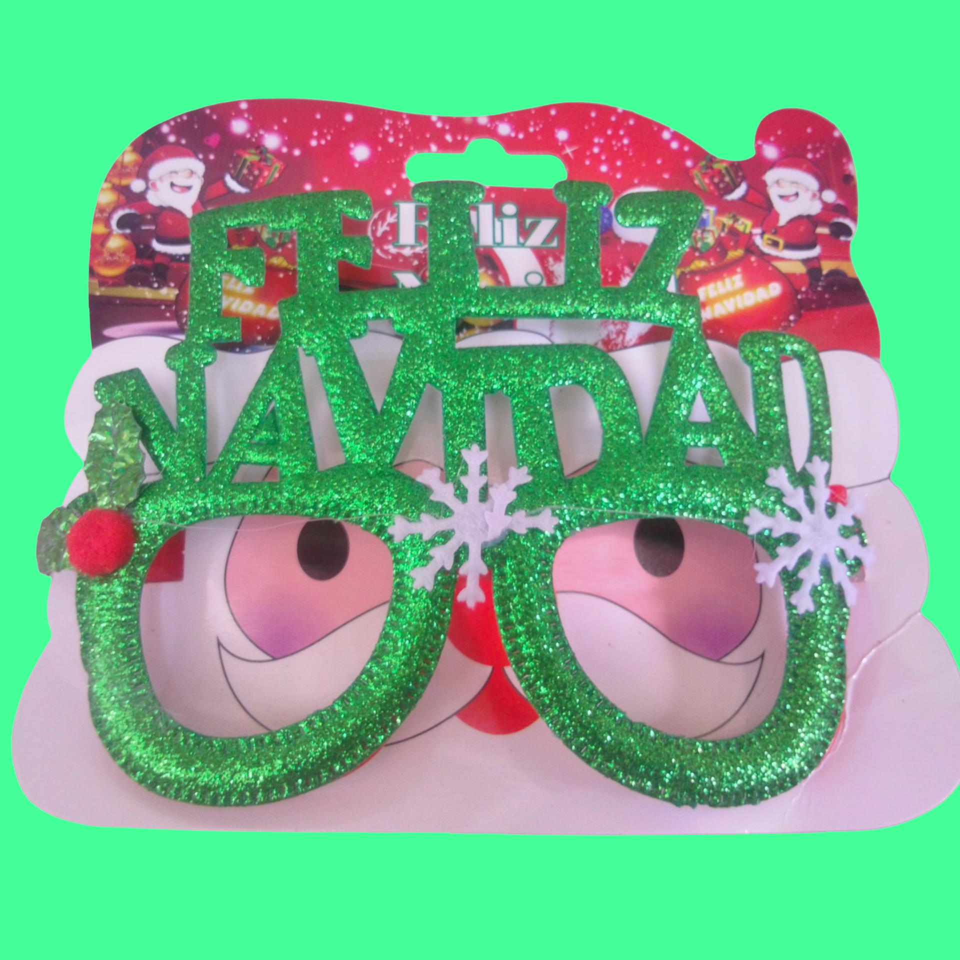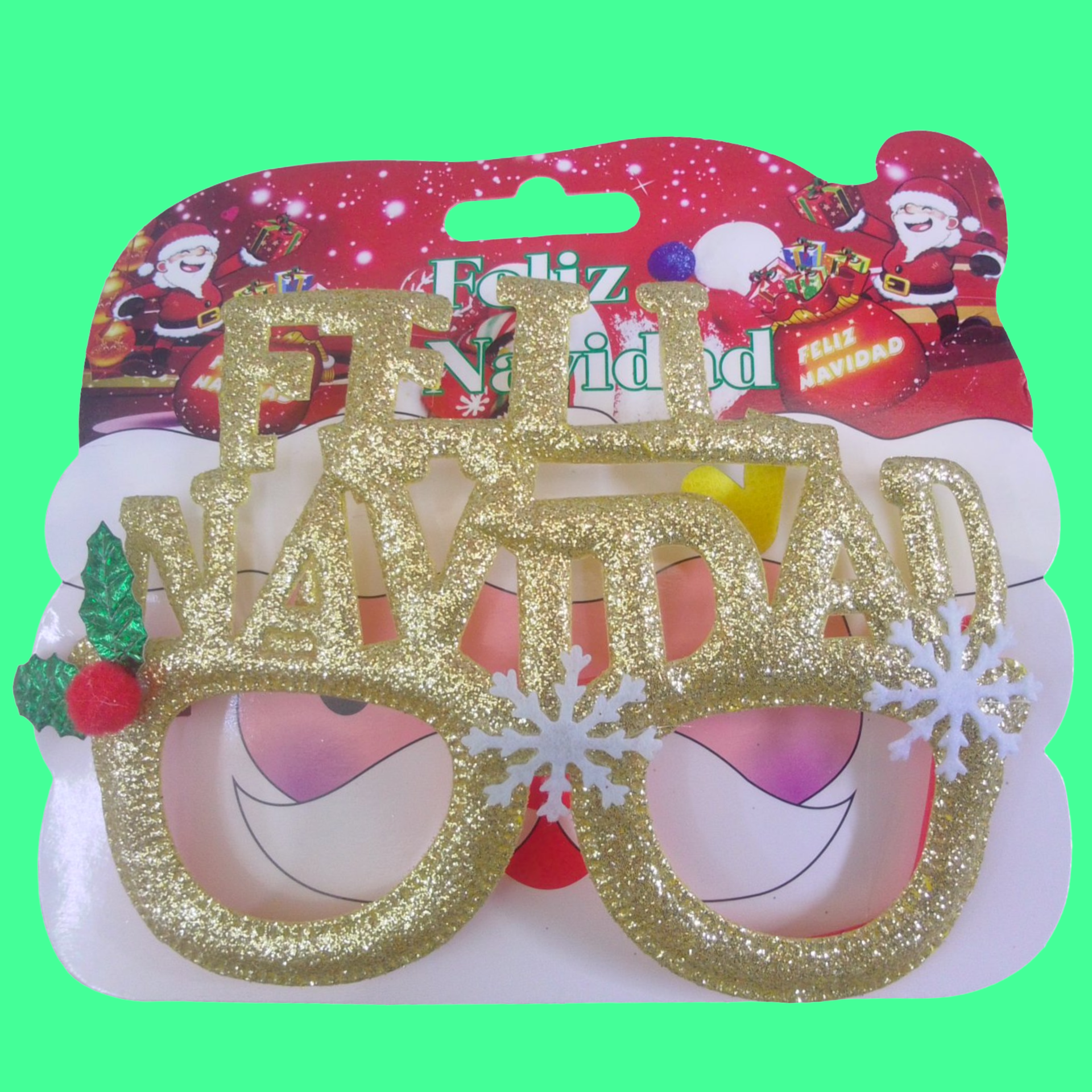 GAFAS DECORATIVOS NAVIDEÑOS. FELIZ NAVIDAD, COLORES DISPONIBLES, VERDE, AMARILLO Y DORADO.
