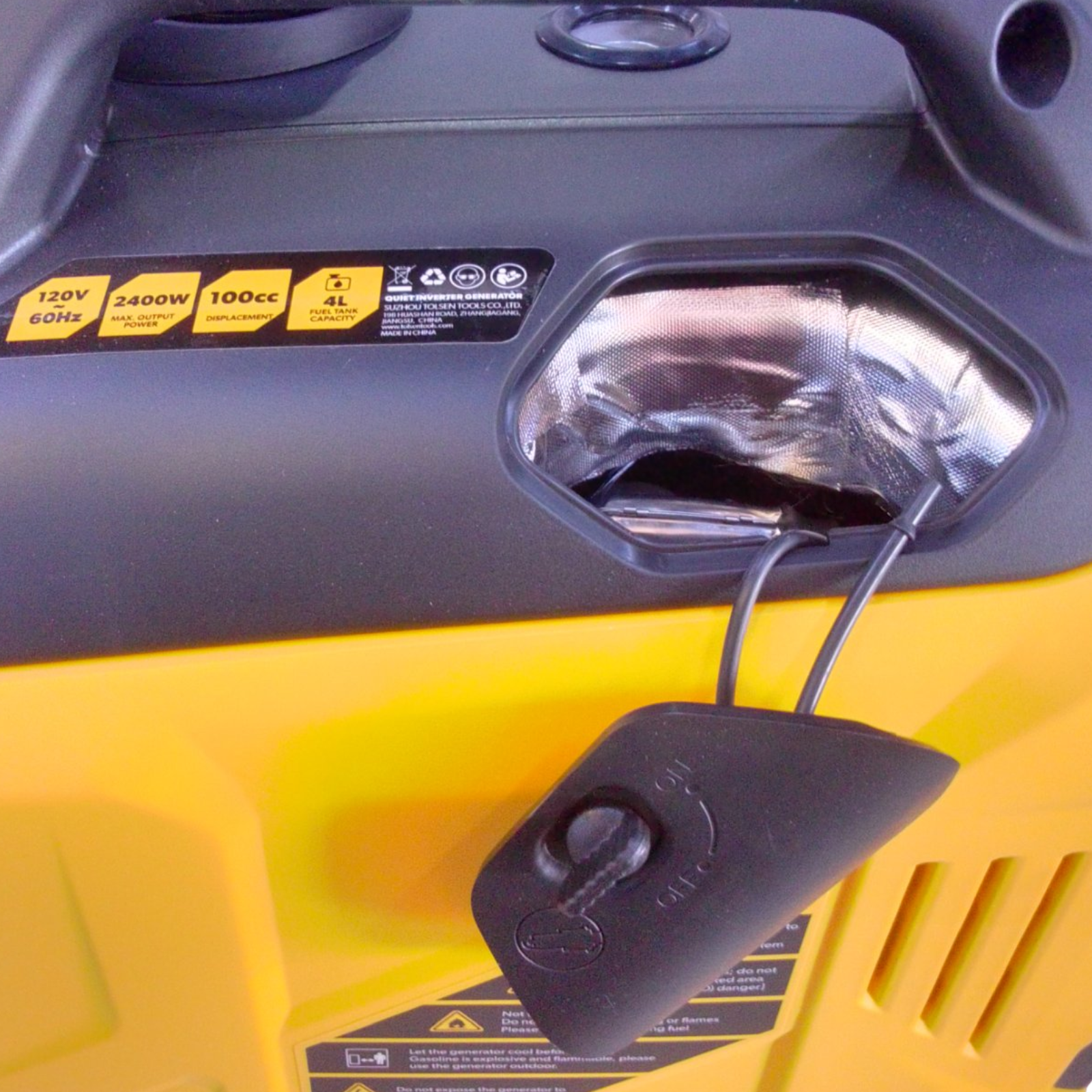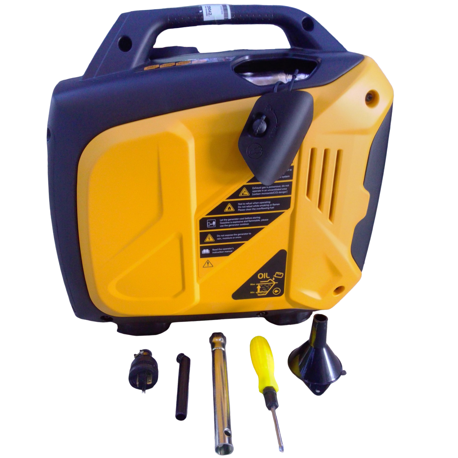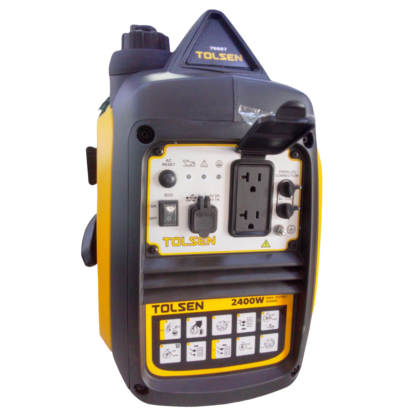 Generador de electricidad, de gasolina con capacidad de 4 lts, de 120 voltios de generar corriente eléctrica, tiene varias salidas de corriente y puerto USB, motor silencioso, encendido y choque de arranque de cuerda.