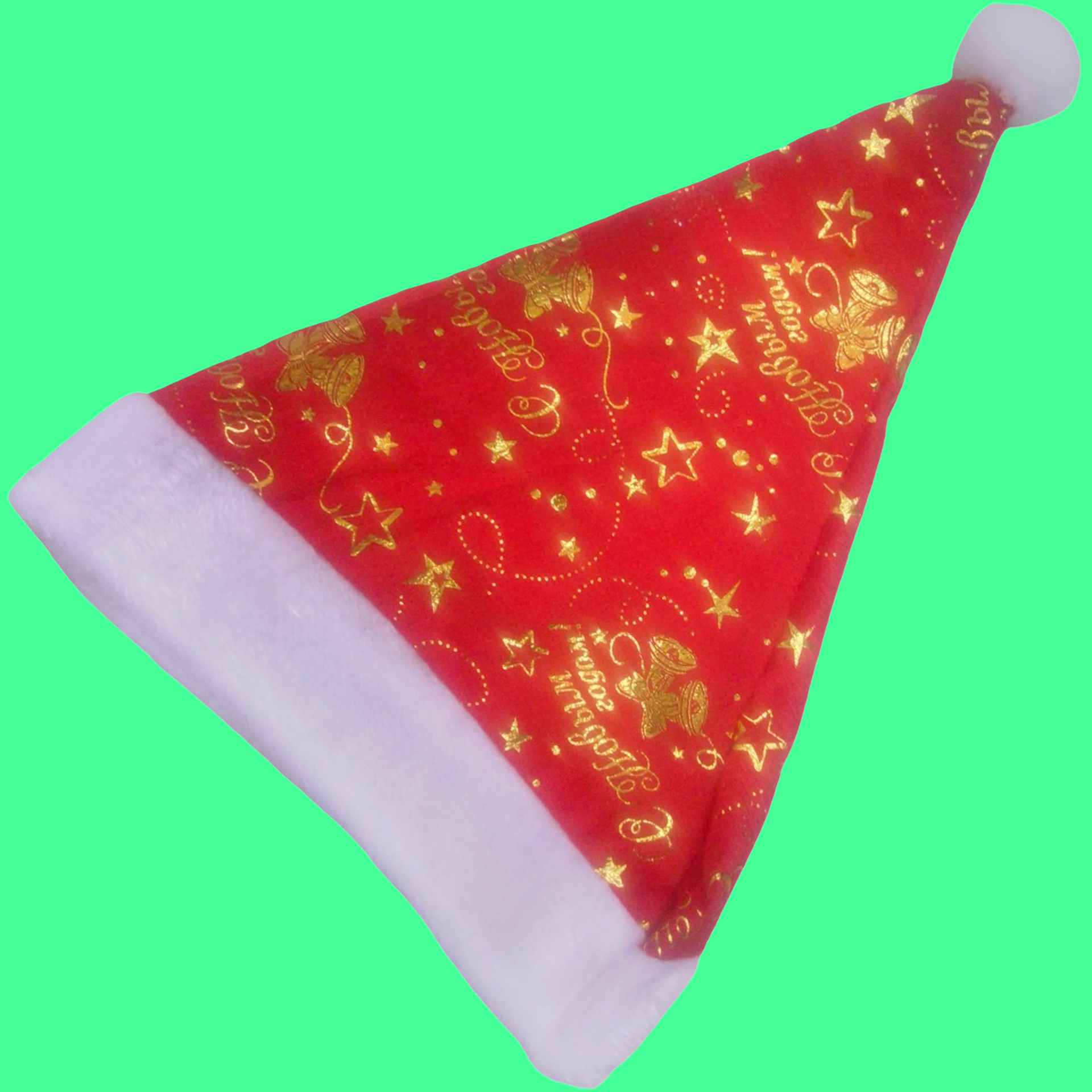 GORRO NAVIDEÑO DE FELPA. ROJO CON BLANCO Y LETRAS DORADAS.