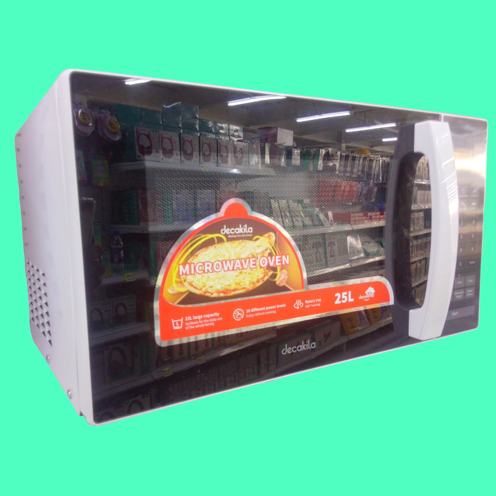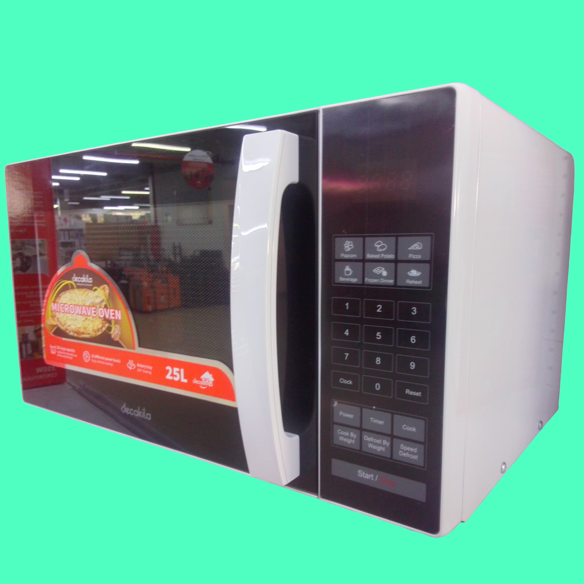 Horno microondas táctil. Color blanco. Capacidad de 2.5 lt. Marca DECAKILA.