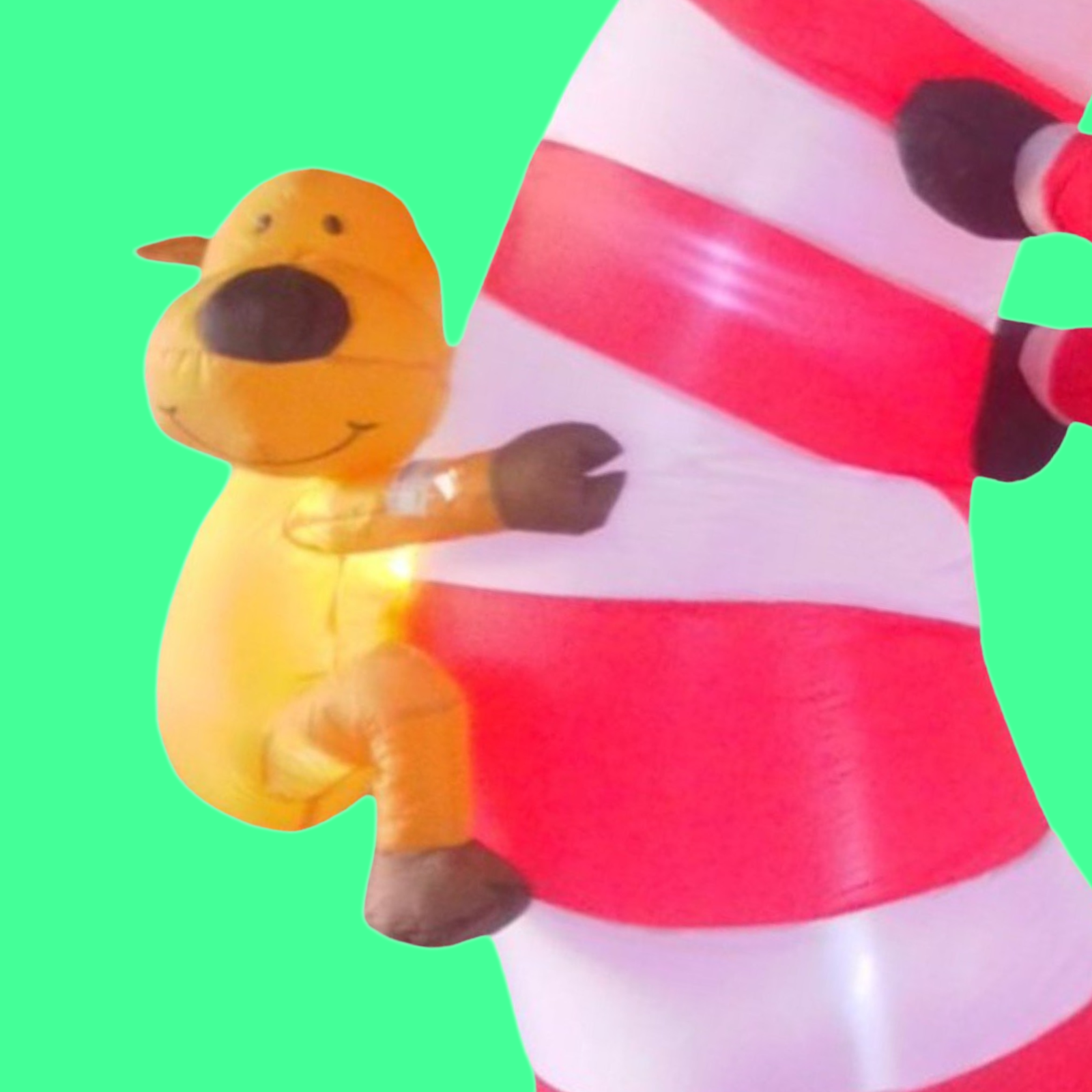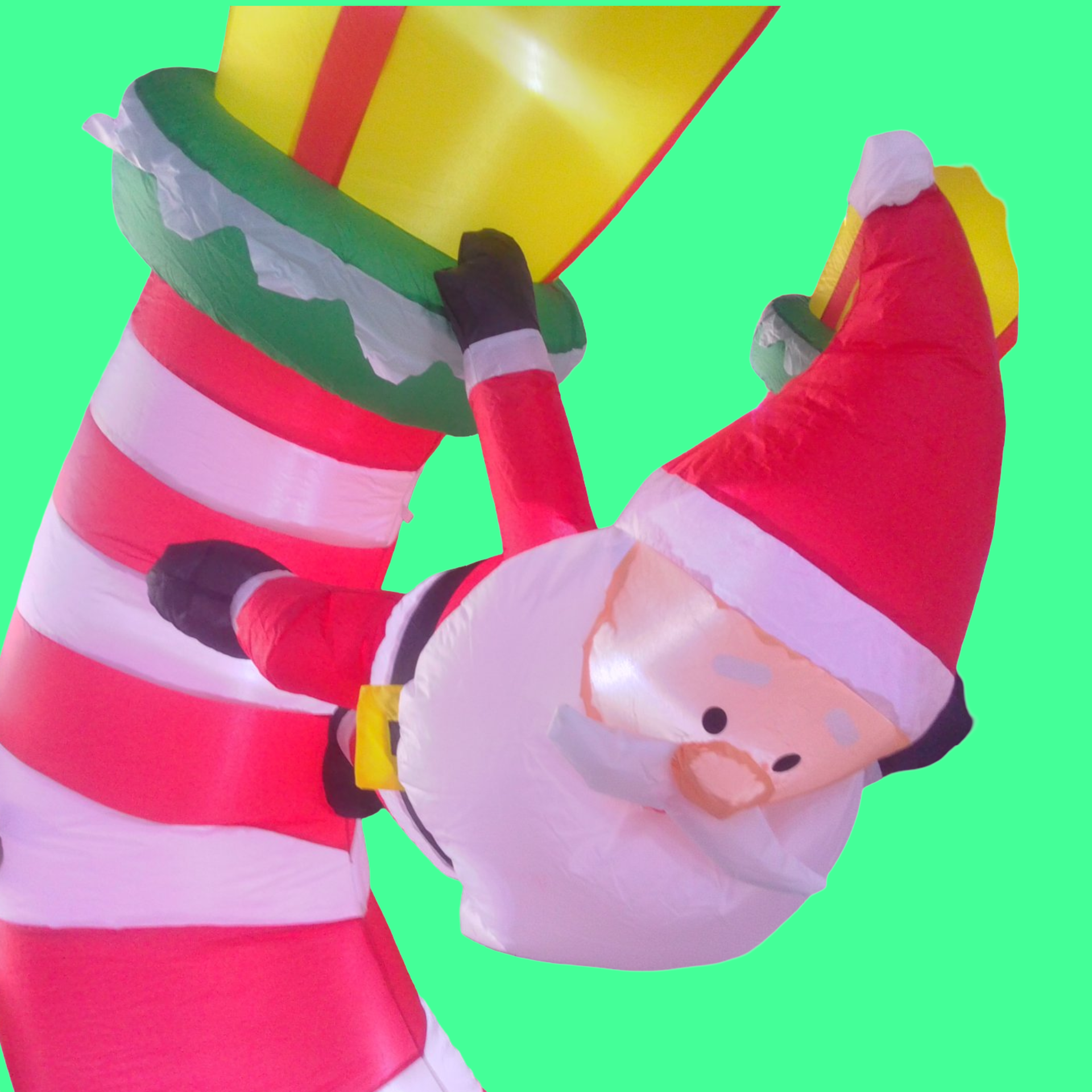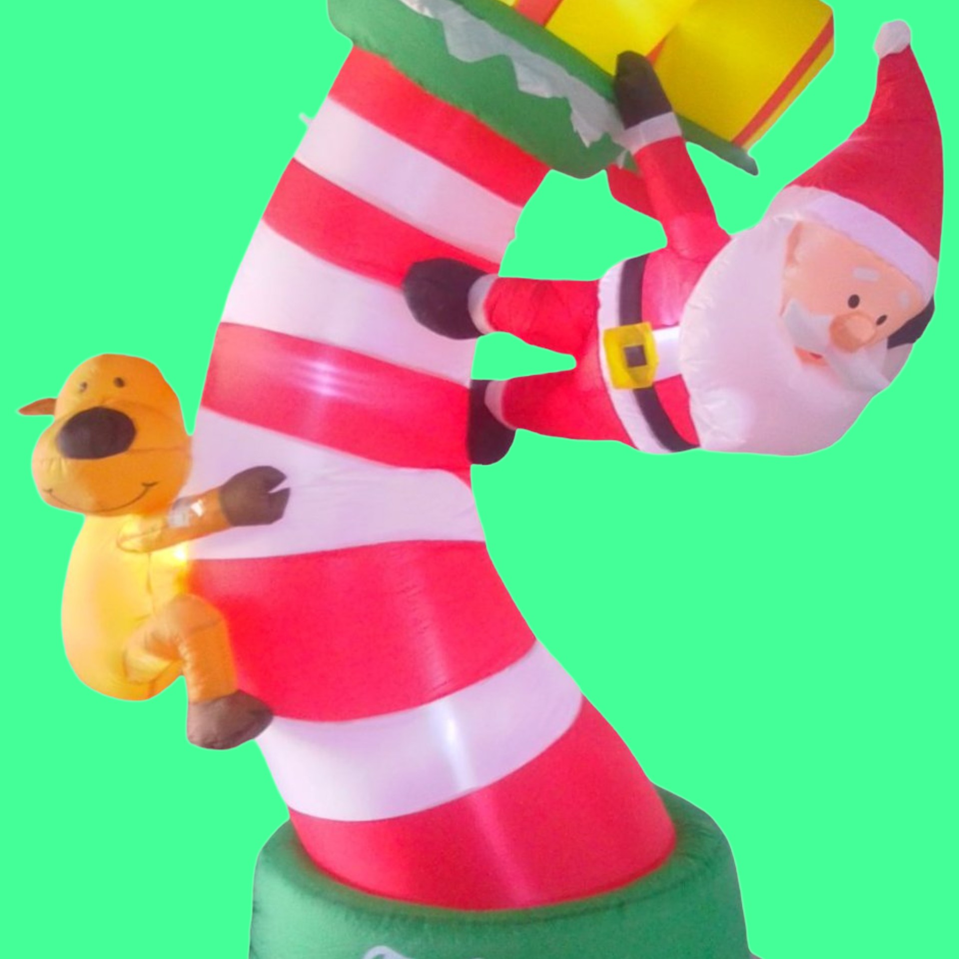 INFLABLE NAVIDEÑO. MIDE 3 MTS ALTO. FARO DE CARAMELO ROJO CON BLANCO PAPÁ NOEL Y RENO.