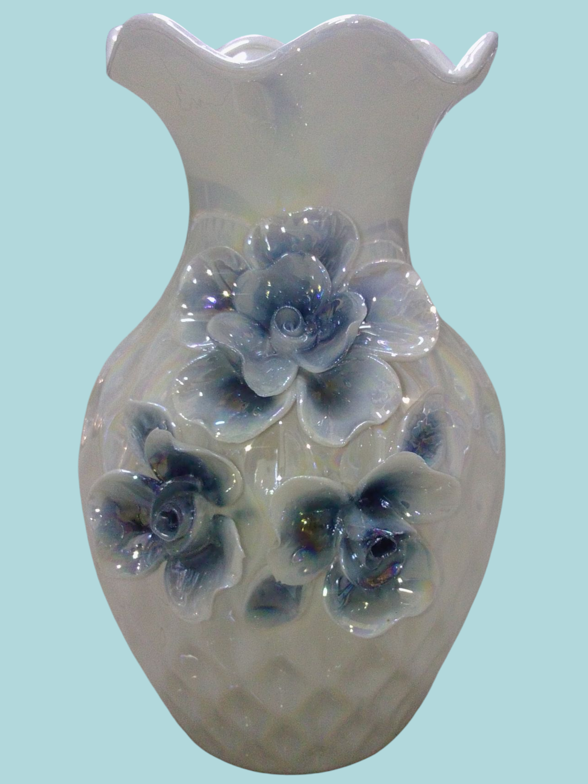 Color crema tornasol con flores azules.
