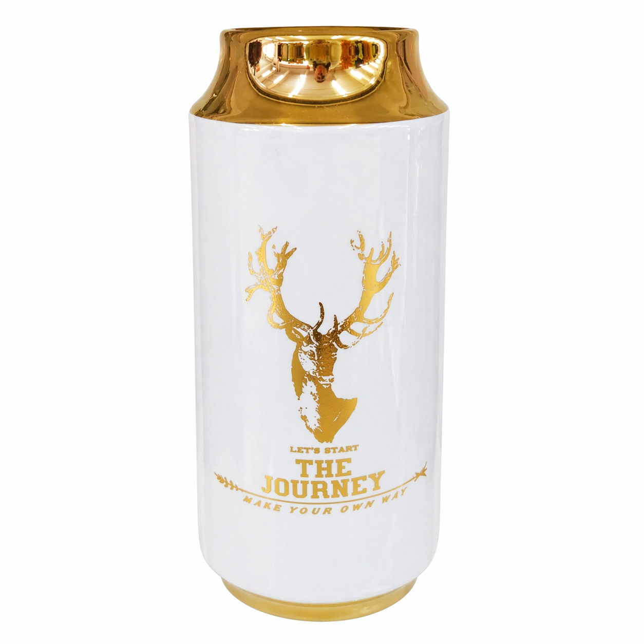 Jarrón en tono marfil con detalles florales y acabados dorados. Ideal para ambientes elegantes y decoraciones refinadas.