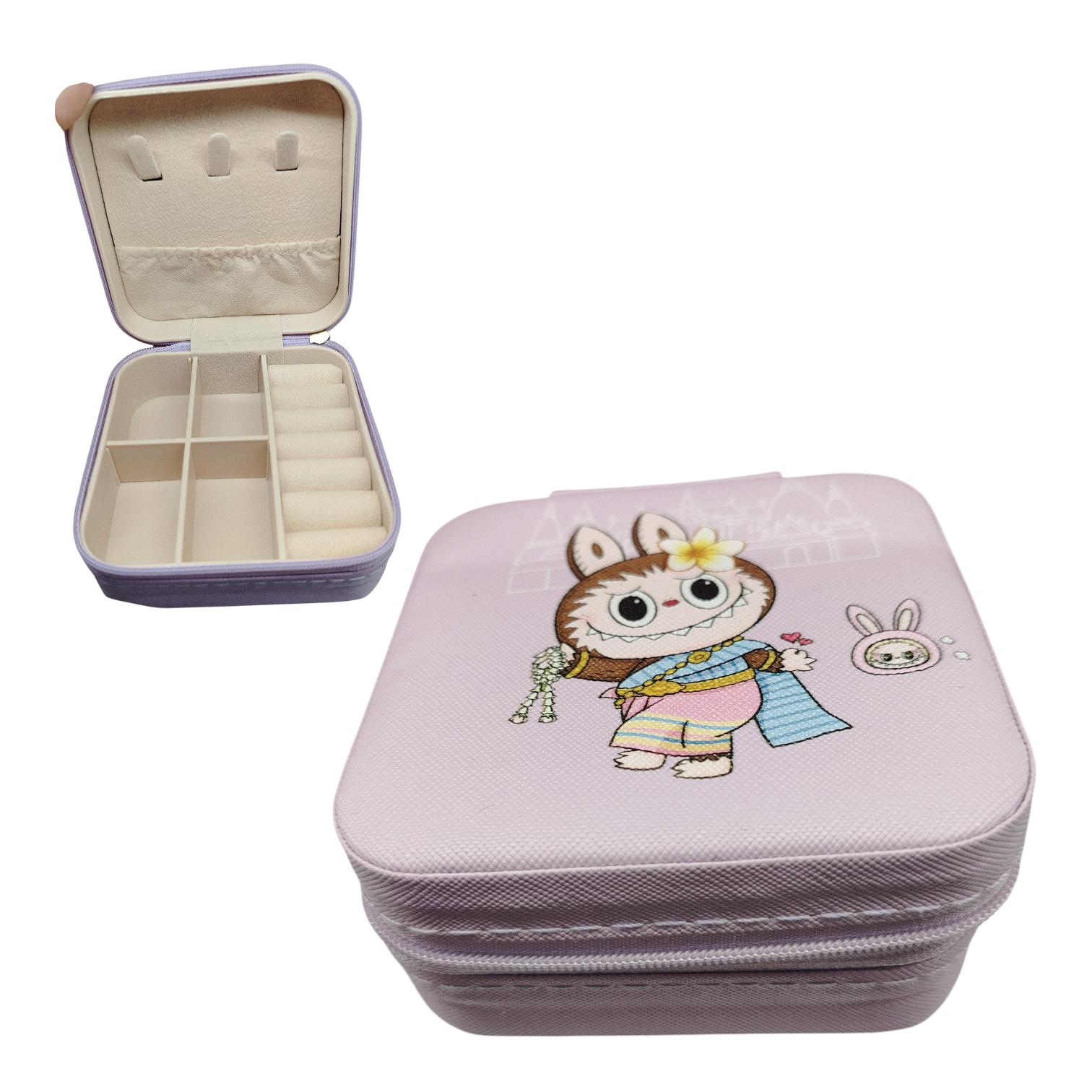Práctico y elegante joyero compacto ideal para mantener tus accesorios organizados y protegidos. Cuenta con múltiples compartimentos internos para anillos, aretes y pequeños accesorios, además de un cierre seguro tipo cremallera. Su diseño portátil lo hace perfecto para uso diario o para llevar de viaje