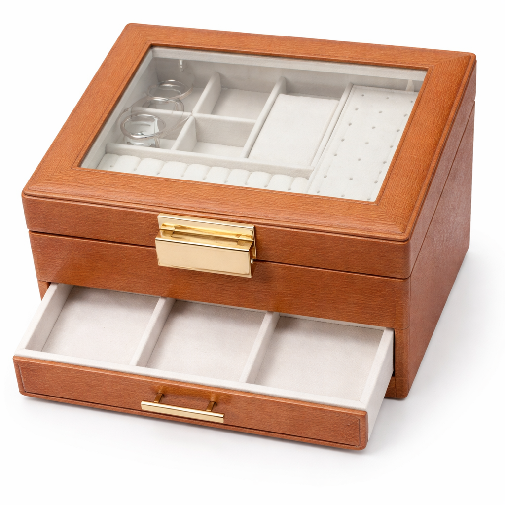 Su diseño funcional combina estética y practicidad, permitiéndote optimizar el espacio mientras mantienes tus joyas bien clasificadas. Dependiendo del modelo, cuenta con compartimentos, divisiones y/o cajones que facilitan la organización y el acceso rápido a cada pieza. Además, su tamaño es perfecto tanto para uso en casa como para llevarlo contigo en viajes.