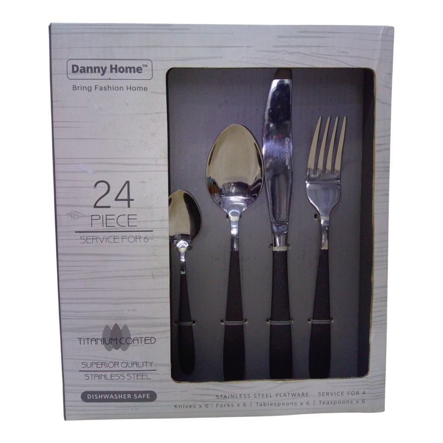 Juego de 24 cubiertos negro.