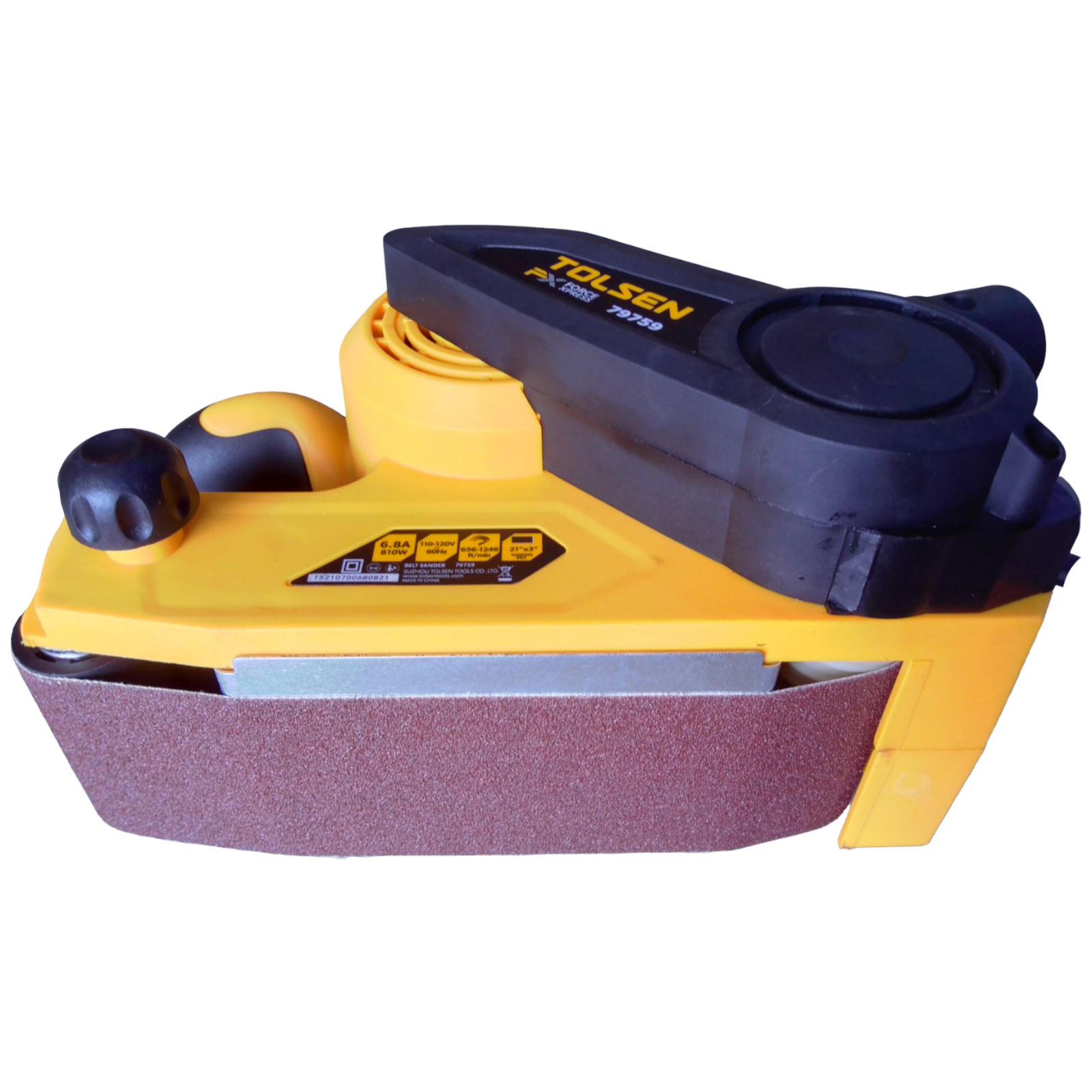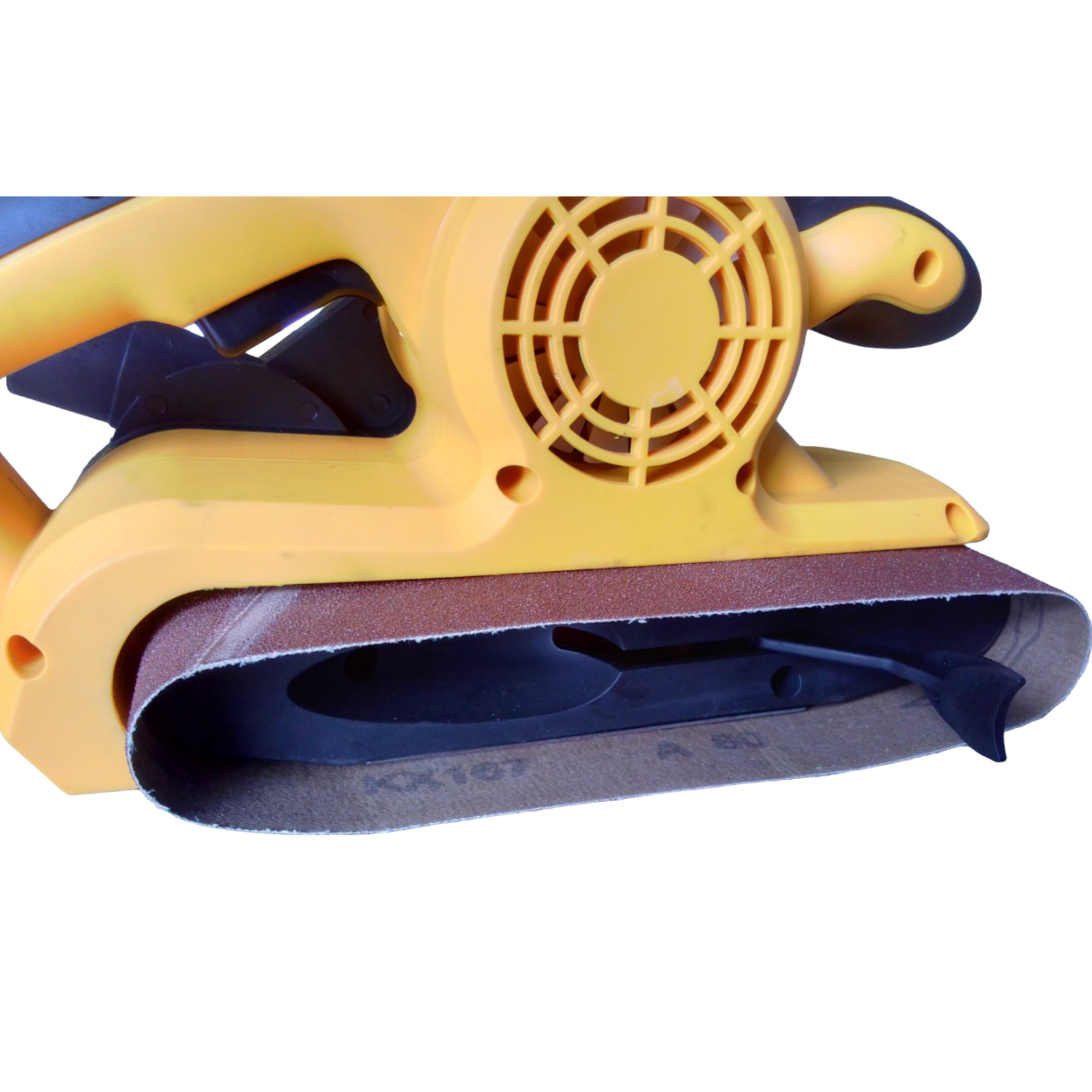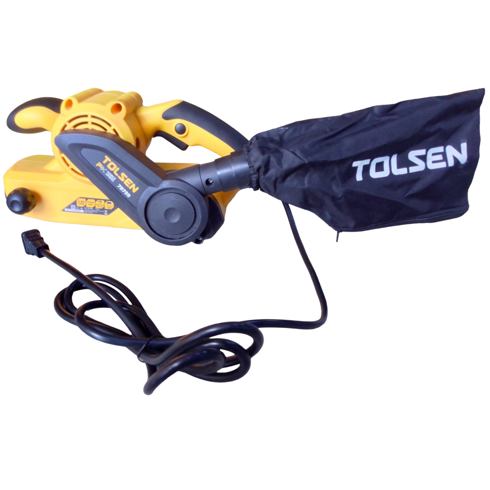Lijadora para madera de lija banda sin fin, estructura ergonómica, cuerda de corriente eléctrica larga para mayor comodidad de trabajo, tiene graduador de velocidad en la empuñadura de encendido. Lija sin fin y bolso para el polvo incluido.