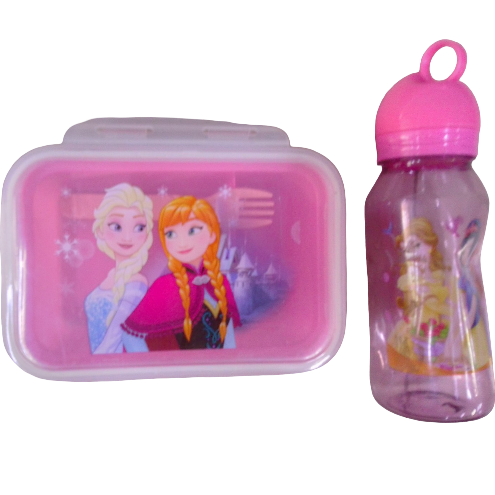 LONCHERA CON TERMO.LONCHERA TIENE 2 DEPÓSITOS PARA GUARDAR ALIMENTOS Y CUCHARA. Y TERMO PARA BEBIDAS. FIGURAS DE PRINCESAS.