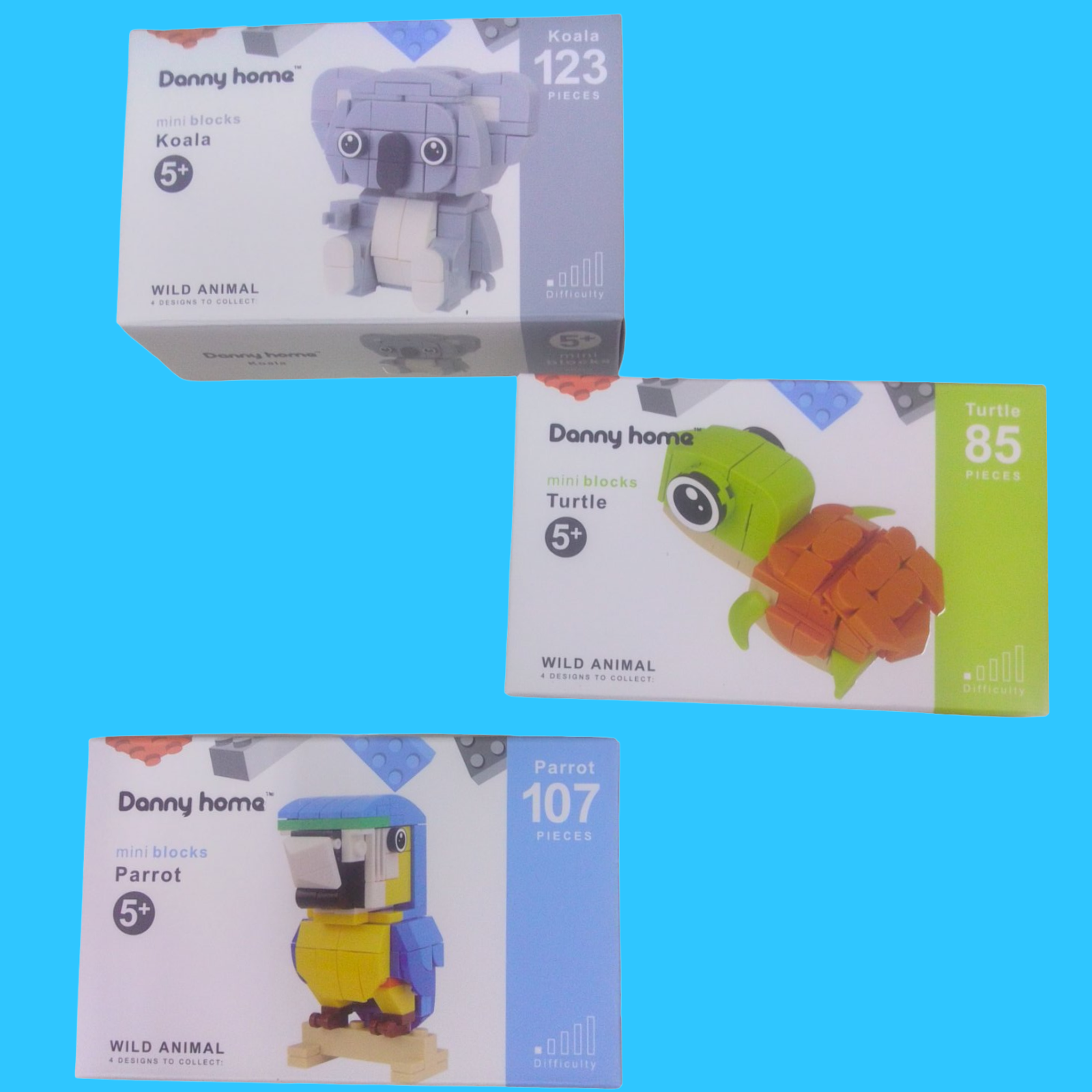 SERIE ANIMALES SALVAJES COLECCIONABLE, CADA CAJA VIENE CON UN ANIMALITO, LORO, KOALA Y TORTUGA PARA ARMAR. APTO PARA NIÑOS MAYORES DE 5 AÑOS.