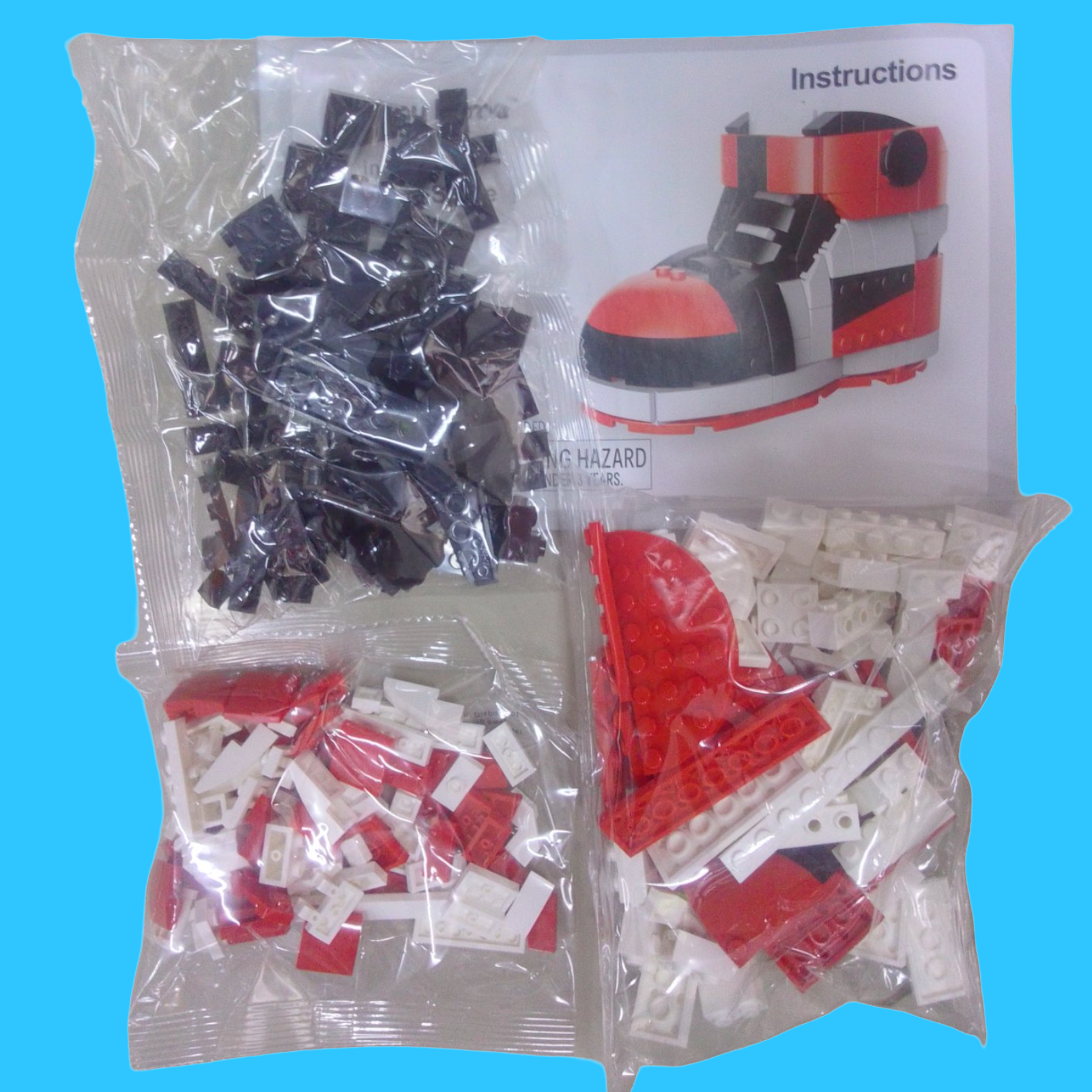 MINI BLOCKS. PARA ARMAR TENIS DEPORTIVOS DE COLOR ROJO, BLANCO Y NEGRO. TIENE 282 PCS. PARA NIÑOS DE 6 AÑOS A MÁS