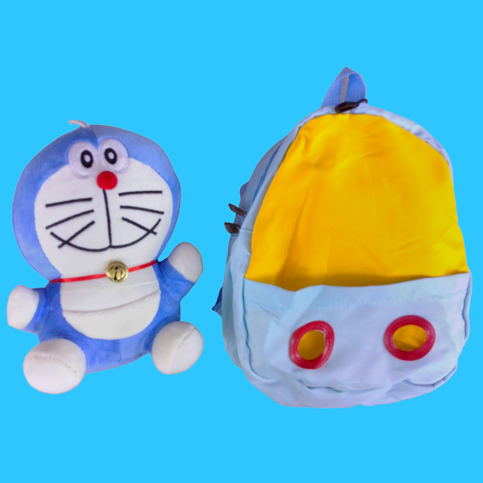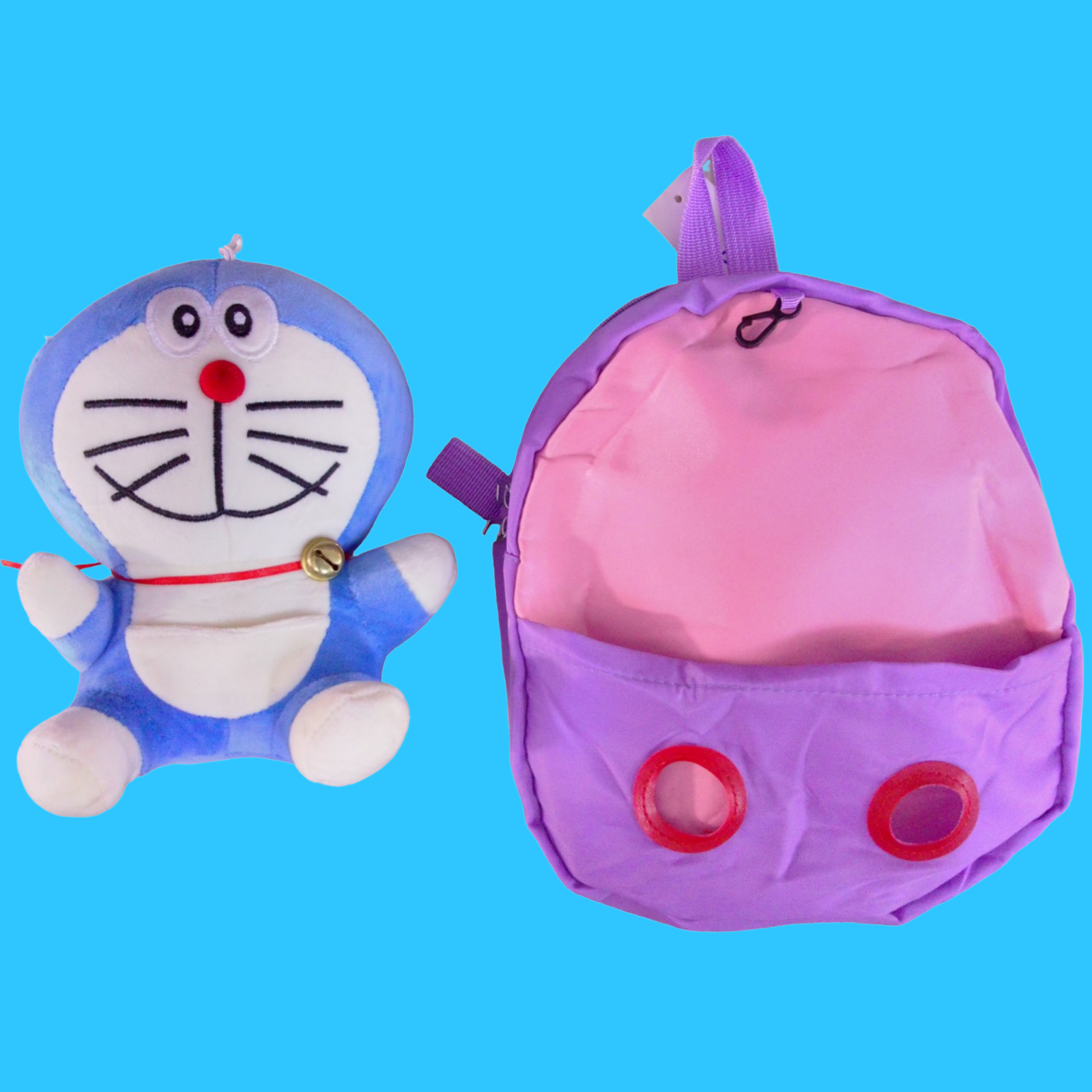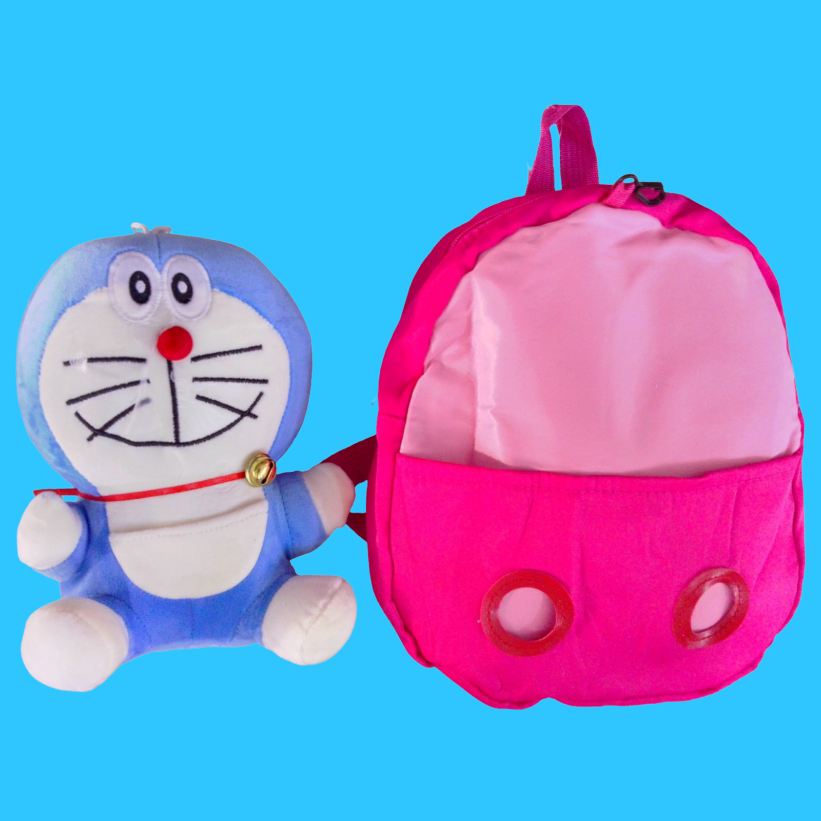 MOCHILAS DE COLORES DISPONIBLES EN ARTÍCULOS. FIGURA DE DORAEMON. SE LE QUITA A LA MOCHILA. PARA NIÑOS DE PREESCOLAR.
