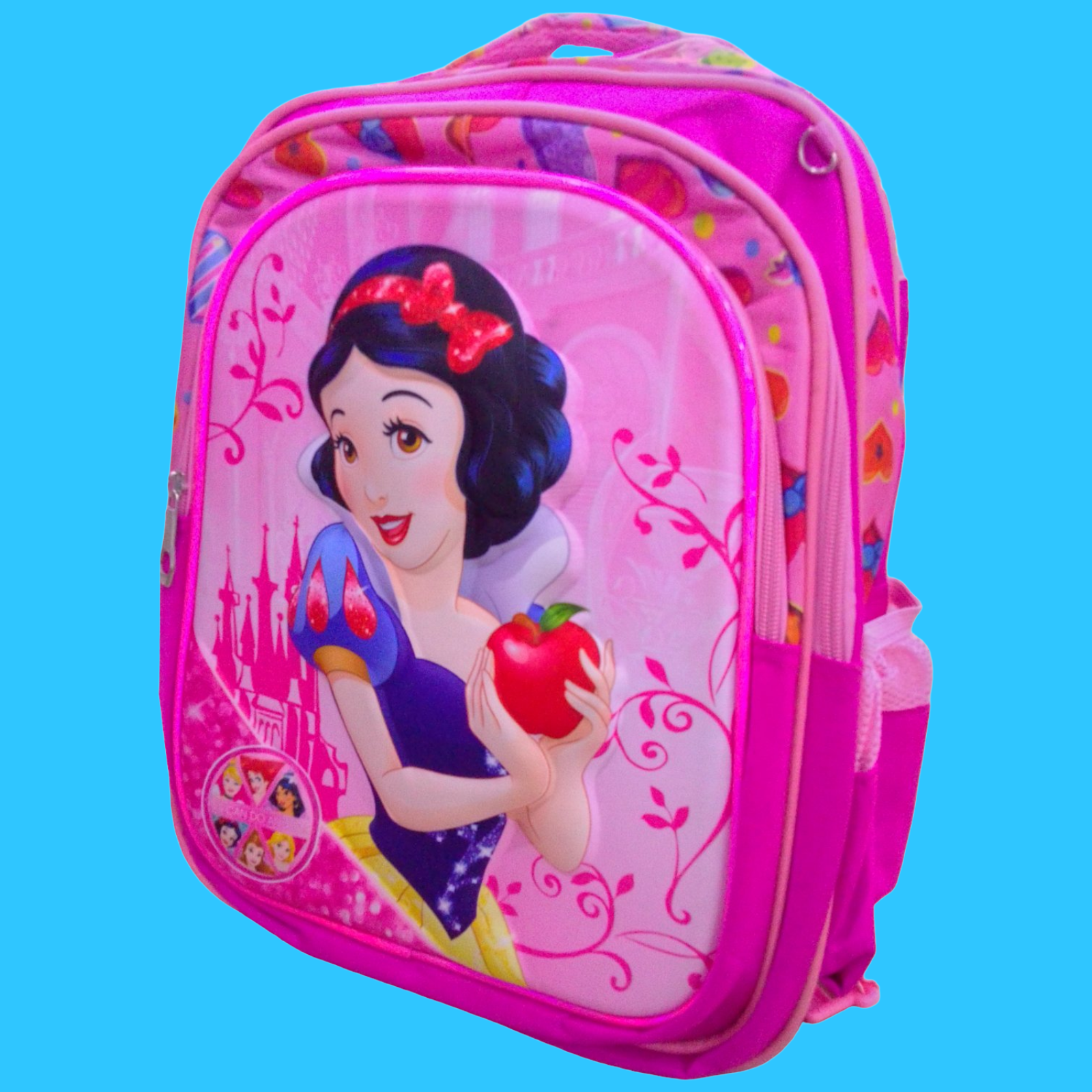 MOCHILAS ESCOLARES CON FIGURA DE BLANCA NIEVES. COLOR DE LA MOCHILA ROSADA.