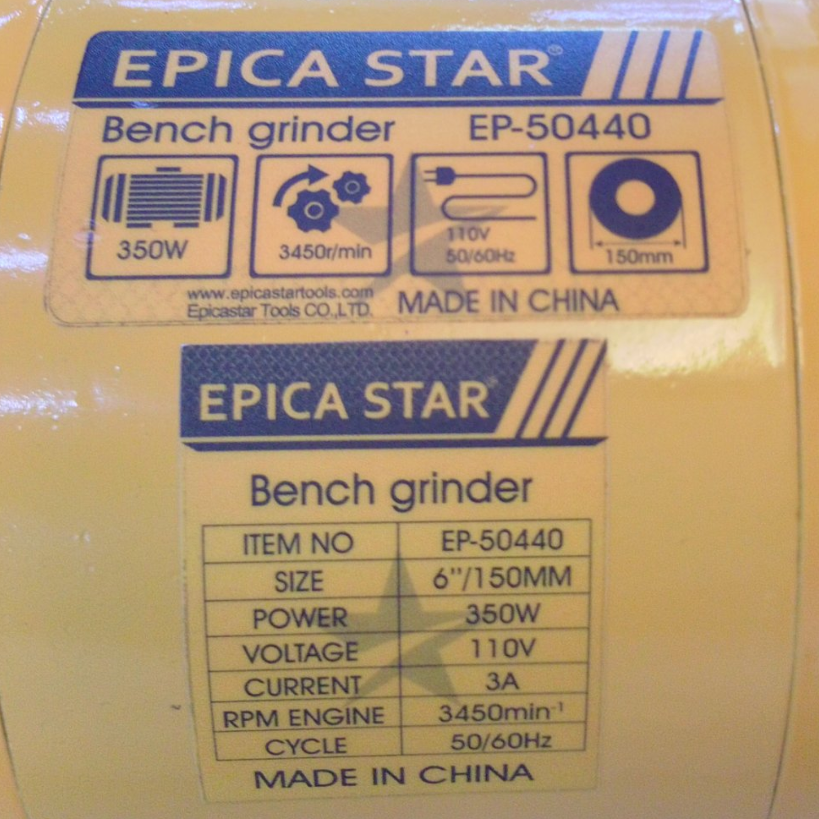 Motor esmerilador de doble esmerilado uno afilado fino y otro afilado grueso, switch encendido y apagado, 350 watts, 110 voltios, cable largo de corriente,
