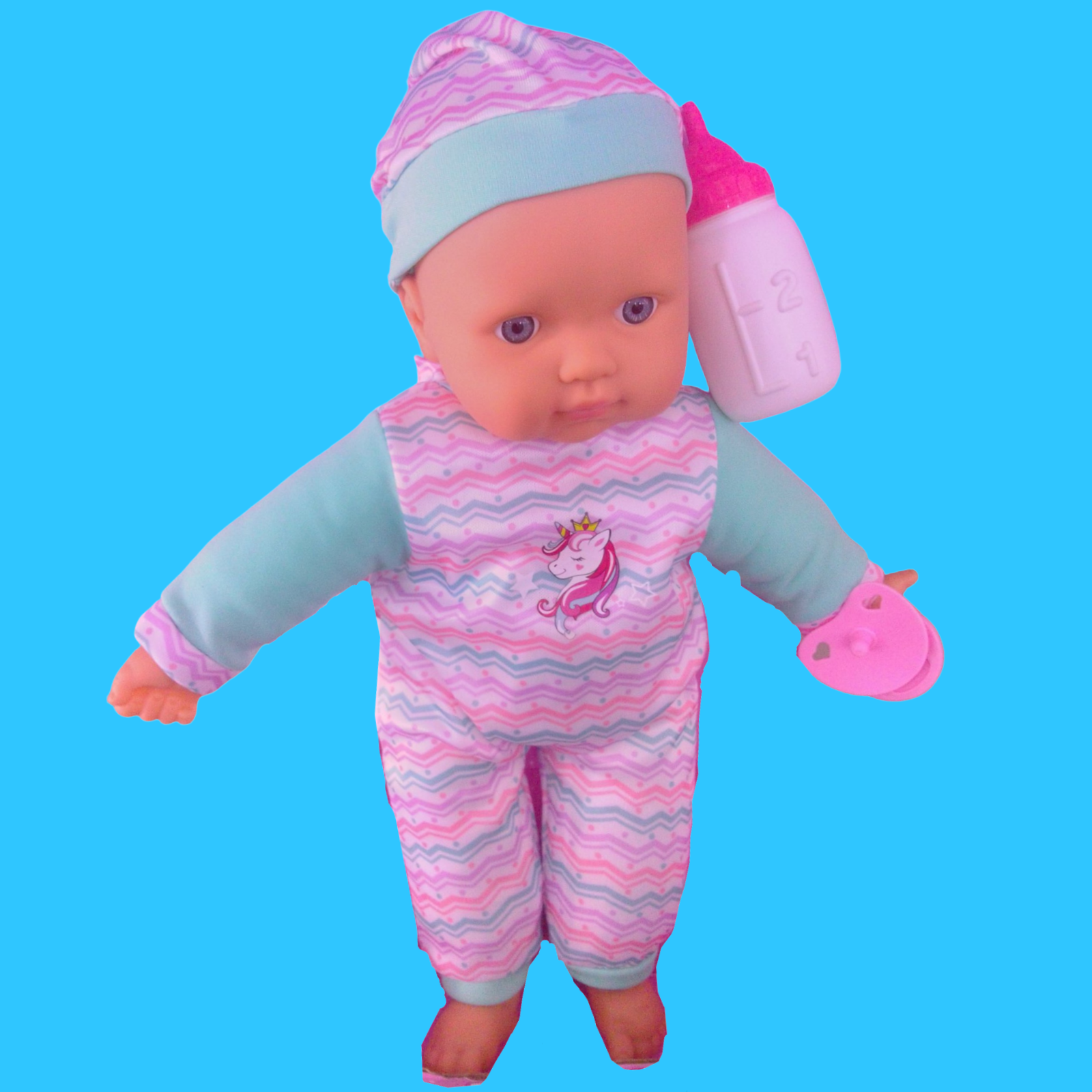 BEBÉ CON SU BIBERON Y CHUPETA. HABLA. USA 3 BATERÍAS DE PASTILLA AG-13