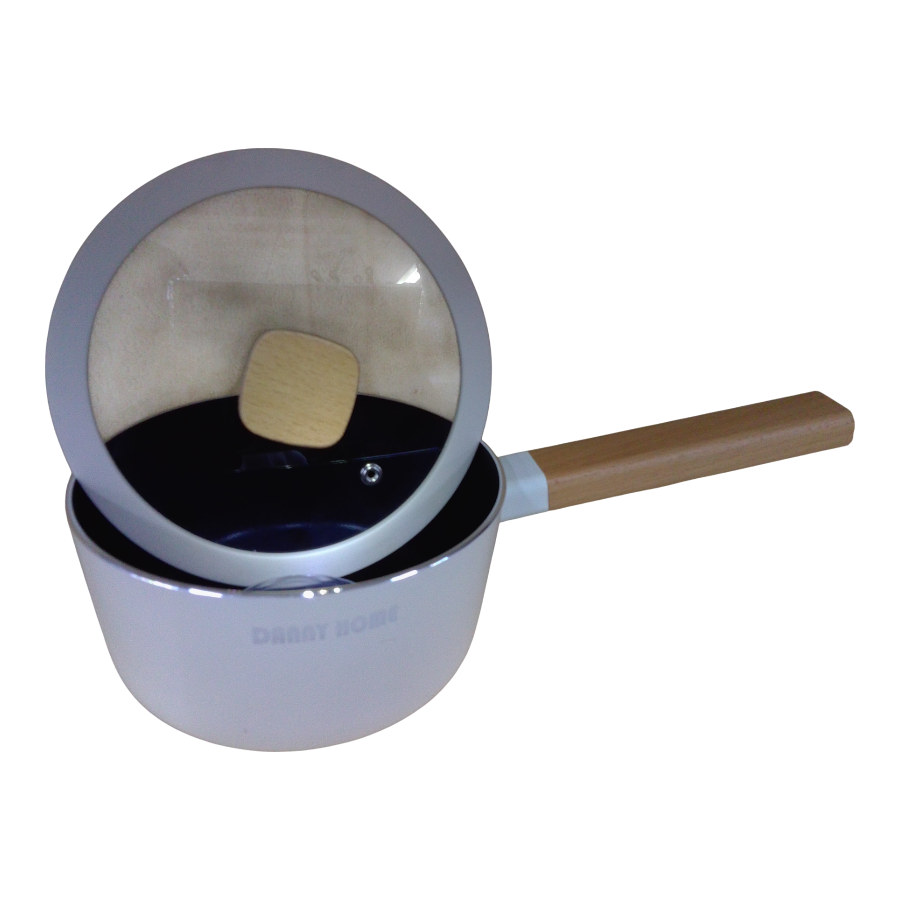 Olla de aluminio antiadherente color beige c/tapa 18 cm.