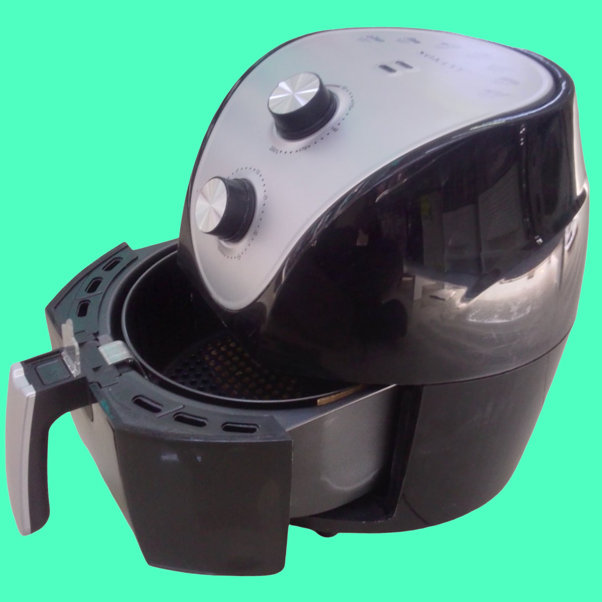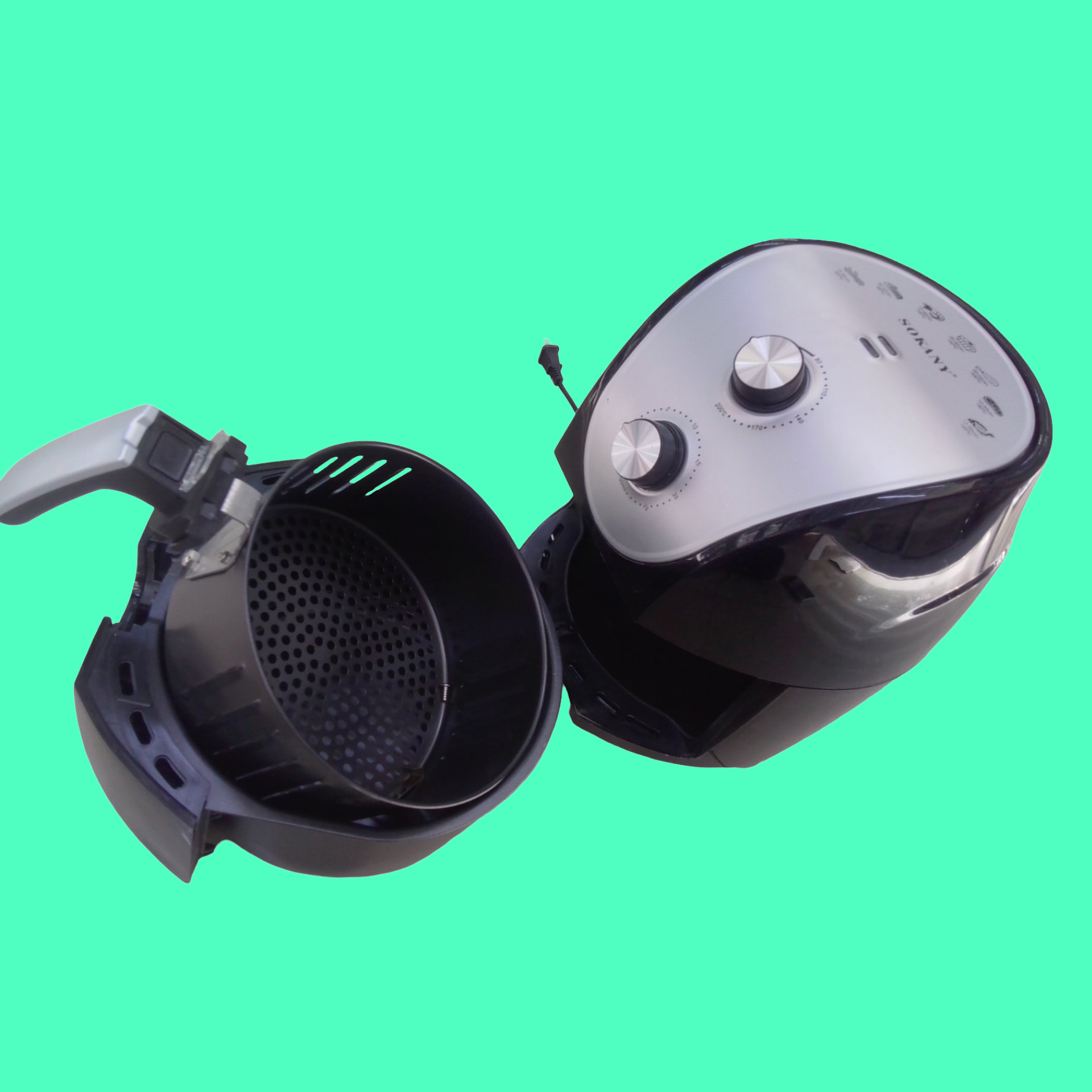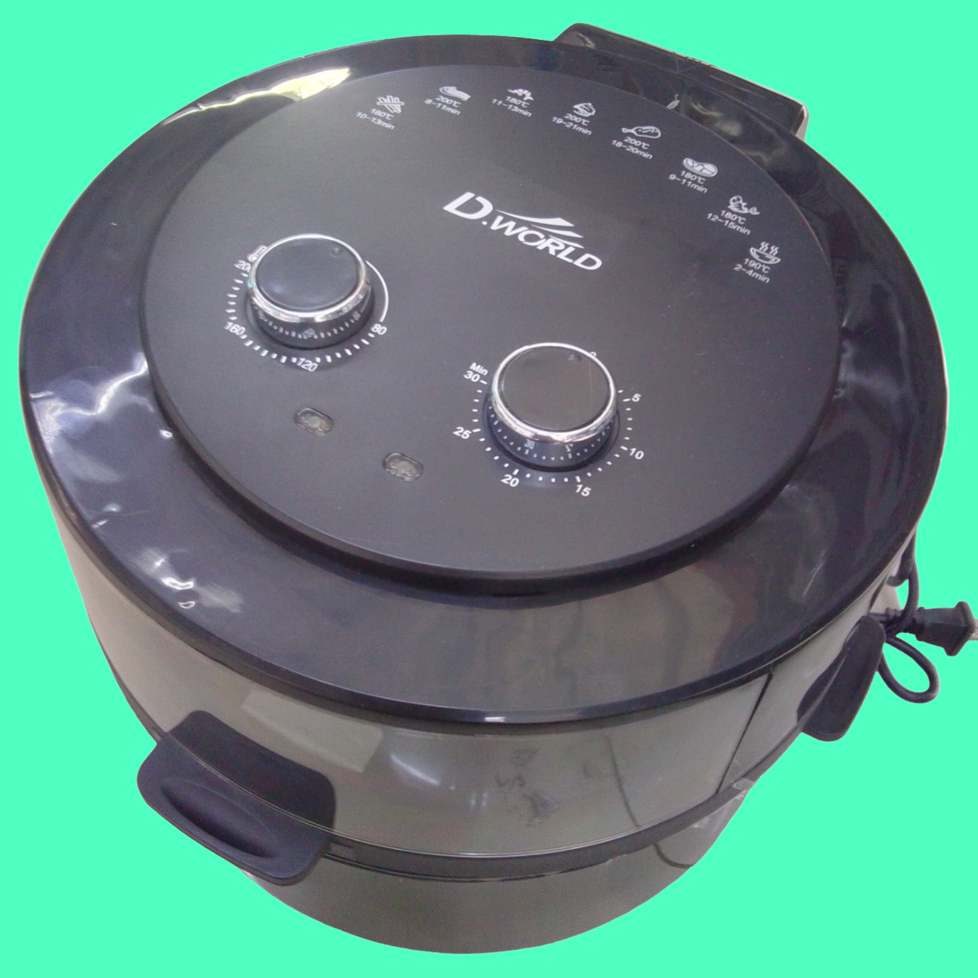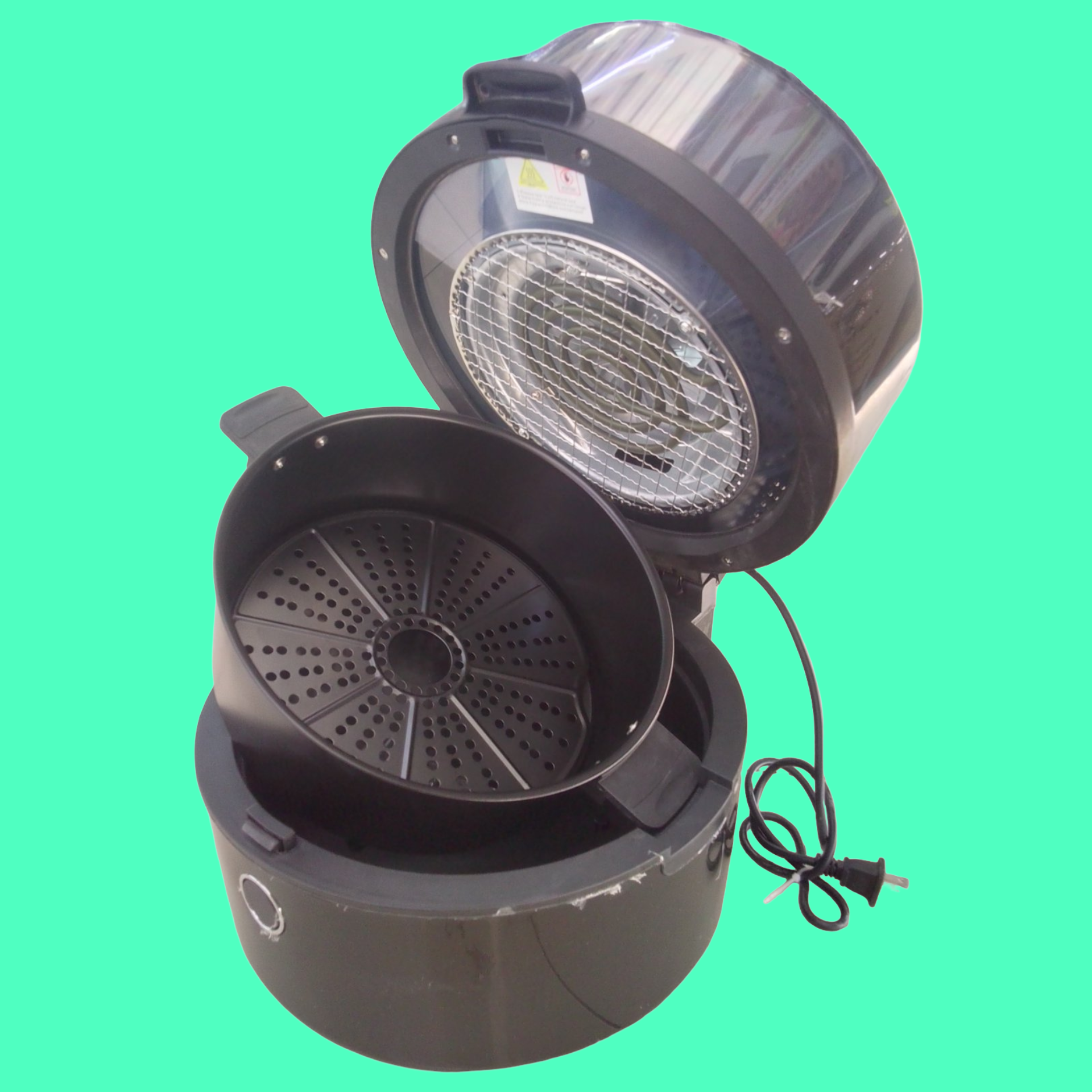 OLLA PARA COCINAR DE AIRE, TIENE TERMOSTATO TE TEMPERATURA, RELOJ TEMPORIZADOR, BANDEJAS PARA METER LOS ALIMENTOS.