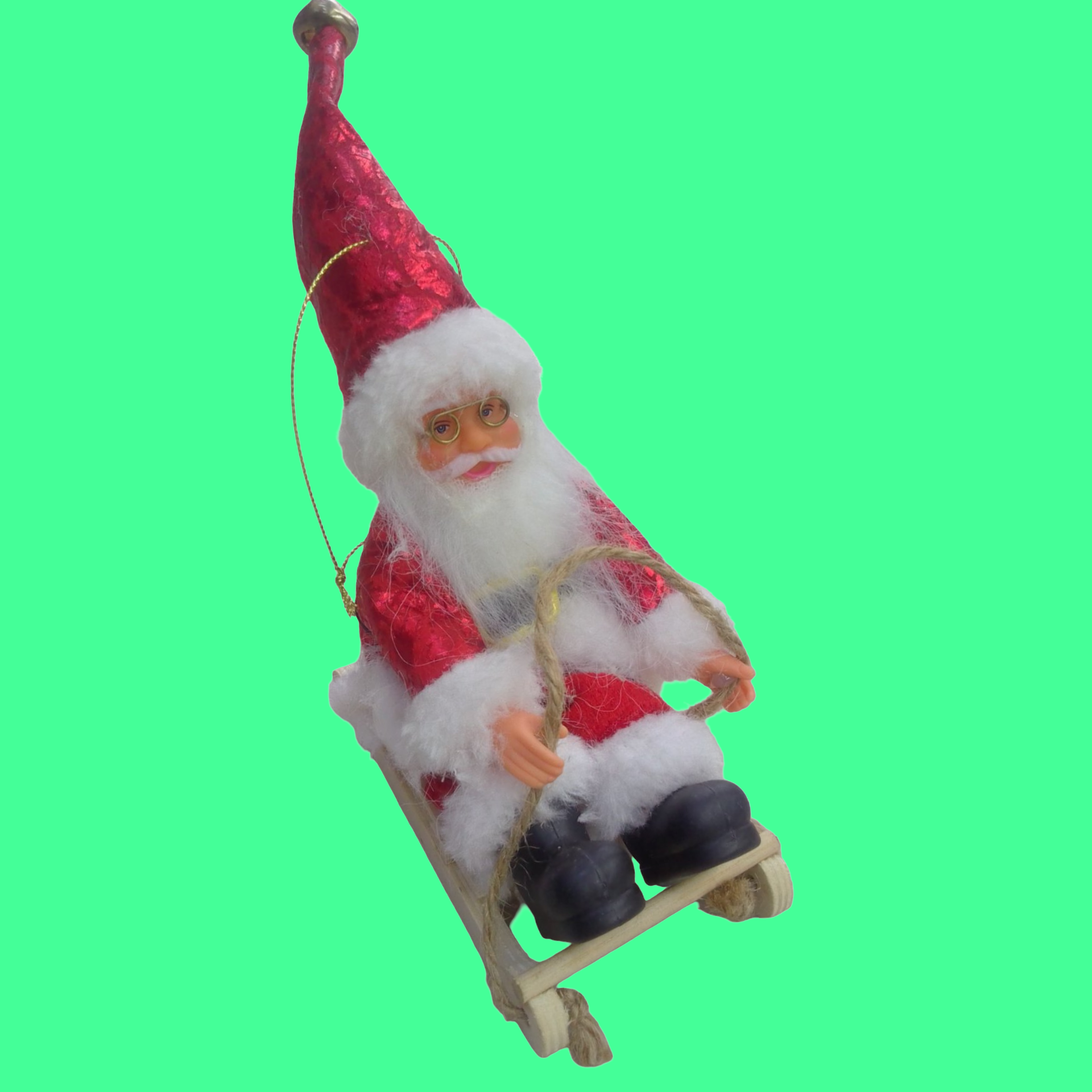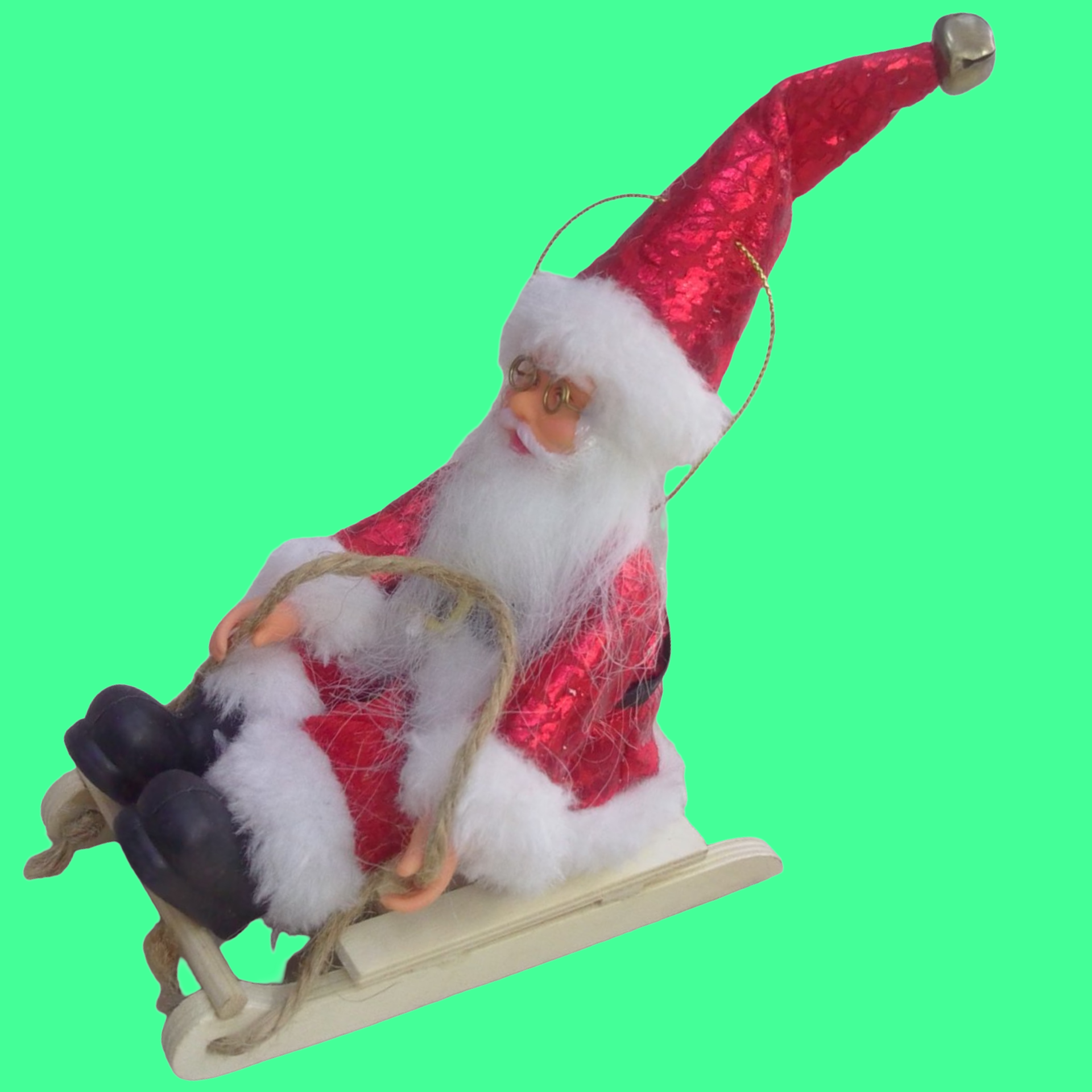 FiGURITA DE PAPÁ NOEL EN TRINEO, ADORNO NAVIDEÑO, VESTIMENTA ROJO CON BLANCO.