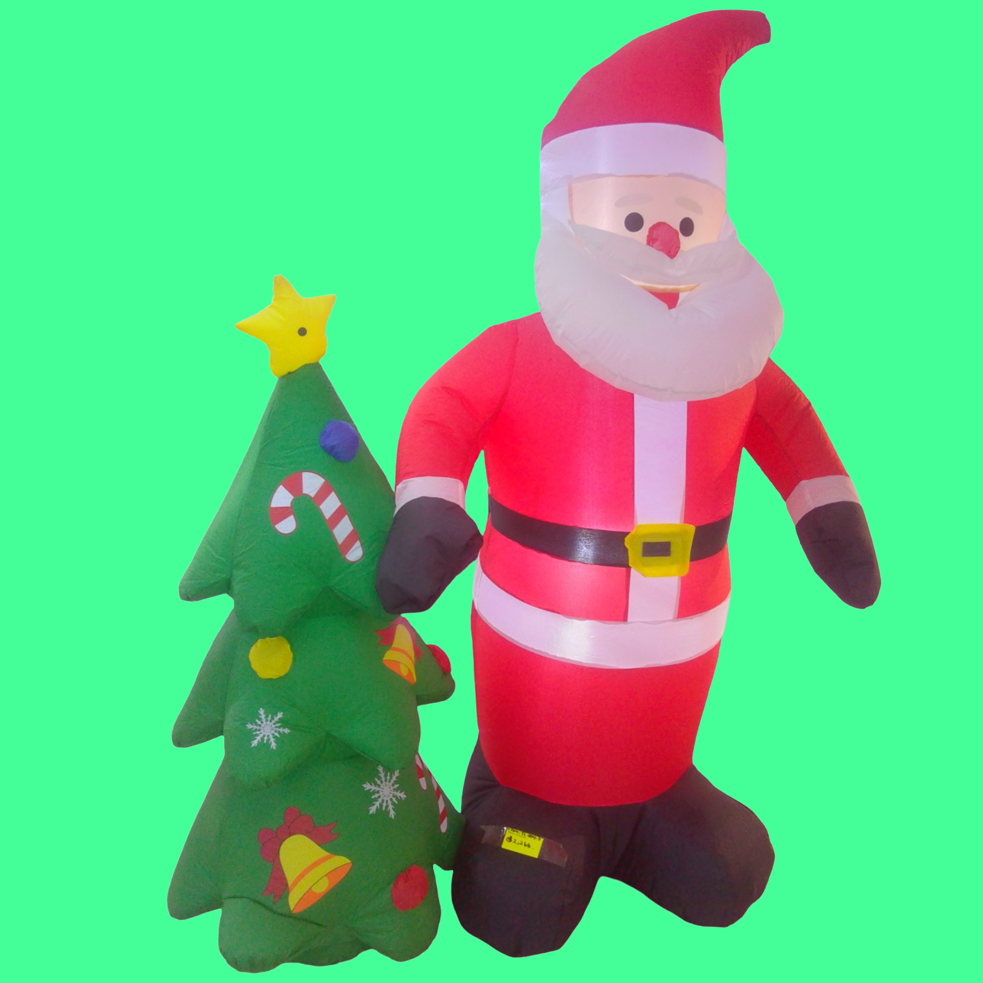 FIGURA DE PAPÁ NOEL CON ARBOLITO. INFLABLE ILUMINADO. 1.85 CM. DE ALTO.