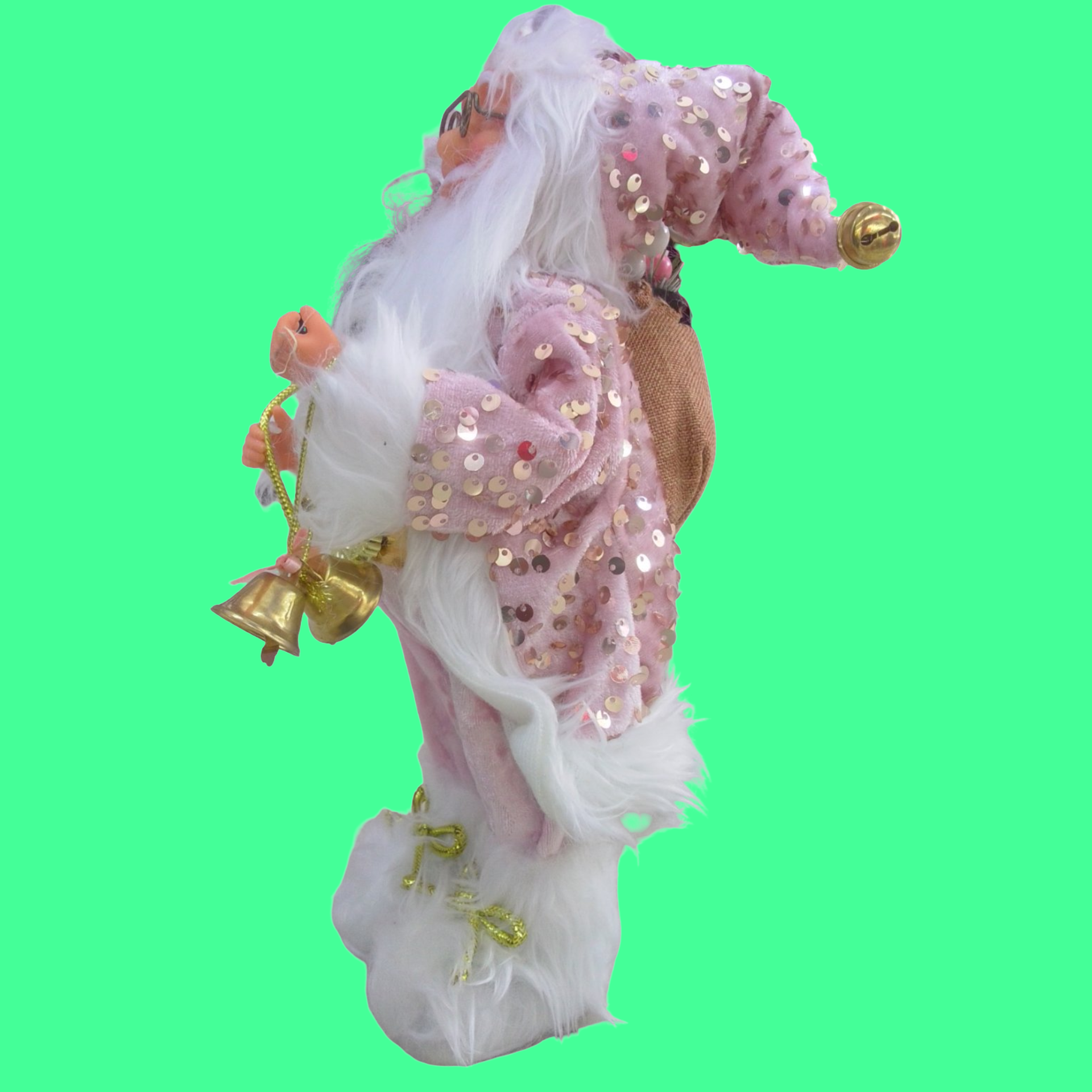 FIGURA NAVIDEÑA PARA DECORACIÓN. COLOR ROSADO, BLANCO Y DORADO.