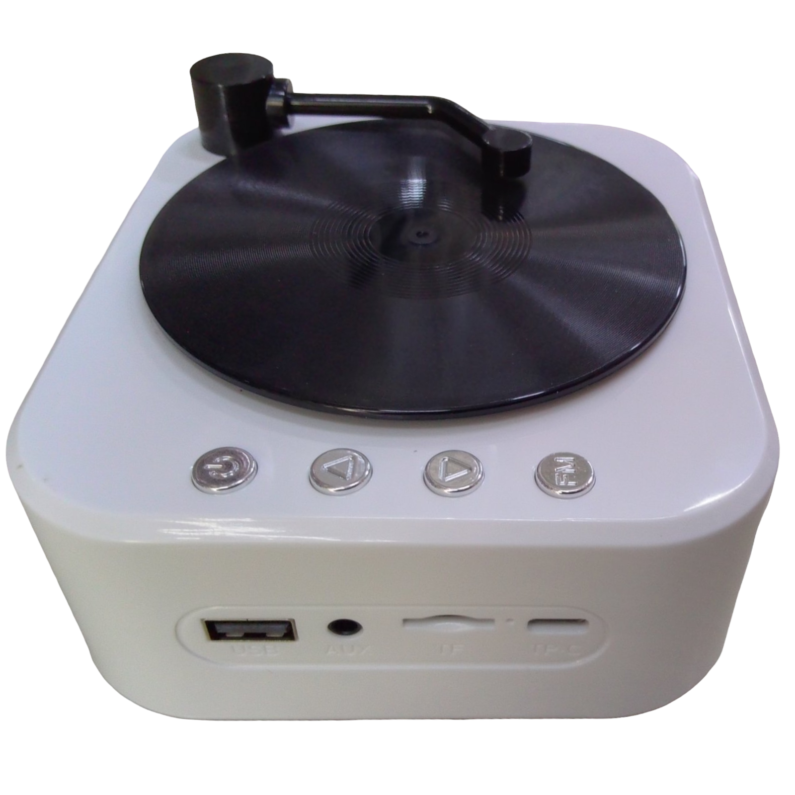 Parlante portátil recargable, conexión por bluetooth, entrada de carga, USB, micro SD, volumen, radio FM, color blanco.