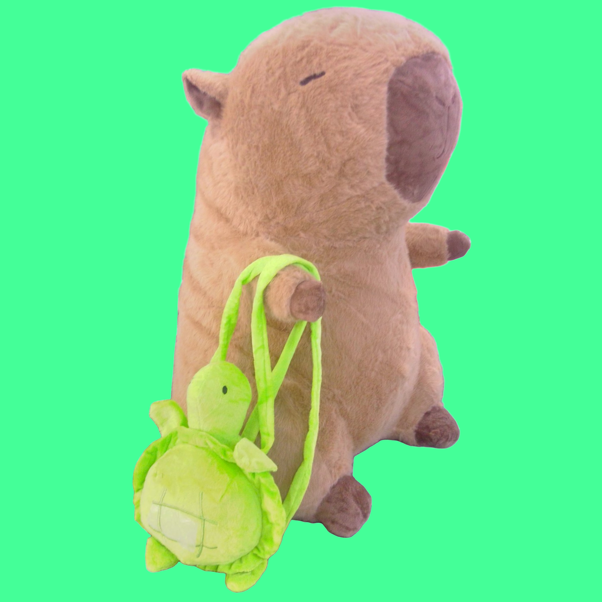 PELUCHE CAPIBARA. MIDE 54 CM. ACOMPAÑADO CON UNA TORTUGA DE MOCHILA.