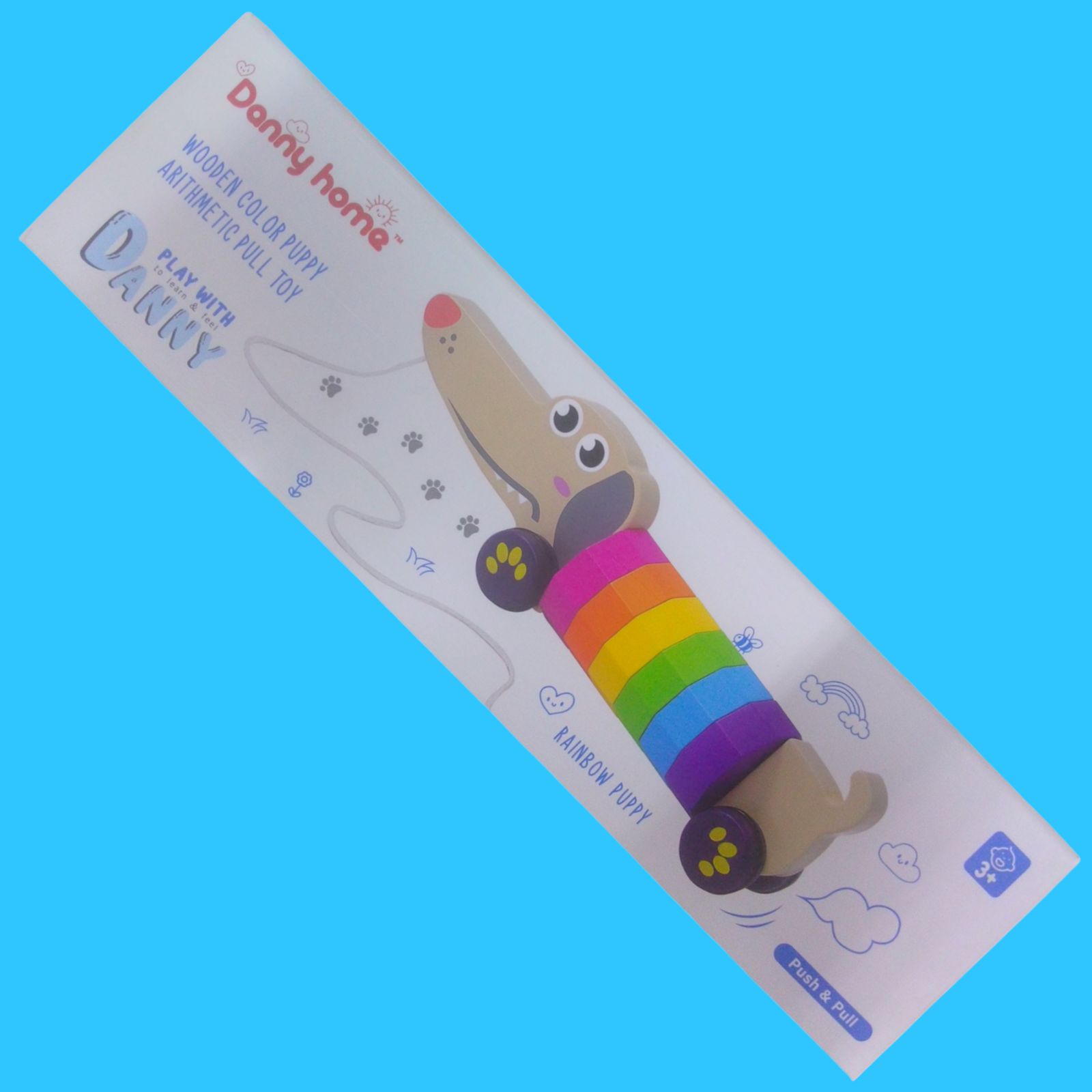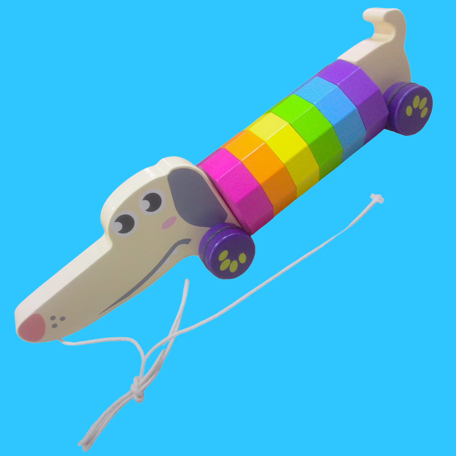 PERRITO DE MADERA, MASCOTA INTERACTIVO, DISPONIBLE PARA SALIR A PASEAR Y JUGAR CONTIGO A DONDE QUIERAS. CON COLORES LLAMATIVOS.